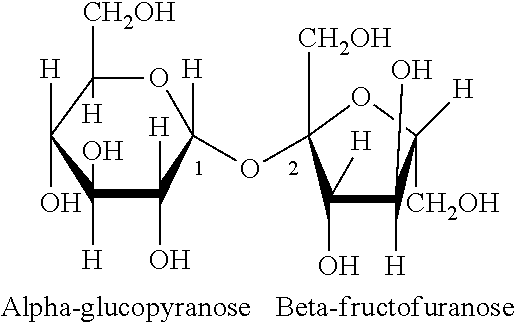 [0052]In some embodiments, the composition is a tabletop sweetener product, comprising a packet containing the composition. In some embodiments, the packet is a single serving packet. In some embodiments, the packet has a width between 0.2 inches and 2 inches. In some embodiments, the packet has a width between 0.5 inches and 1 inch. In some embodiments, the packet has a length between 1 inch and 5 inches. In some embodiments, the packet has a length between 1.5 inches and 3 inches. In some embodiments, the product comprises between 0.5 g and 3 g of the composition. In some embodiments, the product comprises between 0.75 g and 1.5 g of the composition.
