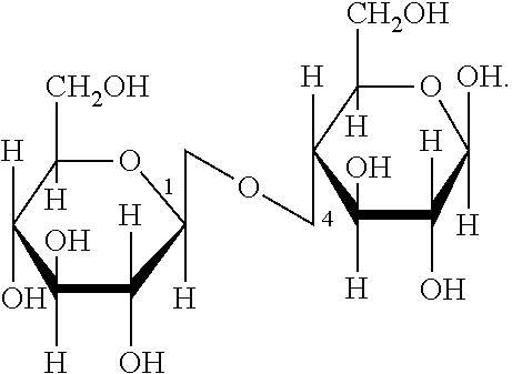 [0048]In some embodiments, the bulking agent is selected from the group consisting of maltodextrin, dextro-maltodextrin blends, corn syrup solids, sucrose, fructose, glucose, invert sugar, sorbitol, xylose, ribulose, mannose, mannitol, galactitol, lactitol, isomalt, maltose, tagatose, lactose, inulin, glycerol, propylene glycol, polydextrose, fructooligosaccharides, cellulose, cellulose derivatives, erythritol, and combinations thereof.
