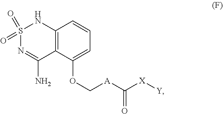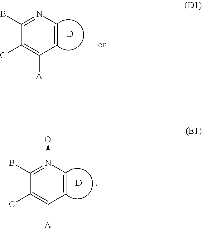 [0083]In some embodiments of the compounds, compositions, products, methods, or concentrates described above, formula (I) is not selected from: