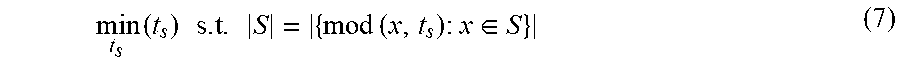 [0000]mints(ts)s.t.S={mod(x,ts):x∈S}(7)