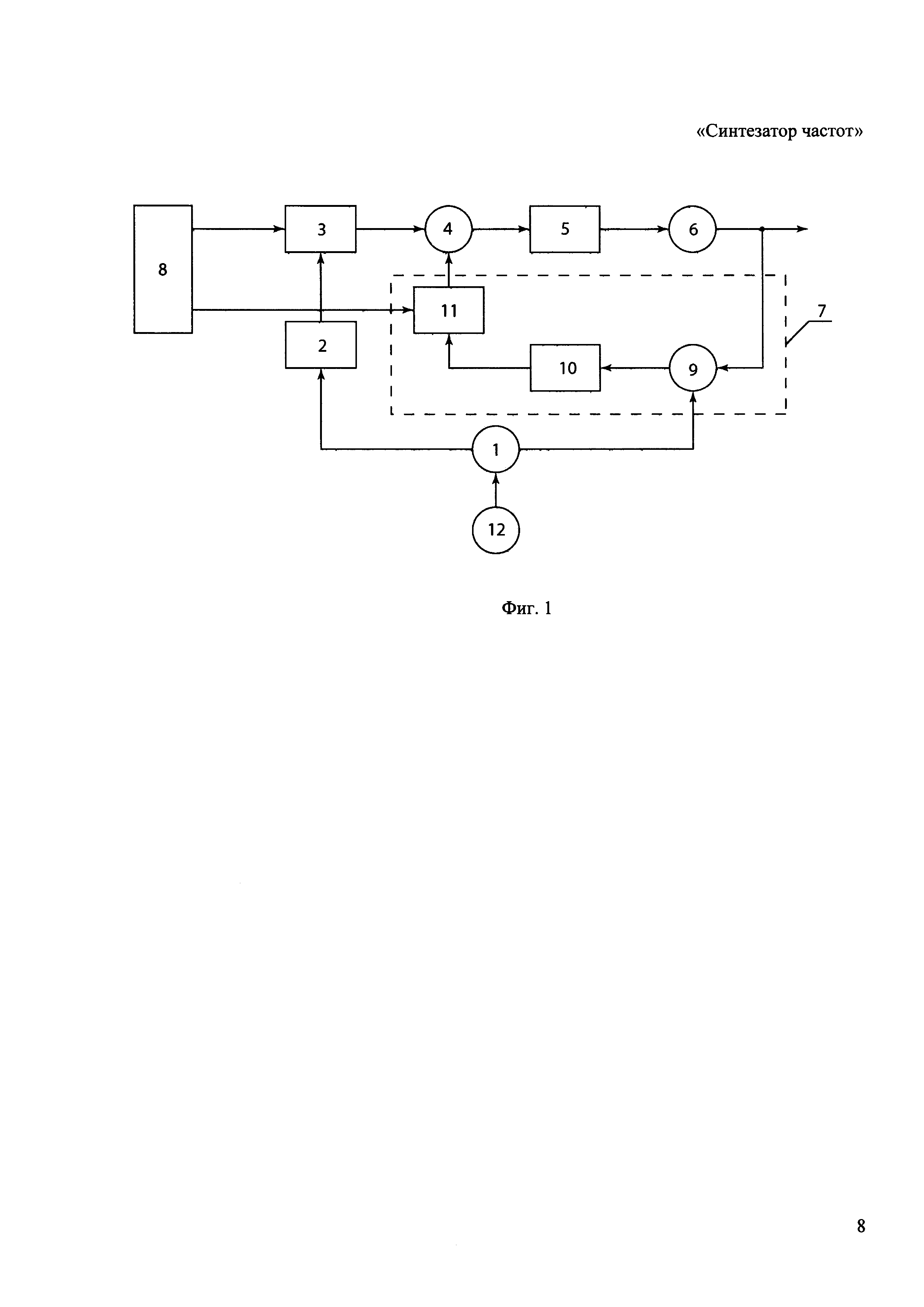 СИНТЕЗАТОР ЧАСТОТ Изобретение относится к радиоэлектронике, в частности, к синтезаторам частот на основе петли фазовой автоподстройки частоты (ФАПЧ). Известен синтезатор частот, содержащий соединенные последовательно преобразователь частоты входного сигнала, фазочастотный детектор, фильтр низких частот, генератор, управляемый напряжением, контур отрицательной обратной связи, включающий в себя преобразователь частоты выходного сигнала, выход которого соединен с входом фазочастотного детектора, и управляющее устройство, выходы которого соединены с входами преобразователей частоты входного и выходного сигналов (см., например, статью Белова Л. «Синтезаторы стабильных частот», в ж. «Электроника: наука, технология, бизнес», 3/2004, стр. 38-44, рис. 2). В известном синтезаторе в качестве преобразователей входного и выходного сигналов использованы делители с целочисленным коэффициентом деления. Недостаток известного синтезатора состоит в низком разрешении по частоте, ограничивающем область его применения. Кроме этого, использование делителей с целочисленным коэффициентом деления приводит к значительному увеличению фазовых шумов в спектре выходного сигнала синтезатора. Также известен синтезатор частот, содержащий соединенные последовательно преобразователь частоты входного сигнала, в качестве которого использована микросхема прямого цифрового синтеза, делитель с целочисленным коэффициентом деления, фазочастотный детектор, фильтр низких частот, генератор, управляемый напряжением, контур отрицательной обратной связи, включающий в себя преобразователь частоты выходного сигнала, в качестве которого использован делитель с целочисленным коэффициентом деления, выход которого соединен с входом фазочастотного детектора, и управляющее устройство, выходы которого соединены с входами преобразователей частоты входного и выходного сигналов (см. US 5801589, 01.09.1998). Недостаток известного синтезатора частот также состоит в достаточно высоком уровне фазовых шумов в спектре выходного сигнала, обусловленным использованием делителя с целочисленным коэффициентом деления в петле ФАПЧ. Кроме этого, использование микросхемы прямого цифрового синтеза в качестве преобразователя входного сигнала неизбежно приводит к появлению побочных дискретных составляющих в спектре выходного сигнала, при том, что схема известного синтезатора не позволяет реализовать их существенное подавление. Известный синтезатор частот принят в качестве ближайшего аналога заявленного синтезатора частот. Задачей настоящего изобретения является создание синтезатора частот, лишенного указанных недостатков. В результате достигается технический результат, заключающийся в снижении уровня фазовых шумов и побочных дискретных составляющих в спектре выходного сигнала, что, в свою очередь, повышает качество выходного сигнала, при сохранении высокого разрешения по частоте и широкой полосы перестройки. Конкретно, технический результат достигается путем создания синтезатора частот, содержащего соединенные последовательно умножитель частоты входного сигнала, делитель с фиксированным целочисленным коэффициентом деления, первую микросхему прямого цифрового синтеза (далее - МПЦС), фазочастотный детектор, первый фильтр низких частот, генератор, управляемый нап