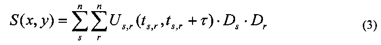 1. Ультразвуковая антенная решетка, содержащая установленные в корпусе ультразвуковые преобразователи с сухим точечным контактом на рабочей поверхности решетки, индивидуальным прижимным механизмом с возможностью возвратно-поступательного перемещения перпендикулярно рабочей поверхности решетки и схемой управления, отличающаяся тем, что преобразователи расположены в плане вдоль зигзагообразной линии с точками контакта в ее вершинах, векторы колебательных смещений всех ультразвуковых преобразователей ориентированы поперек или вдоль продольной оси антенной решетки, дополнительно установлены постоянные магниты, размещенные на рабочей поверхности решетки, схема управления выполнена в виде усилителя и генератора импульсов - для каждого преобразователя, общего блока управления, устройства обработки сигналов и блока связи, при этом выход каждого генератора импульсов подключен к входу соответствующего преобразователя и входу соответствующего усилителя, выход которого подключен к соответствующему информационному входу устройства обработки сигналов, вход генератора импульсов соединен с соответствующим выходом блока управления, синхронизирующий выход которого соединен с входом устройства обработки сигналов, связанным, так же как и блок управления, с блоком связи, выход которого является выходом антенной решетки, связанным с устройством обработки и отображения информации. 2. Ультразвуковая антенная решетка по п. 1, отличающаяся тем, что расстояния между точками контакта соседних преобразователей выбраны из условия: где d - расстояние между точками контакта; rа - интервал пространственной корреляции шума материала изделия в направлении вдоль решетки; rс - интервал пространственной корреляции шума материала изделия в направлении поперек решетки.
