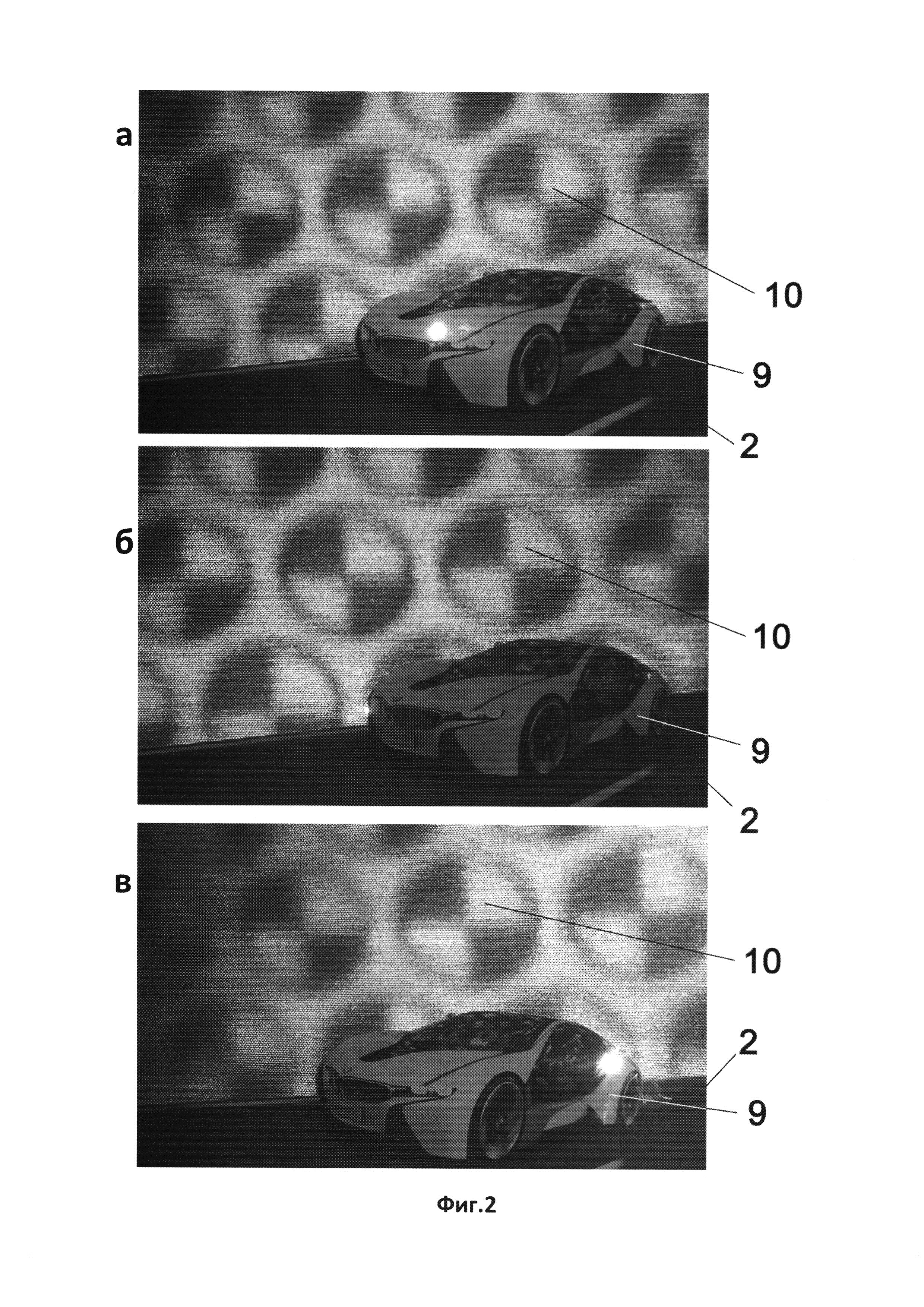 , а другую часть площади каждой из элементарных областей Rij занимает область Qij, внутри которой сформированы дифракционные решетки разной ориентации с периодами менее 0,7 мкм в виде микрорельефа, обеспечивающего заданную диаграмму направленности рассеянного света, реализующую синтез 2D изображения, видимого наблюдателю на всем дифракционном оптическом элементе при наклонах подложки более чем на 40°. Формирование микрорельефа заявленной микрооптической системой представляет собой сложную технологию, в которой оптический элемент разбит на элементарные области размером менее 50 микрон, где находятся не только фрагменты внеосевых линз Френеля, но и фрагменты дифракционных решеток.