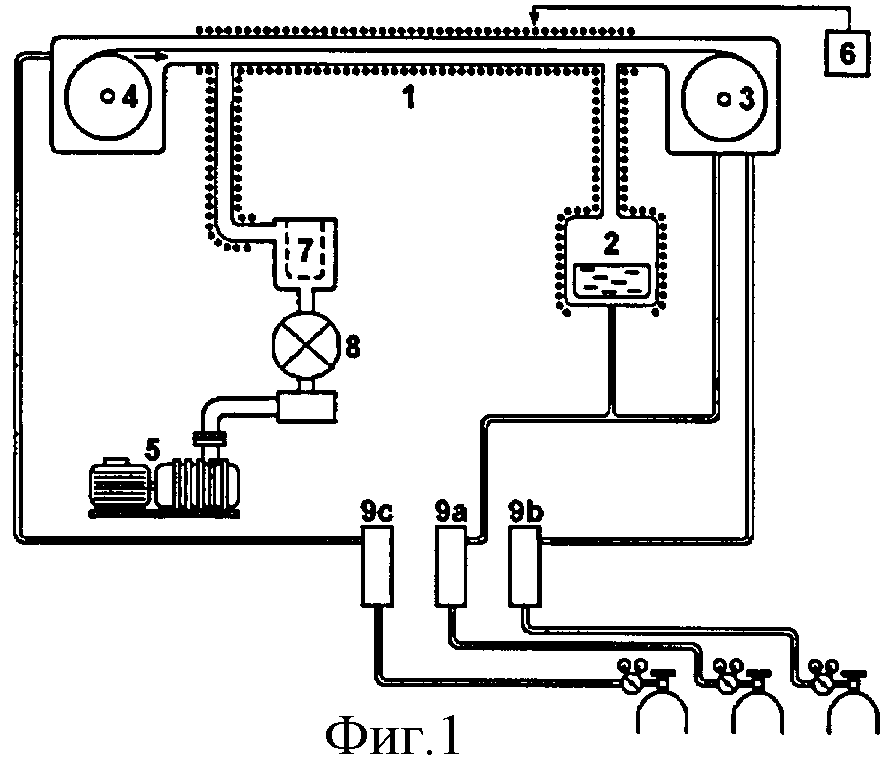 Изобретение относится к области химической технологии получения покрытий и способствует развитию технологии так называемых сверхпроводящих проводников второго поколения; конкретно, изобретение относится к способу одновременного нанесения двусторонних покрытий из эпитаксиально выращенного оксидного материала на длинномерные движущиеся металлические ленты посредством химического осаждения из паров металлоорганических соединений (MOCVD - Metal-Organic Chemical Vapor Deposition). Способ может применяться для получения любых покрытий из простых или сложных оксидов, в частности, для изготовления электротехнических ВТСП-элементов - изделий из «высокотемпературных сверхпроводников» (ВТСП с рабочей температурой Т≤90 К, т.е. способных работать при использовании в качестве хладагента обычного жидкого азота вместо чрезвычайно дорогого и редкого жидкого гелия для низкотемпературных сверхпроводников). Такие электротехнические ВТСП-элементы в настоящее время в литературе разных стран называются также сверхпроводящими лентами 2-ого поколения или токонесущими ВТСП-проводами 2-го поколения.. Такие сверхпроводящие ленты 2-го поколения можно называть также «проводниками» или «проводами», имея в виду, что после того как они будут особым образом намотаны или переплетены, заключены в изоляцию и охлаждаемую рубашку, они могут стать компонентами сверхпроводящих кабелей, токонесущих жил, проводов - подобно тому, как многожильный медный провод состоит из множества переплетенных проводков или проволок. Технология сверхпроводящих проводов в настоящее время интенсивно развивается, и терминология еще окончательно не устоялась. В общем случае, отдельный проводник, или провод, или токонесущий элемент, может быть произвольного сечения - круглого, овального, прямоугольного и т.д. Особенностью же технологии ВТСП-проводников 2-го поколения является использование в качестве носителя или основы длинной тонкой металлической ленты с толщиной 0.05-0.2 мм и шириной до 2 см - поэтому говорят именно о сверхпроводящих лентах 2-го поколения. Сверхпроводящие ленты 2-го поколения находят применение в электротехнике в качестве полупродукта, материала или компонента, в частности, для изготовления сильноточных сверхпроводящих проводов 2-го поколения и кабелей, работающих при температуре жидкого азота и способных нести электрический ток 50-200 А при плотности тока более 5·105 А/см2 в высоких магнитных полях до 7 Тл. Для сравнения: для провода с медной жилой сечением 100 мм2 допустимый длительный ток составляет 200-350 А в зависимости от типа изоляции или до 550 А/см2 для медных шин («Правила устройства электроустановок (ПУЭ)», гл.1.3, табл.1.3.4, 1.3.30. Изд. 6-ое, перераб. и доп., с изм., утвержд. Министерством энергетики РФ, приказ 204/08.07.2002). Токонесущие сверхпроводящие провода позволяют создать уникальное оборудование, принципиально нереализуемое с обычными несверхпроводящими проводниками: линии электропередач без омических потерь, токовые вводы высокой мощности, индуктивные накопители электрической энергии с большим сроком хранения, быстродействующие токоограничители, высокомощные трансформаторы, генераторы переменного тока и т.п. Значительный сегмент рынка уже сейчас занимают провода для обмоток сверхпроводящих мощных магнитов для магниторезонансных томографов с индуктивностью поля