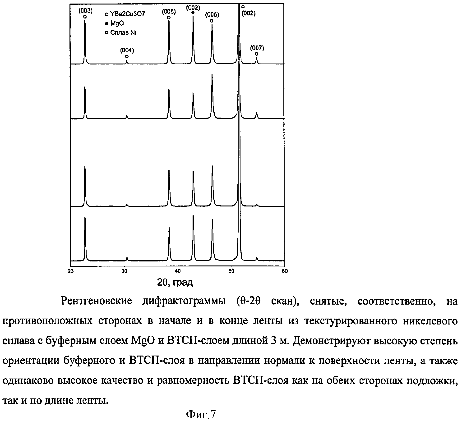 1. Способ получения двухстороннего сверхпроводника второго поколения методом химического осаждения металлоорганических соединений из паровой фазы в трубчатом реакторе химического осаждения, заключающийся в том, что сначала в трубчатом реакторе одновременно на две стороны движущейся длинномерной подложки осаждают из паров металлорганических соединений буферный слой при температуре 350-850°С, а затем в указанном реакторе одновременно на две стороны движущейся длинномерной подложки на нанесенный буферный слой осаждают из паров металлоорганических соединений сверхпроводящий слой при температуре 650-850°С, при этом нагрев трубчатого реактора осуществляют с помощью нагревательных элементов, расположенных вдоль внешней поверхности трубчатого реактора, давление в трубчатом реакторе поддерживают равным 0,1-100 Мбар, металлоорганические соединения предварительно испаряют в испарителе при температуре 150-300°С и газом-носителем подают в зону осаждения трубчатого реактора, движение подложки осуществляют со скоростью 1-10 м/ч, а с двух противоположных сторон трубчатый реактор продувают газообразным потоком. 2. Способ по п.1, отличающийся тем, что в качестве газообразного потока, которым продувают трубчатый реактор, используют балластный газ. 3. Способ по п.2, отличающийся тем, что в качестве балластного газа используют аргон, и/или азот, и/или водород или их смесь. 4. Способ по п.1, отличающийся тем, что в качестве газообразного потока, которым продувают трубчатый реактор, используют реакционный газ. 5. Способ по п.4, отличающийся тем, что в качестве реакционного газа используют кислород газообразный, и/или азота закись, и/или водяной пар. 6. Способ по п.1, отличающийся тем, что в качестве газа-носителя используют аргон, и/или азот, и/или водород или их смесь. 7. Способ по п.1, отличающийся тем, что испаренные в испарителе металлорганические соединения в трубчатый реактор подают противотоком относительно направления движения подложки. 8. Способ по п.1, отличающийся тем, что испаренные в испарителе металлорганические соединения в трубчатый реактор подают прямотоком относительно направления движения подложки. 9. Способ по п.1, отличающийся тем, что в качестве металлоорганических соединений используют бета-дикетонаты металлов - дипивалоилметанаты магния, кальция, стронция, бария, иттрия, лантана, РЗЭ, меди, алюминия, никеля, кобальта, железа, марганца, титана и других металлов, входящих в состав осаждаемых слоев, ацетилацетонат или гексафторацетилацетонат магния, либо их аддукты с донорными лигандами, такими как диглим, триглим, тетраглим, о-фенантролин. 10. Способ по п.1, отличающийся тем, что зону осаждения трубчатого реактора выбирают равной 0,5-0,8 L, где L - длина реактора. 11. Способ по п.1, отличающийся тем, что нагрев трубчатого реактора осуществляют с помощью нагревательных элементов, равномерно расположенных вдоль внешней поверхности трубчатого реактора. 12. Способ по п.1, отличающийся тем, что в качестве подложки используют нетекстурированные металлические или керамические ленты. 13. Способ по п.1, отличающийся тем, что в качестве подложки используют металлические ленты, обладающие сильной двуосной текстурой.
