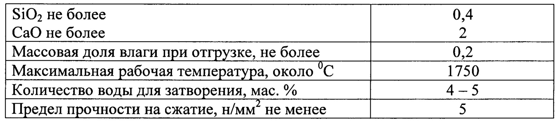 1. Огнеупорная бетонная смесь, включающая электрокорунд, высокоглиноземистый цемент, глинозем и модифицирующую добавку, отличающаяся тем, что смесь содержит полипропиленовое волокно, а в качестве модифицирующей добавки - поликарбоксилат при следующем соотношении компонентов, мас.%: 2. Смесь по п. 1, отличающаяся тем, что она содержит реактивный глинозем с размером частиц не более 10 мкм.Высокоглиноземистый цемент 3-6 Реактивный глинозем 10-15 Поликарбоксилат 0,5-1,0 Полипропиленовое волокно 0,5-1,0 Электрокорунд с размером частиц не более 6000 мкм остальное