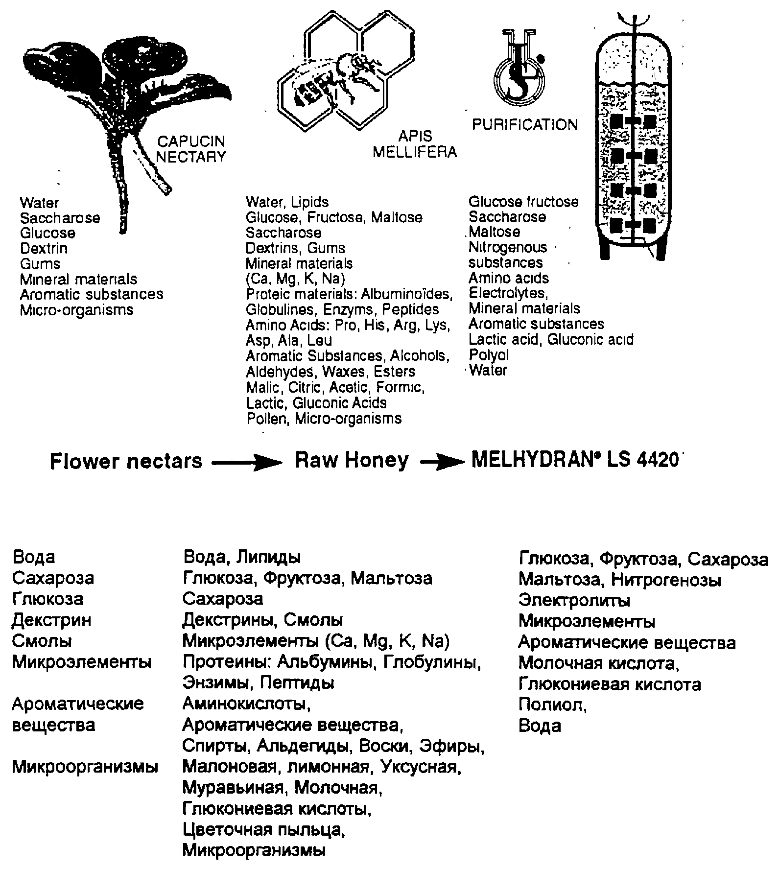 цветочного нектара. Экстракт меда (Melhydran® LS 4420) - это природный увлажняющий и смягчающий комплекс, содержащий компоненты, входящие в состав натурального меда и