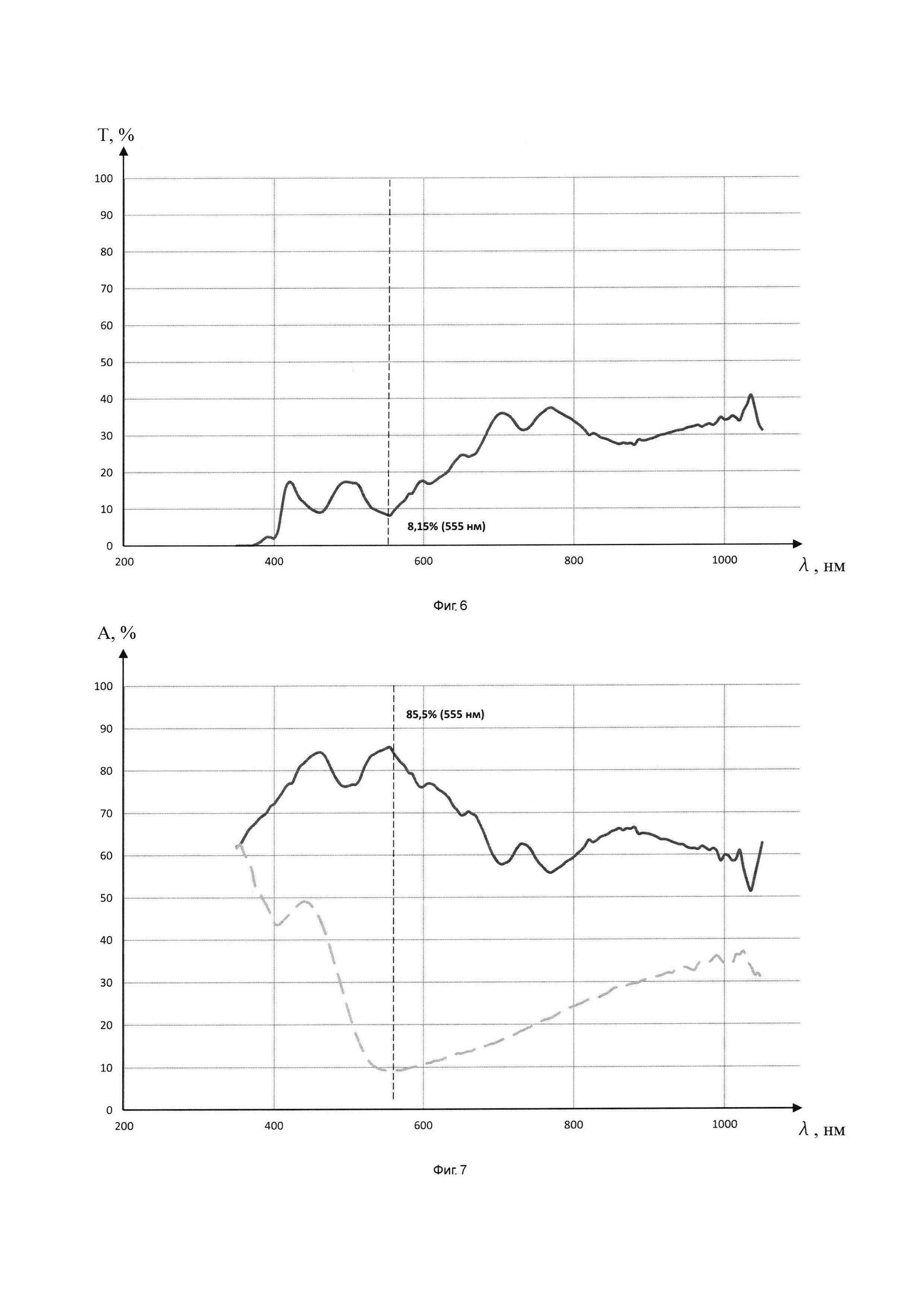 Изобретение относится к устройствам, обеспечивающим изменение величины светопропускания под воздействием электрического тока, а именно к стабильным электрохромным модулям, состоящим из нескольких отдельных слоев различных материалов. Технической результат изобретения направлен на реализацию стабильного многослойного электрохромного модуля, обладающего широкой полосой максимума поглощения, обеспечивающей нейтральный оттенок изделия в окрашенном состоянии и смещенной, при этом, в диапазон длин волн видимой части спектра, с целью минимизации риска термошока светопрозрачных конструкций на основе электрохромного модуля под воздействием интенсивных потоков инфракрасного солнечного излучения. Сущность изобретения заключается в том, что обеспечены варианты изделия с проявляющим эффект электрохромизма при приложении напряжения от внешнего источника покрытием, включающее многослойное покрытие на оптически-прозрачной подложке, которое содержит набор непосредственно контактирующих между собой тонкопленочных слоев различных материалов диапазона толщин от нескольких десятков нанометров до нескольких сотен микрометров, расположенных в определенном друг за другом порядке от поверхности оптически-прозрачной подложки. При этом материалы индивидуальных слоев, их толщины и порядок следования спроектированы таким образом, чтобы конечное изделие по каждому из предложенных вариантов обладало набором требуемых спектрофотометрических качеств с точки зрения диапазона расположения и ширины полосы максимума поглощения, наряду со стабильностью характеристических параметров электрохромирования по отношению к циклическому переключению его оптического состояния между контрастными положениями. 2 н. и 10 з.п. ф-лы, 7 ил., 2 табл.