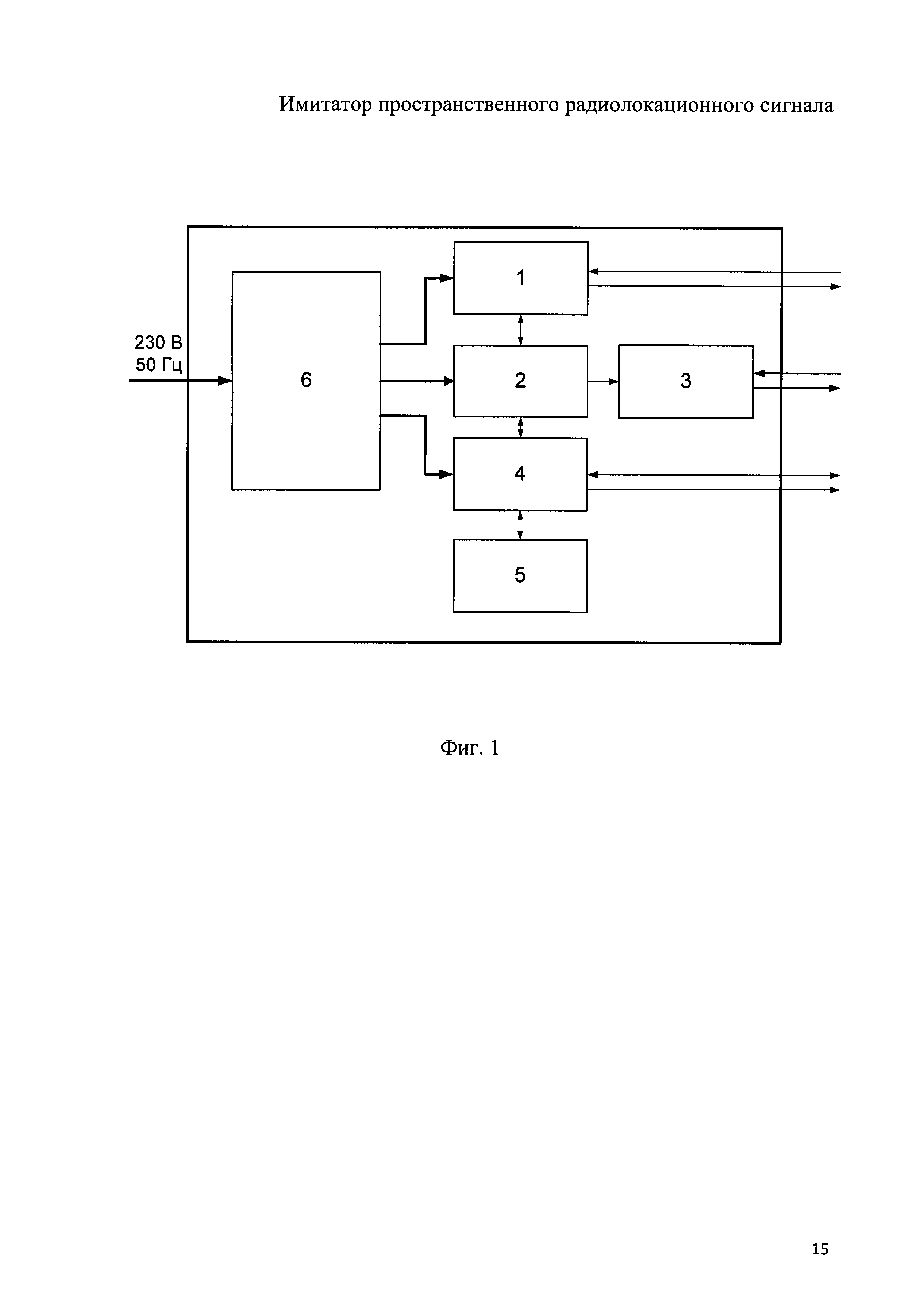 1. Имитатор пространственного радиолокационного сигнала, характеризующийся тем, что содержит связанные между собой многоканальный модуль формирования сигнала, многоканальный СВЧ модуль преобразования частоты, модуль формирования временной задержки, модуль управления и контроля, систему энергообеспечения, линии связи, систему индикации и органы ручного управления, при этом многоканальный модуль формирования сигнала содержит по меньшей мере два канала формирования сигнала, а многоканальный СВЧ модуль преобразования частоты содержит соединенные линией связи делитель мощности и по меньшей мере два смесителя, причем вход каждого смесителя соединен соответственно с выходом каждого канала формирования сигнала, а управляющий вход каждого канала формирования сигнала соединен соответственно с модулем формирования временной задержки, при этом модуль управления и контроля содержит управляющий микроконтроллер и микроконтроллер связи с органами ручного управления и системой индикации, а каждый канал формирования сигнала, входящий в состав многоканального модуля формирования сигнала, содержит микроконтроллер канала, причем управляющий выход управляющего микроконтроллера соединен с управляющим входом микроконтроллера канала каждого канала формирования сигнала. 2. Имитатор пространственного радиолокационного сигнала по п. 1, характеризующийся тем, что канал формирования сигнала содержит последовательно соединенные синтезатор частоты, устройство управления амплитудой, согласующий усилитель, импульсный модулятор, причем управляющий вход синтезатора частоты и управляющий вход устройства управления амплитудой связаны с выходом микроконтроллера канала, при этом управляющий вход импульсного модулятора, который является входом канала формирования сигнала, соединен с модулем формированиявременной задержки, а выход импульсного модулятора соединен с входом смесителя. 3. Имитатор пространственного радиолокационного сигнала по п. 1, характеризующийся тем, что многоканальный модуль формирования сигнала содержит тактовый генератор, выход которого соединен с входом каждого микроконтроллера канала. 4. Имитатор пространственного радиолокационного сигнала по п. 1, характеризующийся тем, что модуль управления и контроля содержит тактовый генератор, выход которого соединен с входами управляющего микроконтроллера и микроконтроллера связи с органами ручного управления и системой индикации. 5. Имитатор пространственного радиолокационного сигнала по п. 1, характеризующийся тем, что система энергообеспечения содержит блок предохранителей.