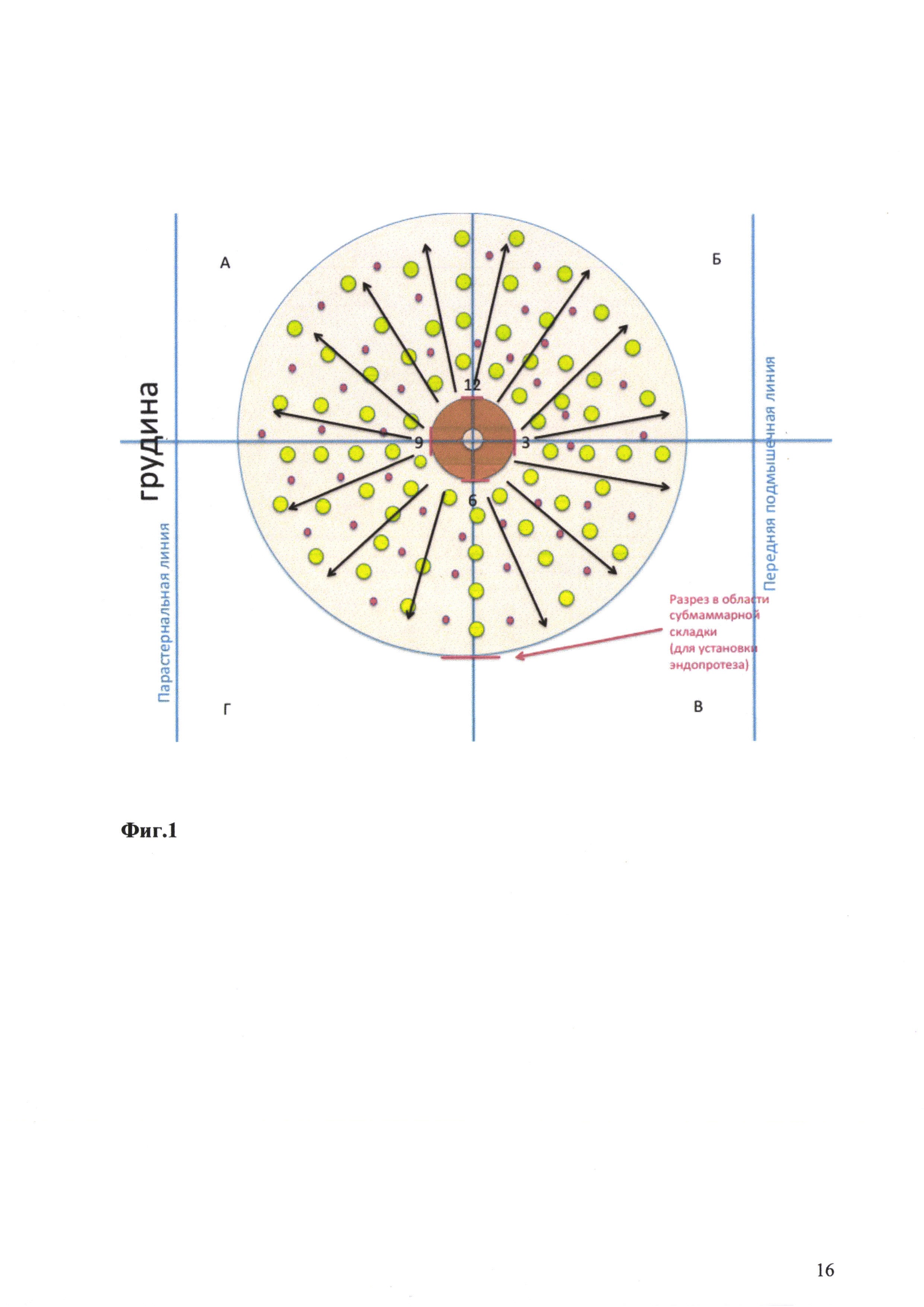 Изобретение относится к медицине, а именно, к пластической и эстетической хирургии и может быть использовано для предотвращения эстетических осложнений, которые возникают после эндопротезирования молочных желез. Аугментационная маммопластика - самая распространенная операция в эстетической пластической хирургии. По данным международного общества эстетических и пластических хирургов (ISAPS), в 2013 г. в мире выполнено более 1,7 млн. увеличивающих маммопластик [The International Society of Aesthetic Plastic Surgery Statistics on Cosmetic Procedures World wide, www.isaps.org]. В ежегодном отчете Американского общества пластических хирургов за 2014 г. отмечено, что аугментационная маммопластика также занимает лидирующее место среди всех операций в эстетической хирургии, на долю которой приходится до 286000 процедур в год [ASPS plast. surg. Statistics report, 2014; www.plasticsurgery.org]. Широкая распространенность эстетических операций делает актуальной проблему не только профилактики, но и коррекции хирургических осложнений после аугментационной маммопластики. Так, по данным 15-ти летнего опыта увеличивающей маммопластики зарубежных коллег даже в клиниках, обладающих значимым опытом в эстетической и реконструктивной хирургии груди, уровень осложнений, требующих повторной операции в течение первого года, достигает 14,2% [Codner М.А., Mejia J.D., Locke М.В., Mahoney A., Thiels C., Nahai F.R., Hester T.R., Nahai F. A 15-year experiencewith primary breast augmentation. Plast Reconstr Surg. 2011;127(3):1300-1310]. По данным ретроспективного исследования, представленного коллективом авторов, в котором были проанализированы результаты первичных аугментационных маммопластик, выполненных 3002 пациенткам, общая частота послеоперационных осложнений составила 4,6% (137 пациенток). Из них, гематомы были у 46 пациенток (1,5%), инфекция у 33 пациенток (1,1%), асимметрия молочных желез - в 23 случаях (0,8%), "рипплинг" - у 21 пациентки (0,7%) капсулярная контрактура у 14 пациенток (0,5%) [Araco A., Gravante G., Araco F., Delogu D., Cervelli V., Walgenbach K. A retrospective analysis of 3,000 primary aesthetic breast augmentations: Postoperative complications and associated factors. Aesthetic Plast Surg. 2007; 31: 532-539]. По данным датских ученых, проанализировавших результаты операций у 5337 пациенток после аугментационной маммопластики, к наиболее частым осложнениям в раннем послеоперационном периоде (до 30 дней после операции) относят гематому (1.1%) и инфицирование (1.2%), а в отдаленном (5 лет после операции) большое значение принимают: снижение чувствительности оперированной груди и сосково-ареолярного комплекса (8.7%); асимметрия/миграция импланта (5.2%); капсулярная контрактура II степени по Baker (4.2%). Частота развития капсулярной контрактуры III-IV степени по Ваkеr в течение 3 и 5 лет составила 1.2% и 1.7% соответственно [Hvilsom G.B., Holmich L.R., Henriksen T.F., Lipworth L., McLaughlin J.K., Friis S. Local Complications after Cosmetic Breast Augmentation Results from the Danish Registry for Plastic Surgery of the Breast. Plastic Surgical Nursing. 2010;30(3):172-179]. По данным исследования компании Меntor после маммопластики у 551 пациентки повторная операция была необходима в 19,4% [Cunningham В, McCue J. Safety and effectiveness of Mentor's Memory Gelimplants at 6 years. Aesthetic Plast Surg. 2009; 33:440-444]. При аналогичном анализе необходимость повторных операций после имплантации протезов Allergan 455 пациенткам составила 28% [Spear S.L., Murphy D.K., Slicton A., Walker P.S.; Inamed Silicone Breast Implant U.S. Study Group. Inamed silicone breast implant core study results at 6 years. Plast Reconstr Surg. 2007; 120:8S-16S; discussion 17S-18S]. Все перечисленные осложнения условно можно разделить на общехирургические и эстетические, с точки зрения подходов к их коррекции. Так, ряд общехирургических осложнений, т