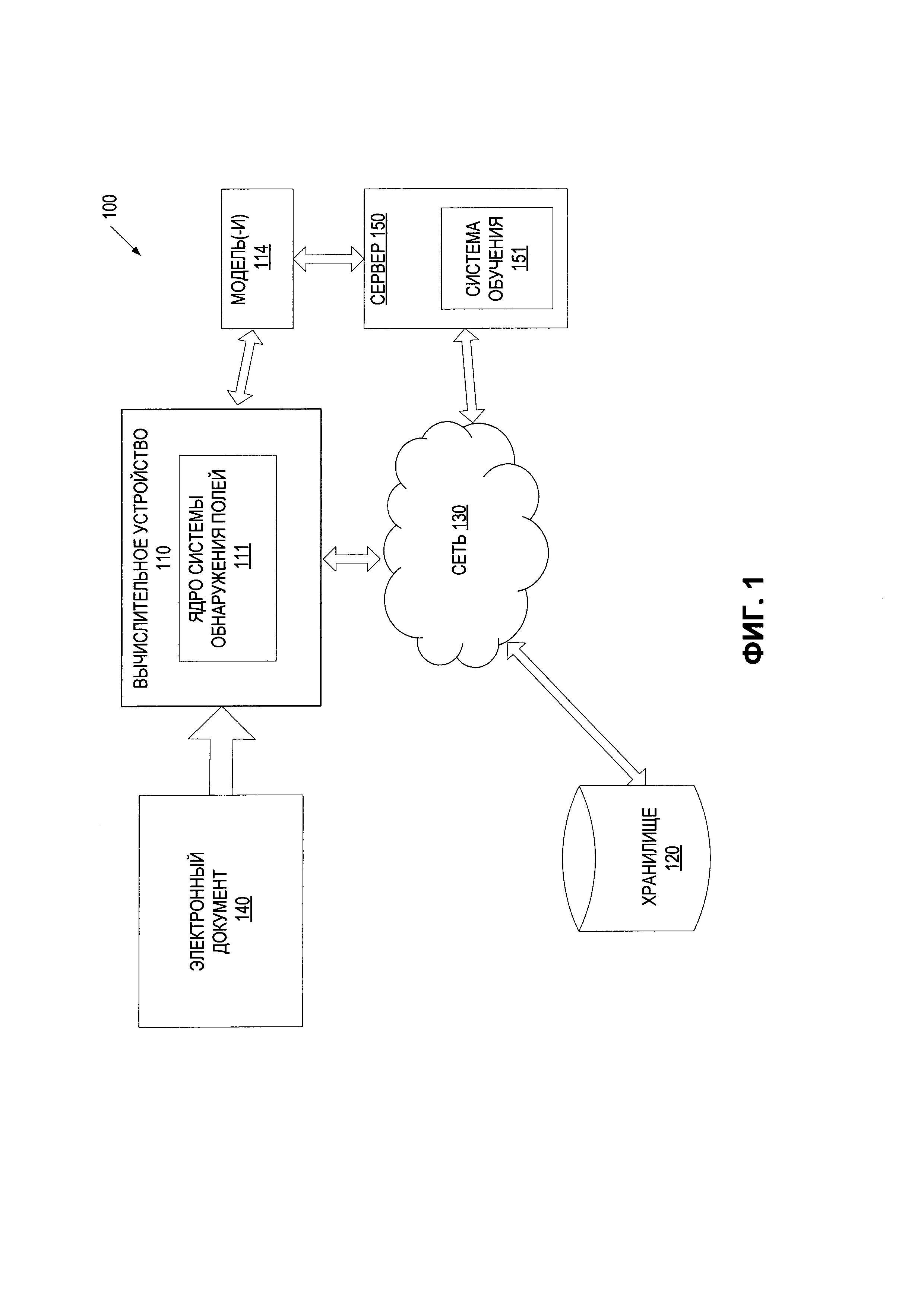 1. Способ анализа электронного документа, включающий: извлечение из электронного документа множества признаков слов, где множество признаков включает множество символьных векторов, представляющих слова, имеющиеся на изображении; обработку множества признаков слов с использованием нейронной сети, включающей множества слоев нейронной сети; обнаружение процессорным устройством множества текстовых полей в электронном документе исходя из результата работы нейронной сети, на основании пространственной информации, указывающей на расположение указанных текстовых полей в электронном документе; и присвоение процессорным устройством каждого из текстовых полей одному из множества типов полей исходя из результата работы нейронной сети, с учетом отнесения на основании указанных признаков слов каждого из слов указанных текстовых полей к одному из заранее определенных классов, где каждый из заранее определенных классов соответствует одному из типов текстовых полей. 2. Способ по п. 1, отличающийся тем, что извлечение множества признаков электронного документа включает: распознавание текста на изображении электронного документа; разделение распознанного текста на изображении на слова; извлечение множества последовательностей символов из каждого слова; и извлечение множества символьных векторов из множества последовательностей символов. 3. Способ по п. 2, отличающийся тем, что извлечение множества последовательностей символов из слов включает: извлечение из каждого слова первого множества символов и второго множества символов, причем первое множество символов соответствует второму множеству символов в обратном порядке. 4. Способ по п. 1, отличающийся тем, что обработка множества признаков с использованием нейронной сети включает: обработку первым множеством слоев нейронной сети множества последовательностей символов для извлечения первого множества векторов признаков, представляющих слова электронного документа. 5. Способ по п. 4, отличающийся тем, что первое множество векторов признаков содержит множество векторных представлений слов. 6. Способ по п. 4, отличающийся тем, что обработка множества признаков с использованием нейронной сети включает: обработку вторым множеством слоев нейронной сети множества признаков, извлеченных из электронного документа, для построения по меньшей мере одной первой таблицы первого множества признаков слов исходя из первого множества векторов признаков и второго множества векторов признаков, представляющих слова электронного документа. 7. Способ по п. 6, отличающийся тем, что второе множество векторов признаков содержит по меньшей мере одно из: множество векторов слов из словаря векторов признаков слов или множество векторов слов из словаря ключевых слов. 8. Способ по п. 6, отличающийся тем, что второе множество векторов признаков содержит пространственную информацию о множестве частей электронного документа, содержащих слова, где каждая из множества частей электронного документа соответствует одному из слов. 9. Способ по п. 6, отличающийся тем, что обработка множества признаков с использованием нейронной сети включает: создание с использованием третьего множества слоев нейронной сети псевдоизображения на основе не менее одной первой таблицы первого множества признаков слов, г