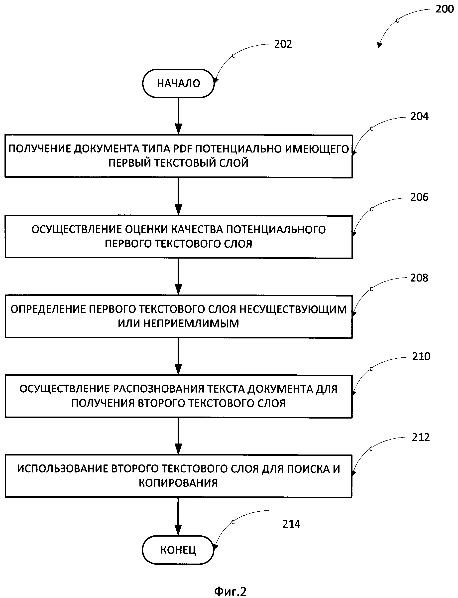 Изобретение относится к области обработки изображений. Технический результат заключается в обеспечении конвертации без потерь PDF документа в PDF документ с возможностью поиска. Технический результат достигается за счет получения PDF документа, имеющего первый текстовый слой для поиска и копирования, оценки качества первого текстового слоя, и если первый слой является некорректным, создания второго текстового слоя в PDF документе для поиска или копирования. 3 н. и 24 з.п. ф-лы, 18 ил.