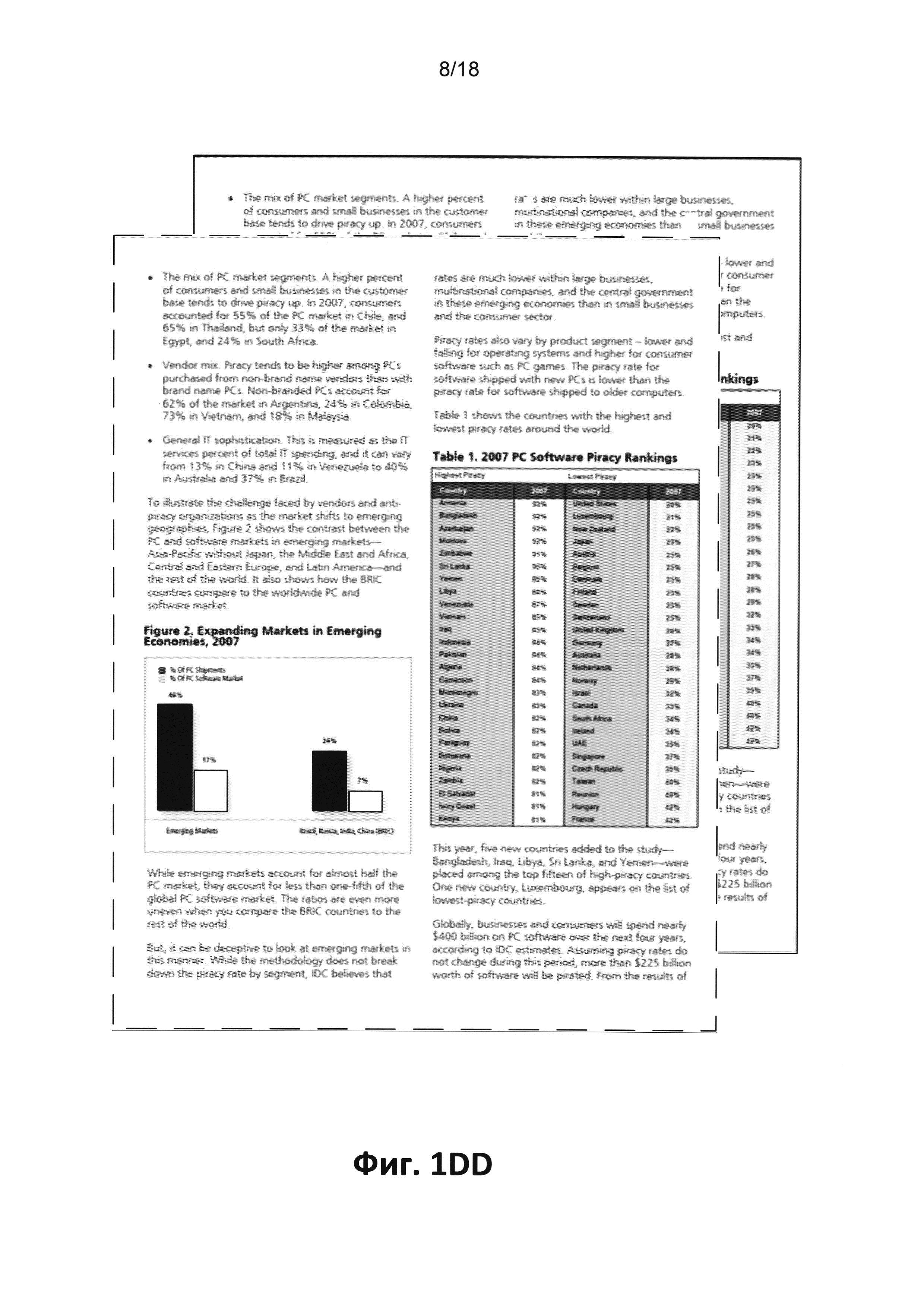 1. Способ конвертации без потерь PDF документа в PDF документ с возможностью поиска с использованием процессорного устройства, включающий: получение PDF документа, имеющего первый текстовый слой для поиска и копирования; оценку качества первого текстового слоя; и если первый слой является некорректным, создание второго текстового слоя в PDF документе для поиска или копирования. 2. Способ по п. 1, отличающийся тем, что второй текстовый слой создается за счет распознавания PDF документа. 3. Способ по п. 1, отличающийся тем, первый текстовый слой является некорректным, если он содержит ошибки, превышающие пороговое значение. 4. Способ по п. 1, отличающийся тем, что первый текстовый слой является видимым текстовым слоем, и дополнительно предусматривающий отключение возможности поиска или копирования видимого текстового слоя. 5. Способ по п. 1, отличающийся тем, что первый текстовый слой является невидимым слоем, и дополнительно предусматривающий удаление невидимого текстового слоя. 6. Способ по п. 1, отличающийся тем, что оценка качества первого текстового слоя включает сравнение первого текстового слоя со вторым текстовым слоем. 7. Способ по п. 6, отличающийся тем, что сравнение первого текстового слоя со вторым текстовым слоем содержит сравнение частей первого текстового слоя и второго текстового слоя, относящихся к одной и той же части изображения PDF документа. 8. Способ по п. 1, отличающийся тем, что оценка качества первого слоя текста включает сравнение первого текстового слоя по меньшей мере с одним словарем для выполнения операции проверки по словарю. 9. Способ по п. 1, отличающийся тем, что выполнение оценки качества первого текстового слоя дополнительно предусматривает использование метода полиграмм в первом текстовом слое: разбиение каждого слова в первом текстовом слое на комбинации букв, причем комбинации букв представляют собой комбинации из двух букв и комбинации из трех букв; и проверку комбинаций букв на основании таблицы приемлемости комбинаций букв в естественном языке. 10. Система для конвертации без потерь PDF документа в PDF документ с возможностью поиска, включающая в себя: по меньшей мере одно процессорное устройство, причем по меньшей мере одно процессорное устройство: получает PDF документ, содержащий первый текстовый слой для поиска и копирования; оценивает качество первого текстового слоя; и если первый текстовый слой является некорректным, создает второй текстовый слой в PDF документе для поиска или копирования. 11. Система по п. 10, отличающийся тем, что второй текстовый слой создается за счет распознавания PDF документа. 12. Система по п. 10, отличающийся тем, что первый текстовый слой является некорректным, если он содержит ошибки, превышающие пороговое значение. 13. Система по п. 10, отличающаяся тем, что первый текстовый слой представляет собой видимый текстовый слой и по меньшей мере одно процессорное устройство блокирует возможность поиска или копирования в видимом текстовом слое. 14. Система по п. 10, отличающаяся тем, что первый слой текста является невидимым слоем, дополнительно отличающаяся тем, что по меньшей мере одно процессорное устройство удаляет невидимый текстовый слой. 15. Система по п. 10, отличающаяся тем, что оценка качества первого текстового слоя включает сравнение первого текстового слоя со вторым текстов