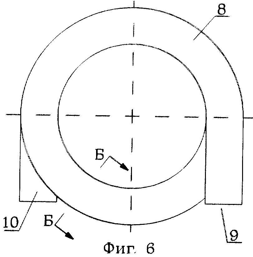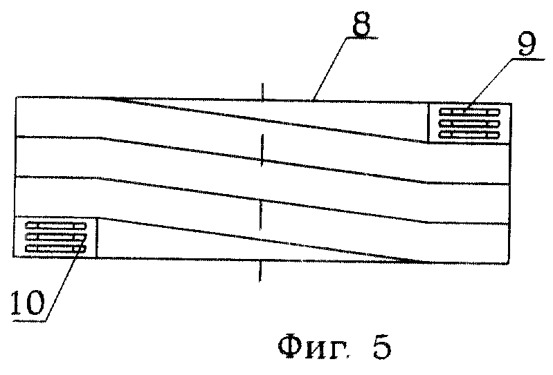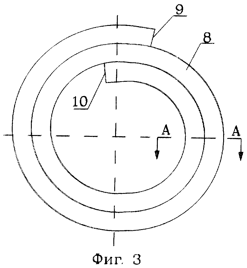 8. На фиг.5 и 6 показаны две проекции конструкции предложенного устройства по третьему варианту реализации, а на фиг.7 поперечное сечение трех витков спирали, в которой блоки