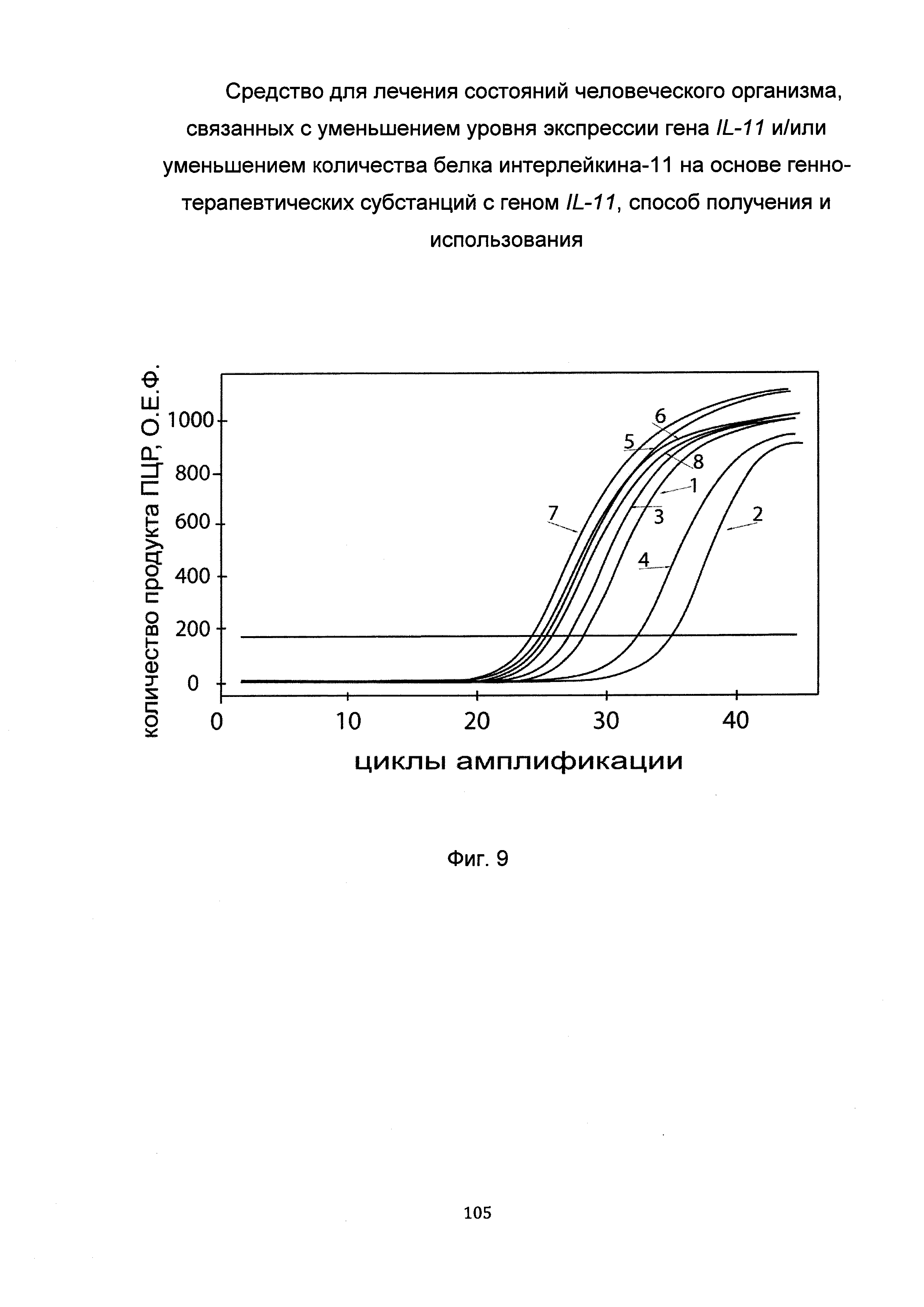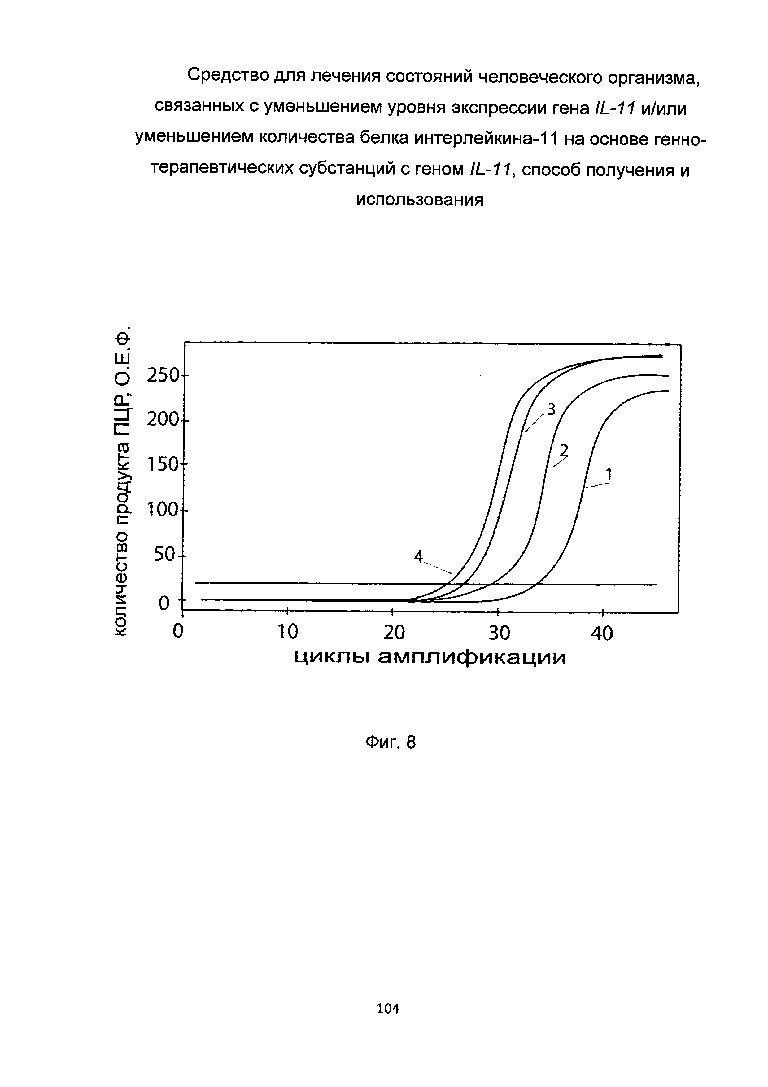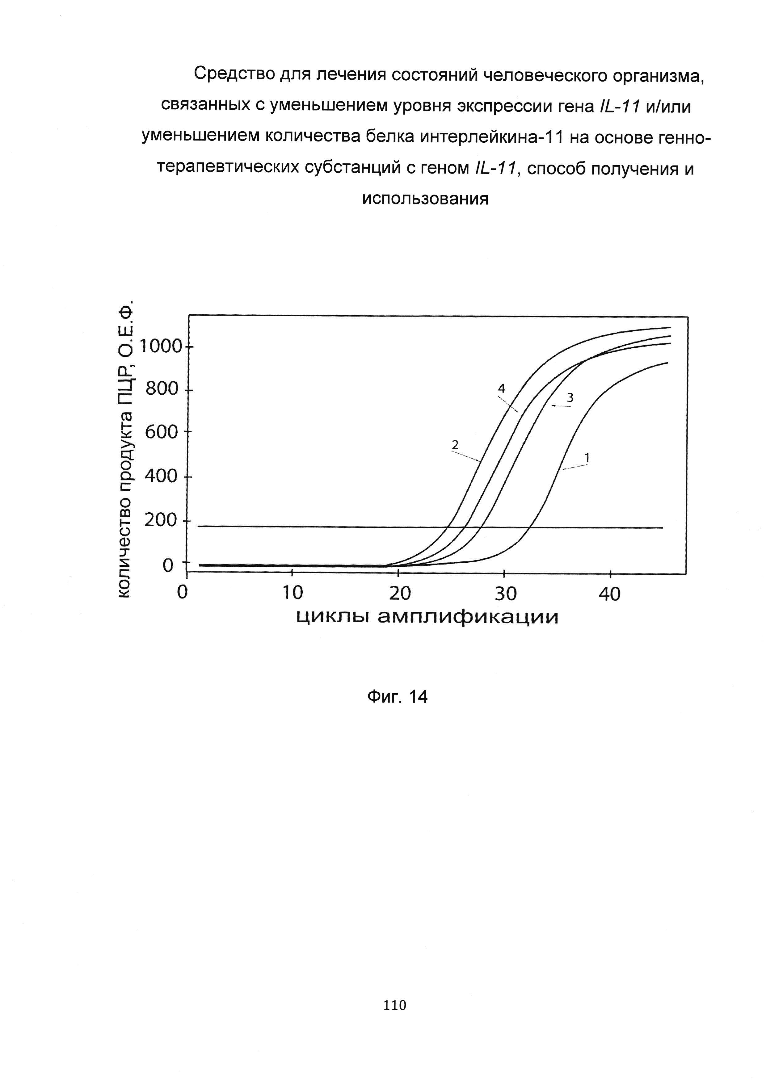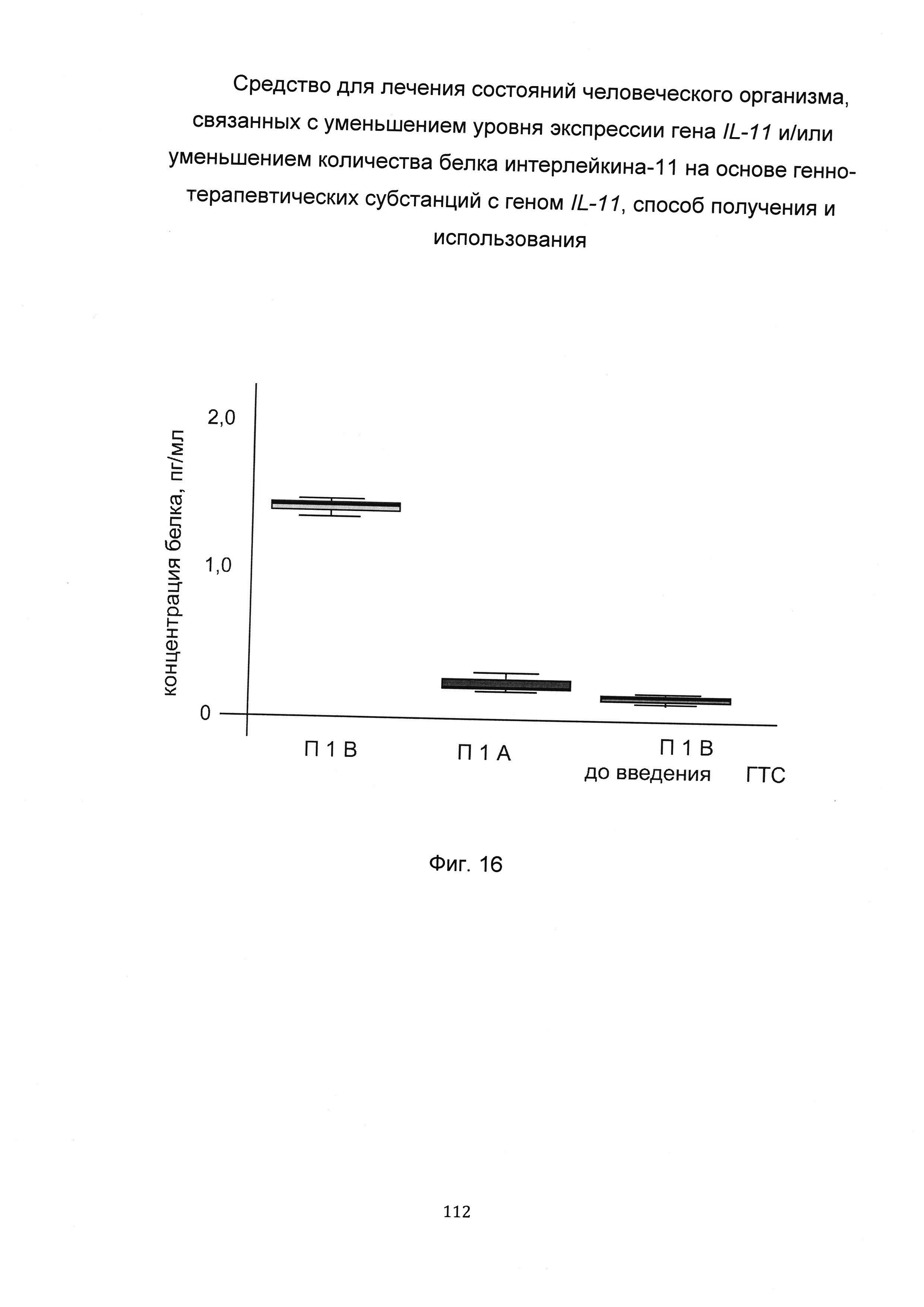 Группа изобретений относится к медицине и касается средства для лечения состояний клеток различных органов и тканей, а также собственно органов и тканей человека, связанных с уменьшением экспрессии гена IL-11 и/или уменьшением количества белка интерлейкина-11 на основе генно-терапевтических субстанций с геном IL-11, где клетки органов и тканей выбраны из клеток фибробластов, клеток эндометрия матки, хондроцитов и эпителиальных клеток; органы и ткани выбраны из кожи, матки, хрящевой ткани, эндометриальной ткани или мышечной ткани человека, представляющего собой по крайней мере одну генно-терапевтическую субстанцию, выбранную из группы генно-терапевтических субстанций, каждая из которых представляет генетическую конструкцию на основе векторной плазмиды, включающей кДНК гена IL-11, с кодирующей последовательностью белка интерлейкина-11, с делециями 5'- и 3'-нетранслируемых областей, а именно полученной на основе участка нативной немодифицированной кДНК гена IL-11 SEQ ID No: 1 или участка нативной немодифицированной кДНК гена IL-11 SEQ ID No: 2 или модифицированной кДНК гена IL-11, при этом в качестве модифицированной кДНК гена IL-11 используют SEQ ID No: 3, или SEQ ID No: 4, или SEQ ID No: 5, или SEQ ID No: 6, или SEQ ID No: 7, или сочетание этих генетических конструкций, каждая из которых содержит также регуляторные элементы, в сочетании с транспортной молекулой или без нее. Группа изобретений также касается способа получения указанного средства; способа использования указанного средства для лечения состояний человеческого организма, связанных с уменьшением экспрессии гена IL-11 и/или уменьшением количества белка интерлейкина-11. Группа изобретений обеспечивает высокий и стабильный уровень целевого белка в клетках. 3 н. и 2 з.п. ф-лы, 18 пр., 20 ил.