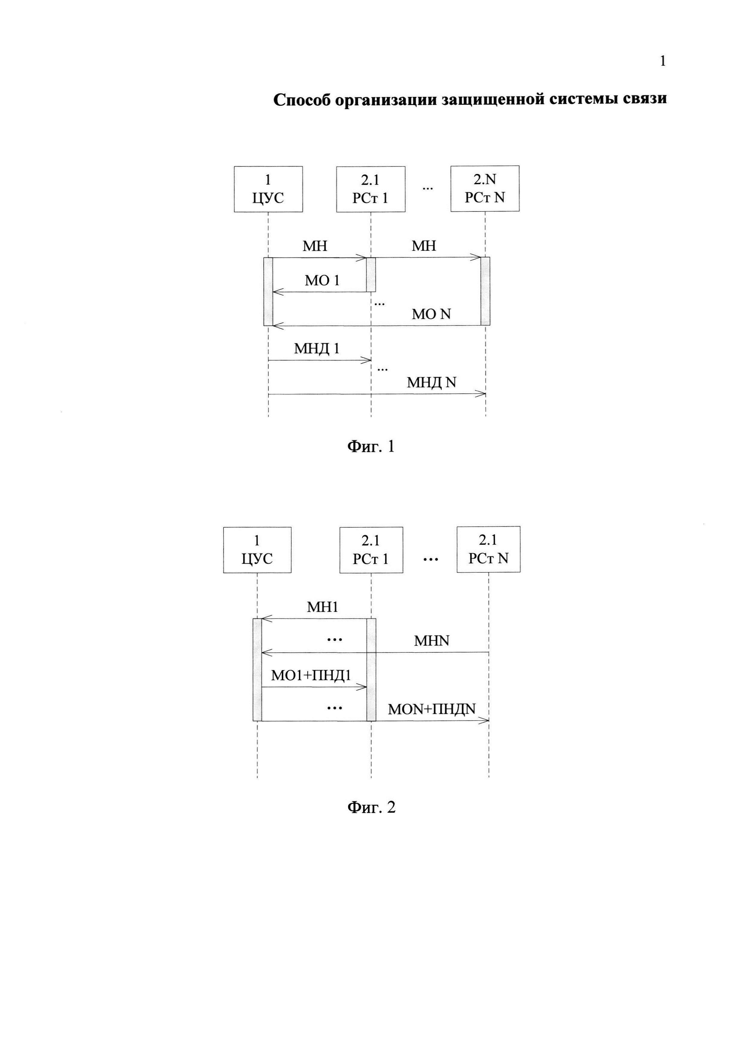 Способ организации защищенной системы связи, включающий обмен сигналами-маяками между центром управления связью (ЦУС) и N≥1 радиостанциями, отличающийся тем, что из ЦУС на выбранной радиочастоте осуществляют излучение маяков настройки, содержащих открытый ключ ЦУС для каждой из радиостанций сети; радиостанции обнаруживают маяк настройки путем сканирования частотного диапазона, проверяют его подлинность и в случае подтверждения подлинности маяка настройки излучают на радиочастоте приема маяка настройки в заданные непересекающиеся моменты времени маяк ответа с сеансовым ключом, зашифрованным открытым ключом ЦУС; ЦУС принимает маяк ответа от каждой радиостанции, проверяет его подлинность и в случае подтверждения подлинности маяка ответа передает для каждой радиостанции маяк настроечных данных, содержащий заранее рассчитанные для нее настроечные данные, зашифрованные принятым сеансовым ключом; радиостанции принимают маяки настроечных данных от ЦУС, проверяют их подлинность и в случае подтверждения подлинности маяков настроечных данных расшифровывают с помощью сеансовых ключей содержащиеся в них настроечные данные, которые далее используют для настройки своих параметров.