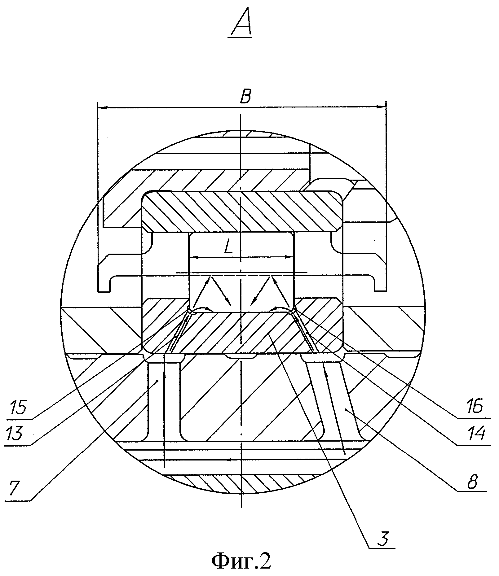 может быть различным, т.е. оси каналов могут быть расположены как в одной, так и в разных плоскостях. Выполнение для подшипника узла опоры соотношения B/L=1,1-5,0, где В - ширина