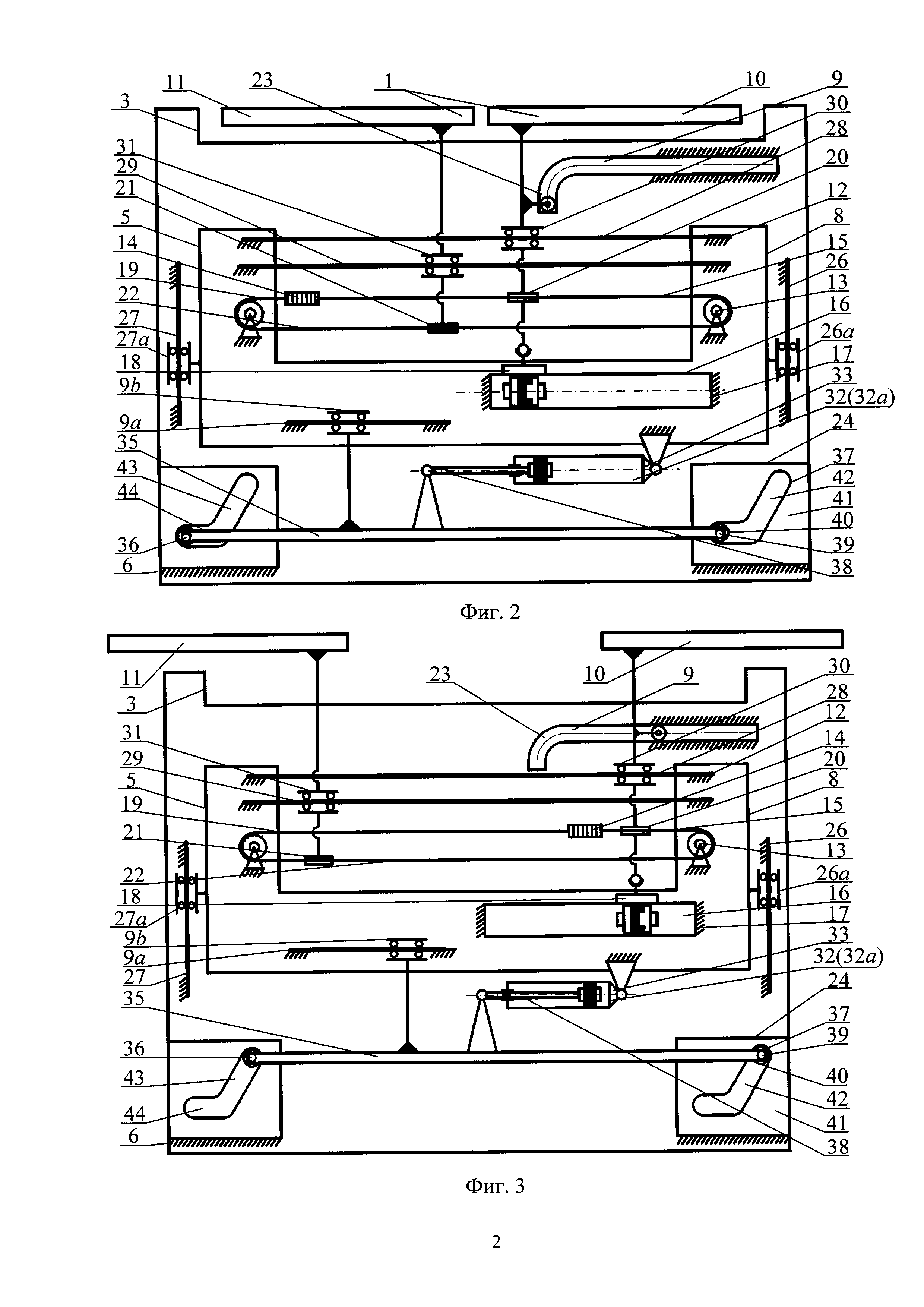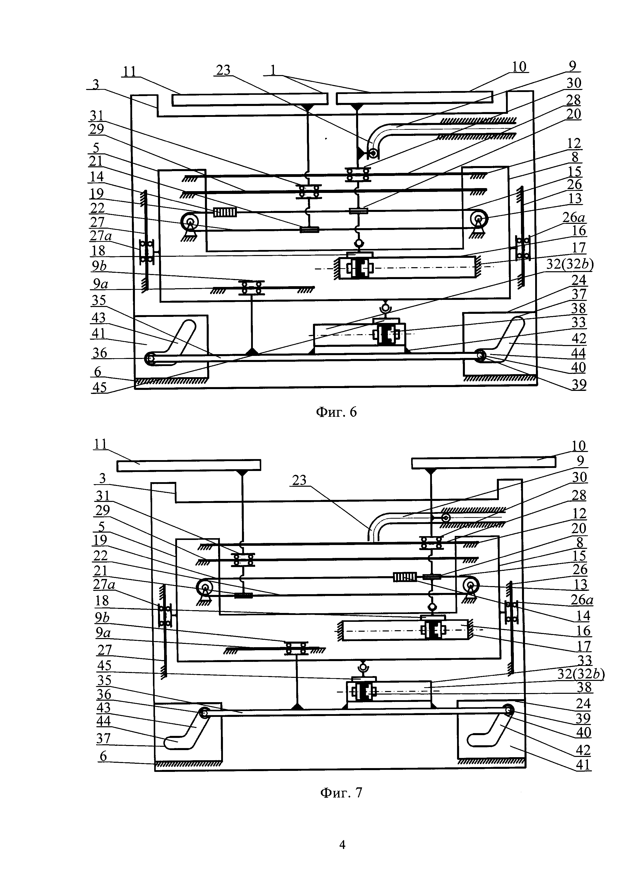 Изобретение относится к транспортным средствам, в частности к устройству привода прислонно-сдвижной двери пассажирского вагона. Устройство пневматического привода прислонно-сдвижной двери пассажирского вагона с дверным проемом в боковой стенке имеет силовой блок (5) с неподвижным основанием (6) блока, закрепленным на верхней балке дверного проема, и подвижным блоком (8) с направляющими (9) для движения прислонно-сдвижной двери с двумя створками. Механизм привода открытия-закрытия створок двери состоит из установленной на подвижном блоке бесконечной цепной передачи с механизмом натяжения цепи и пневматического цилиндра (16) привода цепи, неподвижная часть которого закреплена на подвижном блоке, а подвижная часть жестко соединена с одной из ветвей цепи, и верхней и нижней кареток, одна из которых закреплена на верхней, а другая - на нижней ветвях цепи, соединенных со створками двери. Устройство пневматического привода содержит средство блокировки движения створок двери в их закрытом положении, механизм выдвижения подвижного блока относительно основания блока с клиновым исполнительным устройством; механизм синхронизации положения верха и низа створок двери при выдвижении подвижного блока. На основании блока закреплены направляющие выдвижения подвижного блока с ползунами. Механизм выдвижения подвижного блока состоит из пневмоцилиндра (32), корпус которого установлен параллельно плоскости дверей, подвижная часть соединена с установленной в направляющей, параллельной оси пневмоцилиндра, подвижной линейкой (35), имеющей на концах элементы соединения с клиновым исполнительным устройством механизма выдвижения подвижного блока. Корпус пневмоцилиндра привода цепи закреплен на подвижном блоке, а внешняя каретка соединена с одной из ветвей цепной передачи. Изобретение повышает надежность привода. 4 з.п. ф-лы, 9 ил.