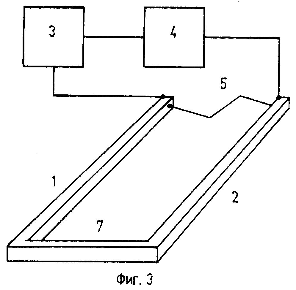 резистивного материала с повышенным электрическим удельным сопротивлением, входные концы которых подключены последовательно к внешней цепи, содержащей источник электрической энергии 3 и нагрузку 4,