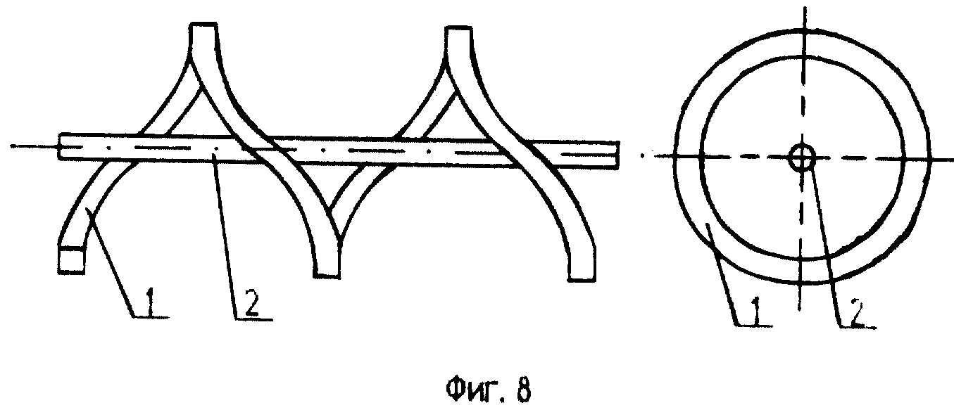описанным выше и позволяют уменьшить габариты. Вместе с тем, в устройствах фиг. 5 и фиг. 7 после прохождения дугой первого витка спирали на дугу действует суммарное магнитное поле всех пройденных