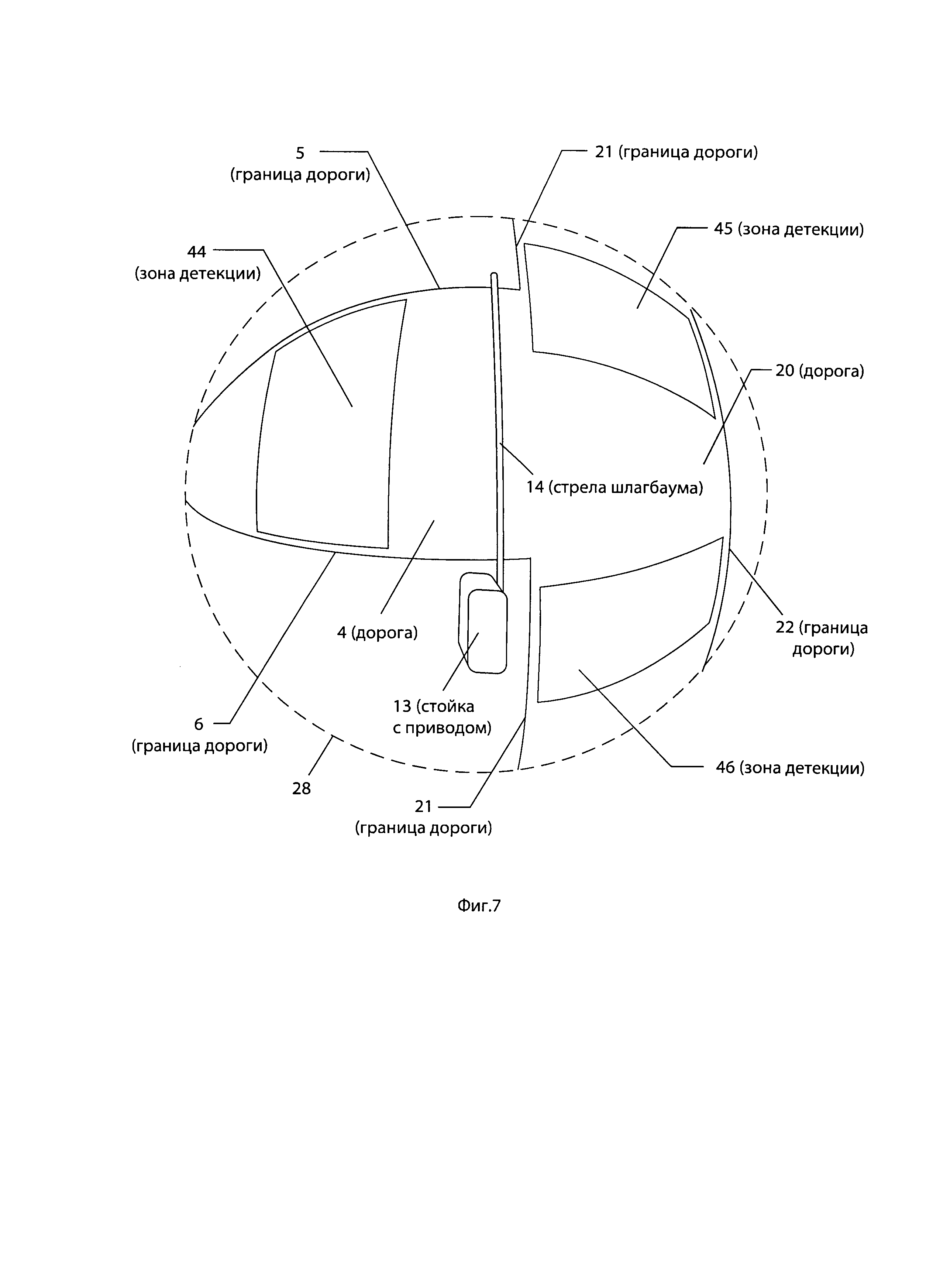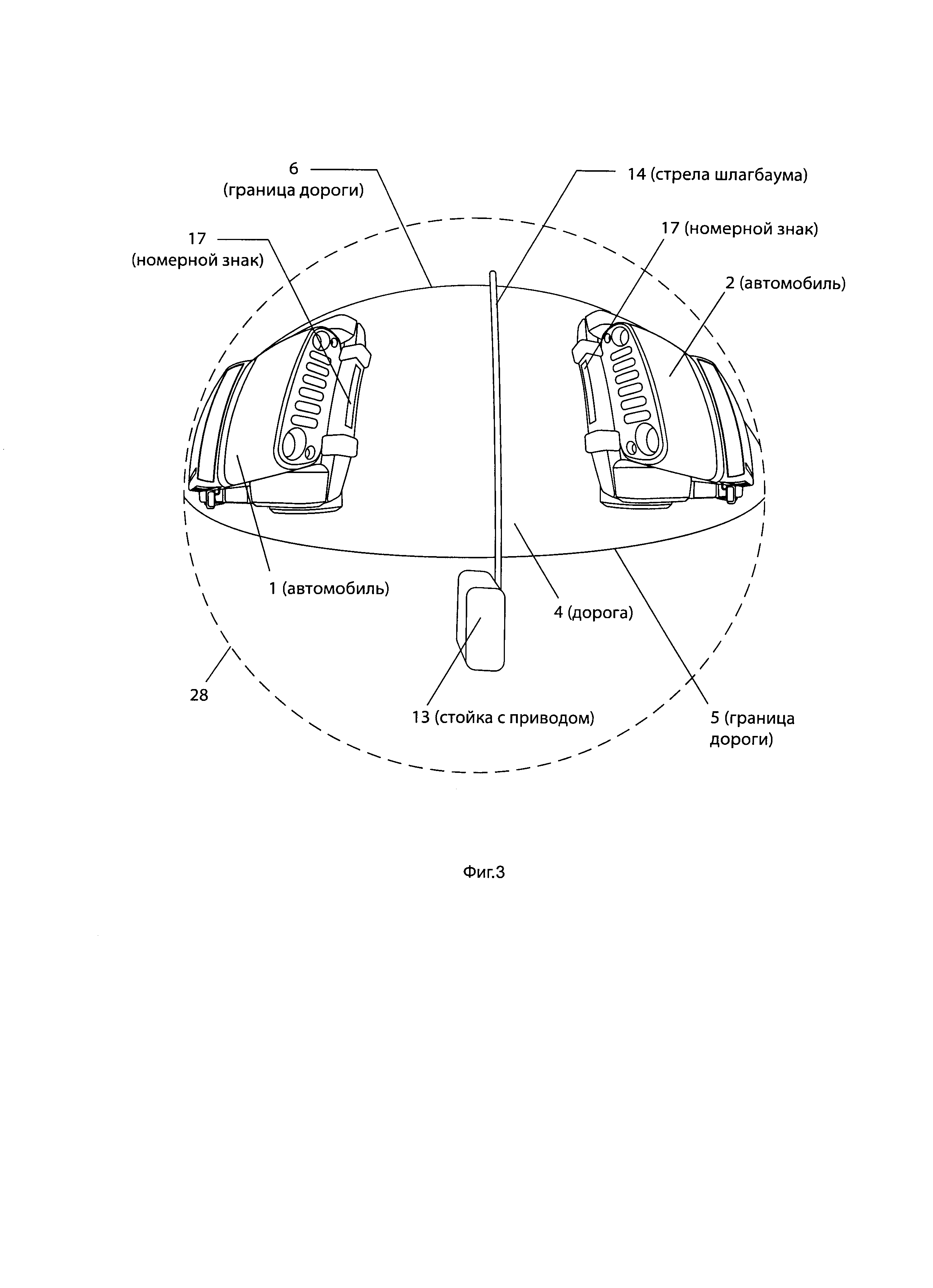 Область техники, к которой относится изобретение Изобретение относится к области регулирования движения автомобилей, а именно к способам и системам управления пропуском автомобилей через находящуюся на их пути заданную границу в обоих направлениях, и, более точно, к способам и системам управления пропуском автомобилей, основанным на контроле регистрационных номеров автомобилей с помощью видеосистем, установленных на пути их движения. Эти способы и системы могут использоваться при въезде автомобилей на некоторый участок дороги или при повороте на другую дорогу, при въезде автомобилей на контролируемую территорию и при выезде из нее, при парковке автомобилей на любых автостоянках. Уровень техники В известных способах и системах контроля регистрационных номеров автомобилей с помощью видеосистем используют видеокамеры, дающие плоское изображение контролируемой области (или, иначе говоря, сцены). Так, известны способ и устройство детектирования номера автомобиля с помощью видеокамеры, установленной на пути движения автомобиля и дающей плоское изображение (см. заявку на патент США 2013/0050493 от 2012 г., опубл. Feb.28, 2013, US Class 348/148, "Device and Method for Detecting Vehicle License Plates", автор Sladjan Mitle (Вена), патентообладатель KAPSCH TRAFFICCOM AG (Вена, Австрия)). Устройство по этой заявке содержит видеокамеру, дающую плоское изображение, источник освещения и соединенный с ними управляющий блок, выполненный в виде микропроцессора. В этом устройстве источник освещения не объединен конструктивно с видеокамерой, а реализован в виде отдельно установленного «прожектора». Этот источник освещения может состоять из одного источника или группы источников видимого и/или инфракрасного излучения и может быть выполнен с управляемыми параметрами. Способ обнаружения регистрационного номера автомобиля по этой заявке сводится к тому, что сначала ищут пластину с регистрационным номером автомобиля (license plate), которая в соответствии с ГОСТ Р 50577-93 в России называется номерным знаком автомобиля, для чего используют видеокамеру в режиме генерирования последовательности изображений обозреваемого пространства с низким разрешением и с высокой скоростью кадров. А когда такая пластина (или, иначе говоря, номерной знак) обнаружена, детектируют регистрационный номер автомобиля на этой пластине, для чего переключают видеокамеру в режим формирования изображений этой пластины с высоким разрешением и с малой скоростью кадров. Эти способ и устройство по этой заявке могут быть использованы в системах управления пропуском автомобилей через заданную границу. Однако недостаток этого способа и устройства заключается в том, что они обеспечивают обнаружение регистрационных номеров автомобилей только при их движении в одном направлении. Известна система наблюдения за объектами в контролируемой области (или, иначе говоря, в сцене), названная «системой мониторинга изображений» и способная распознавать, в частности, регистрационные номера автомобилей, а также способ построения подобных систем (см. заявку на патент США 2013/0208113 от 23 июля 2013 г., опубл. 15 августа 2013 г., US Class 348/143, "Image Monitoring Apparatus, Image Monitoring System, and Image monitoring System Configuration Method", авторы K. Yoneji, T. Yoshimanaga, D. Matsubara, T. Kagehiro (Япония), заявитель Hitachi, Ltd (Япония)). Эта система содержит видеокамеру, установленную над сценой и предназначенную для получени