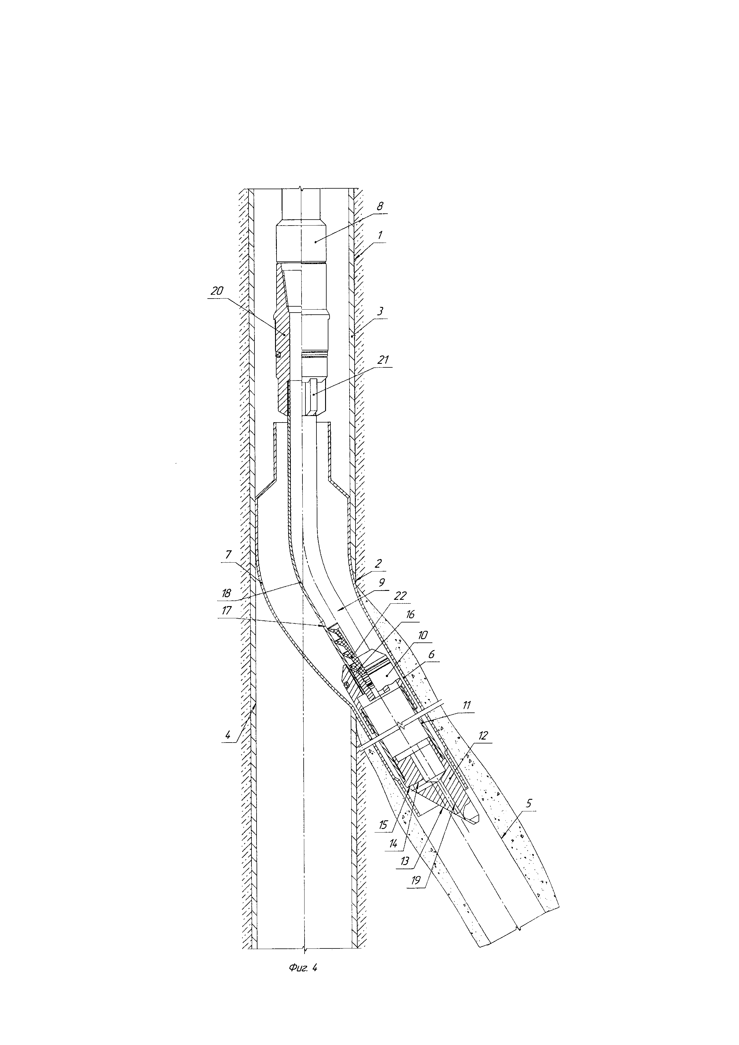 Изобретение относится к нефтегазовой промышленности и может быть использовано для забуривания и крепления дополнительных стволов многоствольной скважины из ранее пробуренных обсаженных скважин. Известны способ обеспечения связи стволов бокового ответвления (дополнительного ствола) с обсаженным основным стволом скважины и устройство для его осуществления (пат. RU №2239041, МПК Е21В 7/08, 47/12 опубл. в бюл. №30 от 27.10.2004). Способ включает установку извлекаемого шаблона для бокового ответвления в основном стволе напротив окна, причем шаблон оборудован средством направления соединителя в боковой ствол и соединения их между собой элементами зацепления «гребень - канавка», а соединителя с хвостовиком - «конус - конус», при необходимости эти соединения могут комплектоваться уплотнителями для создания герметичного соединения обсадных колонн. Устройство для обеспечения связи стволов боковых ответвлений, имеющих установленные хвостовики, с обсаженным основным стволом скважины в подземном пласте, имеющим по меньшей мере одно окно, через которое проходит ствол бокового ответвления, при этом устройство содержит шаблон для бокового ответвления, приспособленный для позиционирования и ориентирования внутри обсадной колонны основного ствола скважины с целью совмещения с окном и стволом бокового ответвления, причем шаблон имеет направляющее средство и первое средство взаимной блокировки и соединитель для бокового ответвления, приспособленный для вхождения во взаимодействие с направляющим средством и перемещения в продольном направлении относительно шаблона в положение соединения, в котором часть соединителя для бокового ответвления размещается внутри ствола бокового ответвления, причем соединитель включает второе средство взаимной блокировки для сопряжения с первым средством взаимной блокировки для образования узла, обеспечивающего связь с боковым ответвлением, создающего путь потока продукции, при этом первое средство взаимной блокировки шаблона и второе средство взаимной блокировки соединителя выполнены и расположены по существу соответственно продольно вдоль тела шаблона для бокового ответвления и продольно вдоль тела соединителя для бокового ответвления. Недостатками данных способа и устройства являются: - сложность конструкции оборудования, требующей предварительной сборки и разборки на устье скважины для проверки собираемости и, как следствие, высококвалифицированный обслуживающий персонал и высокий уровень культуры производства, что ведет к удорожанию работ; - значительное уменьшение внутренних диаметров основного и дополнительного стволов после установки шаблона и соединителя, что ограничивает применение способа и устройства в скважинах малого диаметра; - невозможность применения в существующих скважинах, так как в эксплуатационных колоннах нет прорезей для установки и позиционирования шаблона; - сложность применения и высокая стоимость используемых конструктивных элементов, что приводит к высоким материальным затратам; - необходимость изолирования всех зон осложнений перед спуском хвостовика в дополнительный ствол, так как недохождение хвостовика до забоя приведет к аварийной ситуации с невозможностью создания герметичного соединения стволов, ликвидация которой увеличит сроки и стоимо