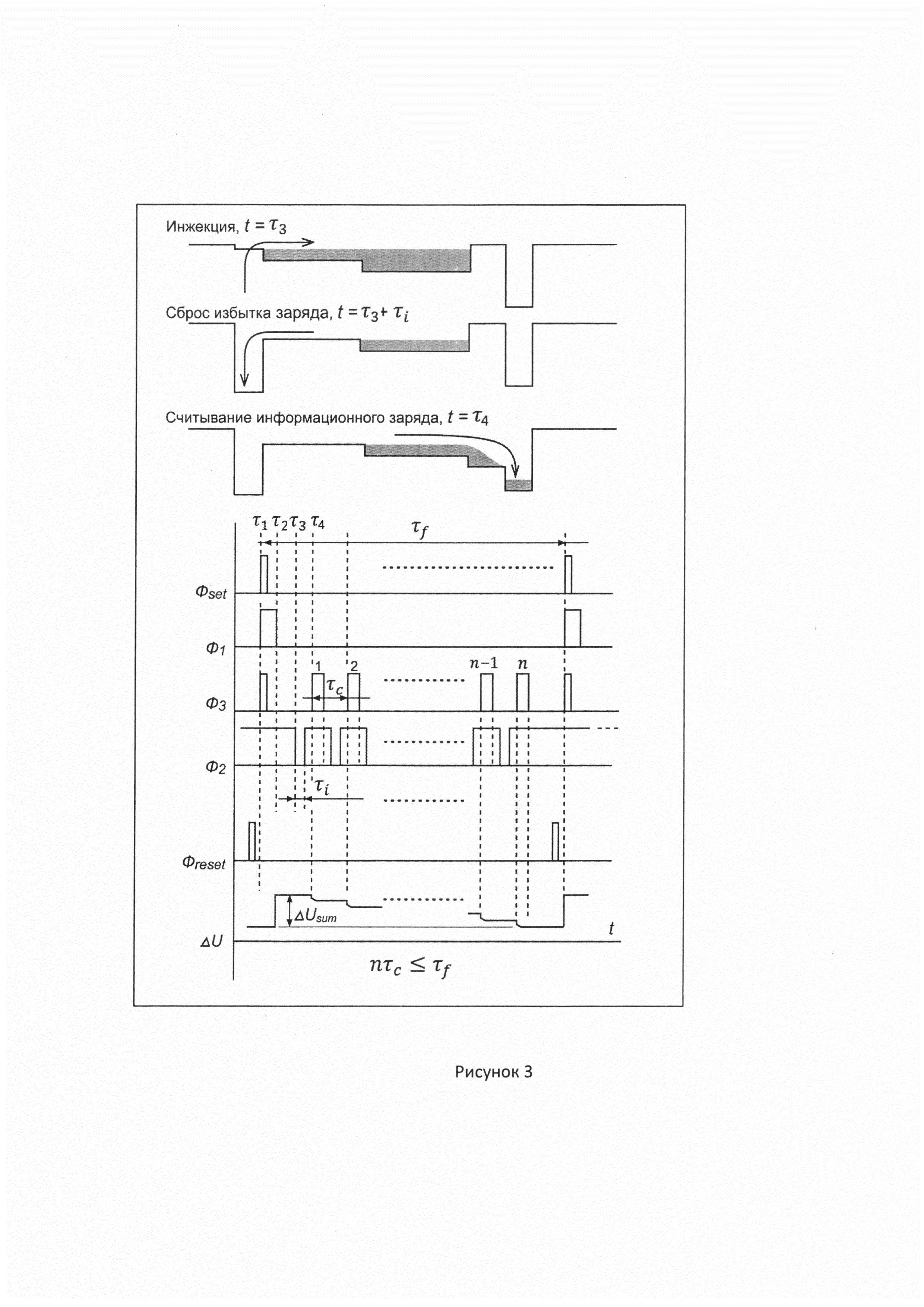 , после чего на транзистор выборки подается импульс напряжения Фreset, производящий считывание интегрированного информационного сигнала на вход внешнего предусилителя.