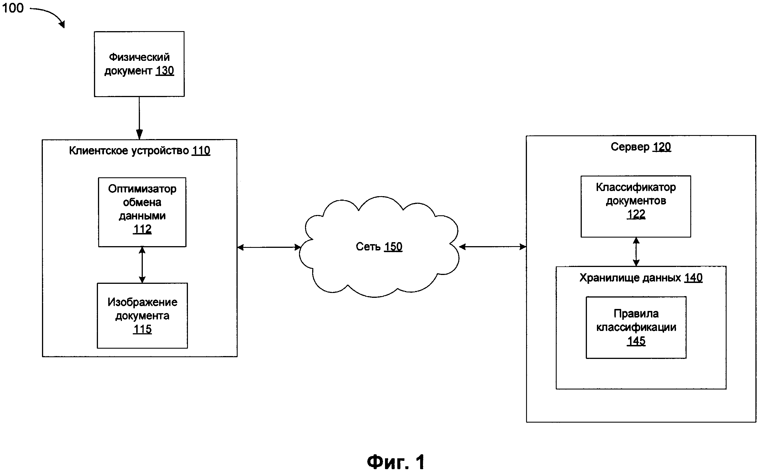 1. Способ оптимизации обмена данными между клиентским устройством и серверным устройством, включающий: получение обрабатывающим устройством, встроенным в клиентское устройство, исходного изображения физического документа; создание на основе исходного изображения уменьшенного файла, который значительно меньше исходного изображения по размеру и содержит данные, указывающие на тип документа; отправку на серверное устройство первого запроса на получение информации, относящейся к типу документа для физического документа, при этом первый запрос содержит уменьшенный файл; получение от серверного устройства информации о расположении, по меньшей мере, одной части исходного изображения, которая содержит, по меньшей мере, один элемент содержимого физического документа, при этом такая информация о расположении формируется на основе типа документа; исходя из информации о расположении, извлечение, по меньшей мере, одной части исходного изображения для создания, по меньшей мере, одной извлеченной части исходного изображения; отправку на серверное устройство второго запроса на, по меньшей мере, один элемент содержимого, при этом второй запрос содержит, по меньшей мере, одну извлеченную часть исходного изображения; при получении от серверного устройства, по меньшей мере, одного элемента содержимого - предоставление, по меньшей мере, одного элемента содержимого для отображения на клиентском устройстве. 2. Способ по п. 1, отличающийся тем, что информация о расположении содержит координаты ограничивающего прямоугольника для, по меньшей мере, одной части исходного изображения, содержащей, по меньшей мере, один элемент содержимого. 3. Способ по п. 2, дополнительно включающий: получение от серверного устройства типа документа для физического документа; определение на основе типа документа, по меньшей мере, одного элемента содержимого для документа; отправку на серверное устройство третьего запроса на координаты ограничивающего прямоугольника, по меньшей мере, одного элемента содержимого. 4. Способ по п. 1, отличающийся тем, что создание уменьшенного файла включает следующие операции: преобразование исходного изображения, которое может включать, по меньшей мере, одну из следующих операций: конвертацию цветного изображения в полутоновое, цветного изображения в черно-белое, операцию сжатия данных, операцию уменьшения разрешения изображения или операцию бинаризации. 5. Способ по п. 1, отличающийся тем, что создание уменьшенного файла включает выбор фрагмента исходного изображения в качестве уменьшенного файла. 6. Способ по п. 1, отличающийся тем, что, по меньшей мере, одна извлеченная часть исходного изображения имеет такое же разрешение, как исходное изображение. 7. Способ по п. 1, также включающий: предоставление, по меньшей мере, одного элемента содержимого, по меньшей мере, одному из приложений, выполняющихся на клиентском устройстве, или приложению, выполняющемуся на серверном устройстве. 8. Способ по п. 1, также включающий: сохранение, по меньшей мере, одного элемента содержимого в хранилище данных на клиентском устройстве. 9. Способ по п. 1, отличающийся тем, что исходное изображение содержит видеопоток из множества кадров изображений, и отличающийся тем, что информация о расположении включает информацию, позволяющую определить, по м