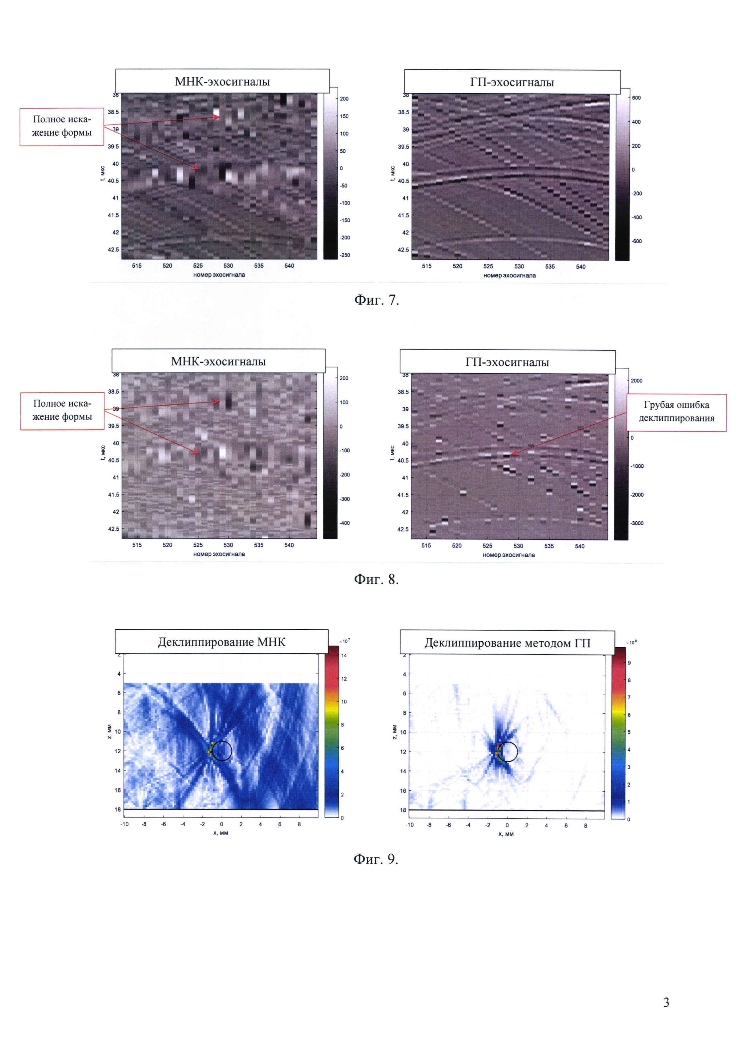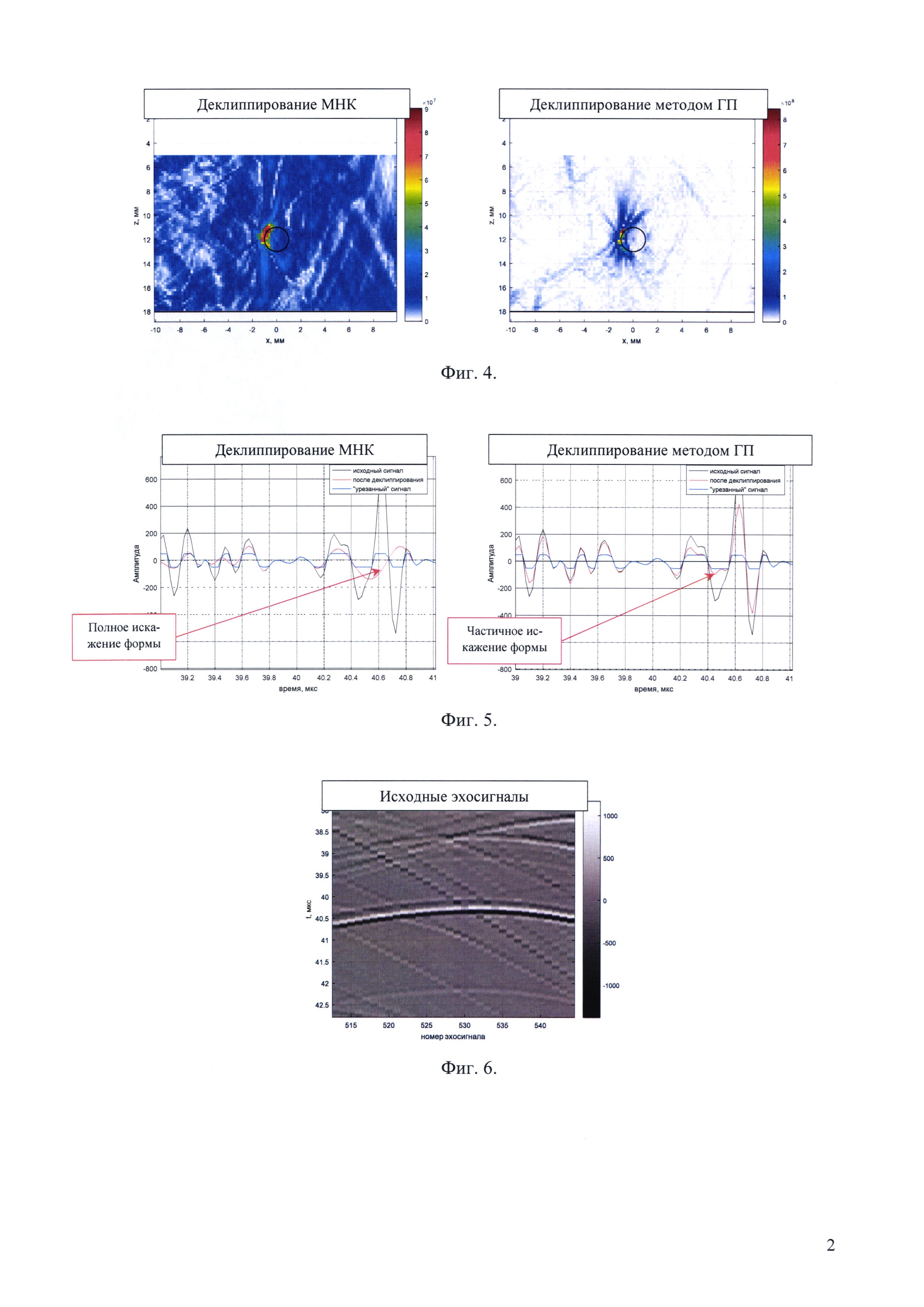 Использование: для ультразвукового контроля. Сущность изобретения заключается в том, что для увеличения динамического диапазона сигналов, измеряемых при проведении ультразвукового контроля, восстанавливают исходную форму сигнала, искаженную за счет ограничения его амплитуды по заданным положительному и/или отрицательному уровням (клиппирование), при этом исходная форма сигнала восстанавливается (деклиппируется) итерационным способом, при котором спектр эхосигнала предыдущей итерации ограничивается в заданном частотном диапазоне, выполняется обратное преобразование Фурье, в полученном сигнале его значения на временных интервалах, где сигнал не искажен, заменяются значениями клиппированного сигнала, а на временных интервалах, где сигнал клиппирован, значения сигнала по модулю, меньшие уровня клиппирования, заменяются значениями уровня отсечки, после чего выполняется следующая итерация. Технический результат: обеспечение возможности деклиппирования сигналов для уровня клиппирования менее 10% от максимальной амплитуды неискаженного сигнала. 14 ил.