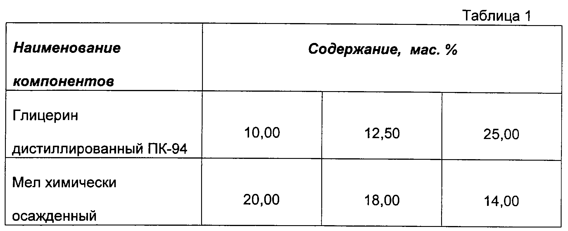 полиэтиленгликоль и ведут перемешивание до образования гомогенной массы, затем добавляют натрийкарбоксиметилцеллюлозу и двуокись титана. При герметично закрытом реакторе перемешивают массу до