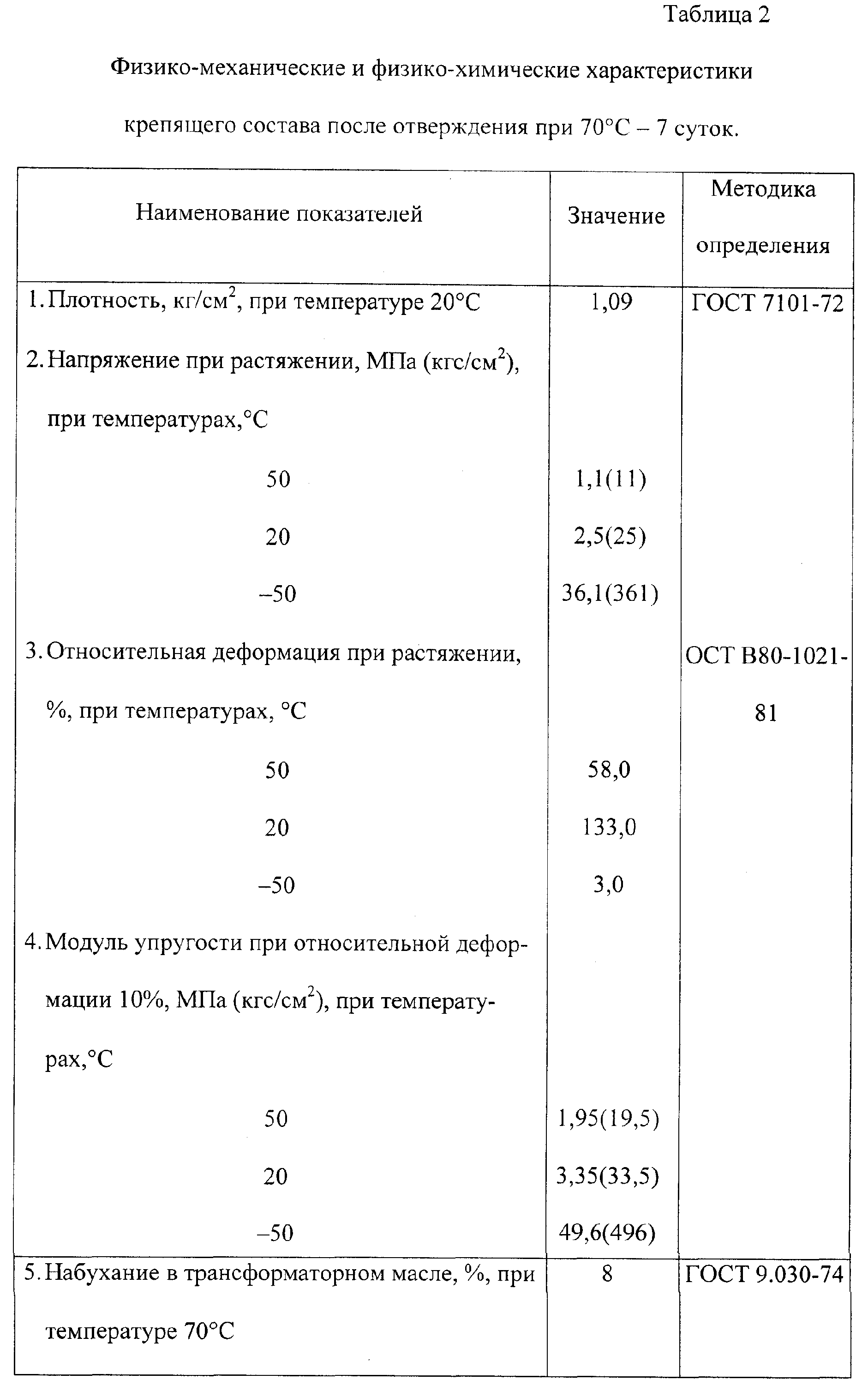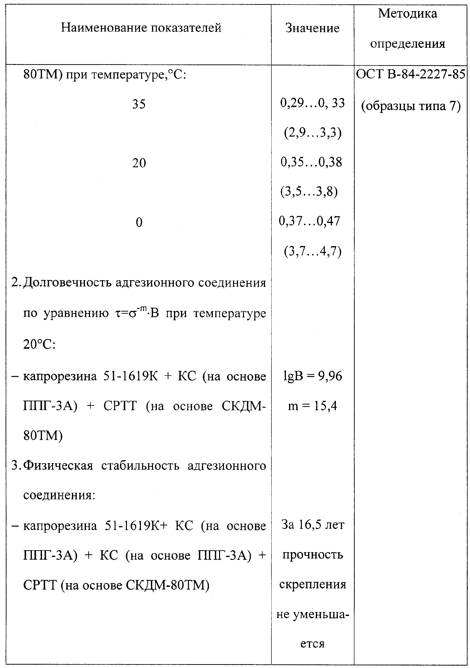 Изобретение относится к области разработки технологии изготовления прочноскрепленного с корпусом ракетного двигателя (РД) заряда смесевого ракетного твердого топлива (СРТТ). Среди большого количества ракетных зарядов из СРТТ важное место занимают заряды из высокоэнергетических СРТТ, которые используются в крупногабаритных ракетных двигателях. А в крупногабаритных РД заряды, как правило, являются прочноскрепленными с корпусом двигателя. Одним из вариантов смесевого ракетного твердого топлива для таких зарядов, наиболее полно выполняющим требования к таким РД, является топливо, связующее которого изготавливается на основе маслонаполненного полибутадиенового каучука СКДМ-80ТМ. В таком топливе содержится также перхлорат аммония, порошок алюминия, октоген, пластификаторы, отвердители, добавки, регулирующие скорость горения, и другие компоненты. Отверждение топлива проводится при температуре, обеспечивающей взаимодействие отвердителей с каучуком СКДМ-80ТМ и другими компонентами, но не выше 70°С, в течение нескольких суток. Изготовление зарядов из таких топлив проводится по способу, описанному в патенте на изобретение №2242451 по заявке №2003123488 с приоритетом от 28 июля 2003 года, взятому в качестве прототипа. Недостатками этого способа изготовления прочноскрепленного с корпусом ракетного двигателя заряда смесевого ракетного твердого топлива являются недостаточная для некоторых конструкций ракетных двигателей и условий эксплуатации прочность скрепления топлив, содержащих октоген, с корпусом РД при использовании указанного в прототипе крепящего состава, ограниченный ресурс химической совместимости СРТТ и крепящего состава и стабильности свойств в зоне скрепления, лимитирующих гарантийные сроки эксплуатации РДТТ. Технической задачей изобретения является разработка такого варианта технологического процесса изготовления прочноскрепленного с корпусом заряда СРТТ, который позволяет обеспечить высокую, не ниже прочности топлива, адгезионную прочность, улучшить химическую совместимость и стабильность свойств в зоне скрепления, получать требуемые длительные гарантийные сроки эксплуатации зарядов, а также повысить безопасность проведения работ за счет сведения до минимума содержания легколетучего растворителя в крепящем составе. Указанная цель была достигнута при изготовлении заряда СРТТ по способу, включающему подготовку компонентов, входящих в топливо, смешение минеральных и металлических порошкообразных компонентов (перхлората аммония, октогена, алюминия) со связующим на основе маслонаполненного полибутадиенового каучука марки СКДМ-80ТМ, дополнительную пластификацию трансформаторным маслом и нитрилом олеиновой кислоты, ввод отвердителей и других добавок, окончательное смешение топливной массы, нанесение на внутреннюю поверхность РД, представляющую собой теплозащитное покрытие корпуса, дублированного тканью, для скрепления с топливом крепящего состава и вулканизующей добавки, отличающемуся тем, что в качестве крепящего состава и вулканизующей добавки используются следующие рецептуры (мас.%): крепящий состав: - каучук полиэфируретановый с концевыми эпоксиуретановыми группами ППГ-3А - 30…36, связующее; - олигоэфирэпоксид марки Лапроксид 703 - 20…26, активный разбавитель; - смола эпоксидная ЭД-20 - 17…23, у
