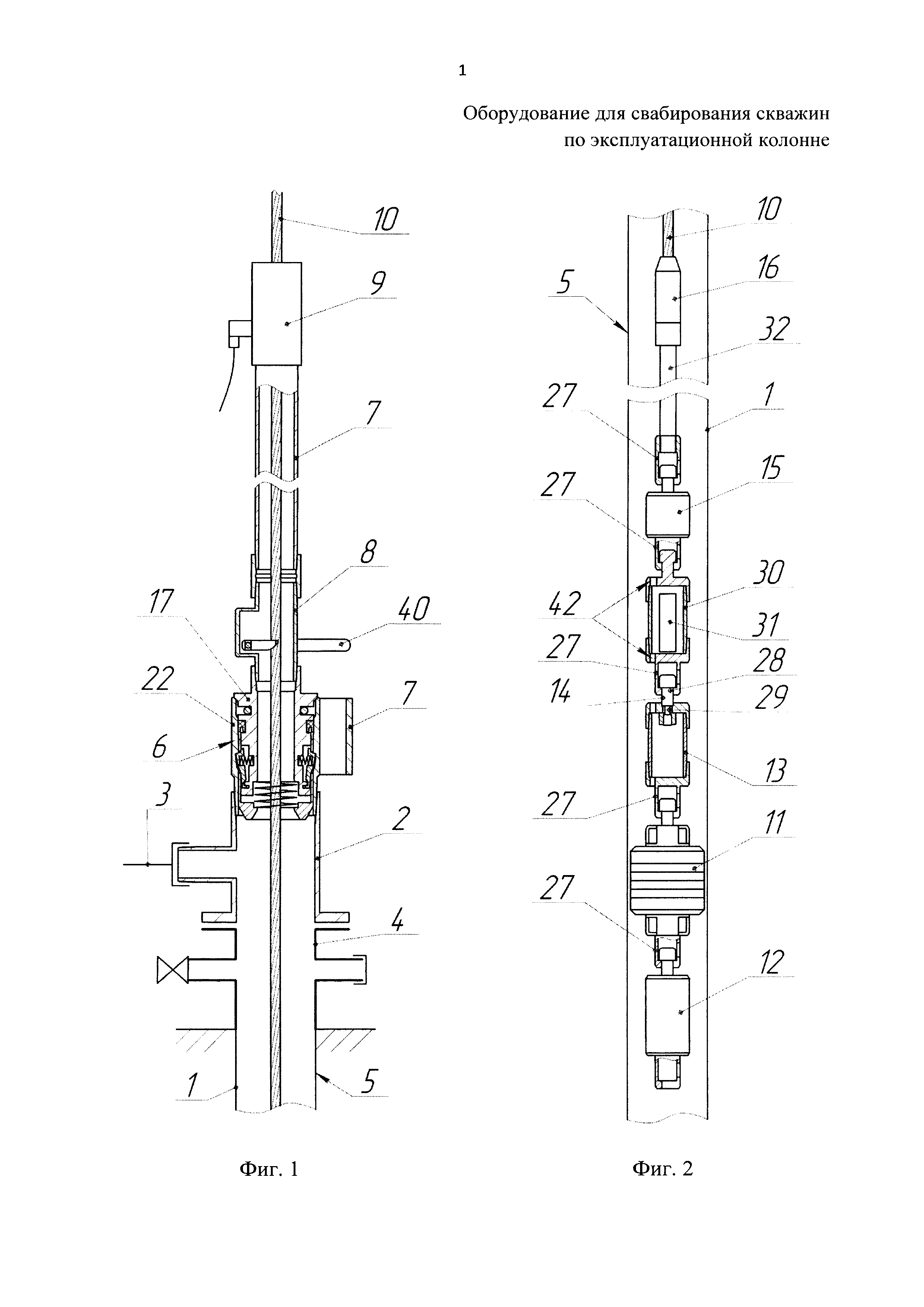 Изобретение относится к нефтедобывающей промышленности и может быть использовано для свабирования по эксплуатационной колонне скважин с вязкой продукцией, на которых исключена возможность газонефтепроявлений. Известно оборудование для свабирования скважин по колоннам насосно-компрессорных труб (НКТ) (Валовский В.М., Валовский К.В. Техника и технология свабирования скважин. - М: ОАО «ВНИИОЭНГ», 2003. - 396 с.), состоящее из скважинного оборудования, предназначенного для подъема жидкости из скважины и включающего сваб, груз (грузовую штангу) и узел крепления тягового органа (канатный наконечник), и устьевого оборудования, предназначенного для герметизации устья и включающего устьевую арматуру, превентор, спайдер, лубрикатор, датчик входа сваба, устройство для герметизации тягового органа (сальниковый очиститель каната), размещенных на передвижном агрегате с лебедкой, обеспечивающем транспортирование к месту применения, монтаж и демонтаж устьевого оборудования, спуск в скважину и извлечение из него скважинного оборудования, сообщение скважинному оборудованию возвратно-поступательного движения с заданными параметрами при подъеме жидкости, управление процессом свабирования и устьевым оборудованием, приведение оборудования в транспортное положение с возможностью размещения скважинного оборудования в лубрикаторе, который укладывается и закрепляется на сложенной мачте агрегата, причем между лубрикатором и сальниковым очистителем каната может быть установлен автоматический узел, при взаимодействии с элементами которого скважинного оборудования происходит отсоединение сальникового очистителя каната от лубрикатора, исключающее обрыв каната в непредвиденных ситуациях. Недостатком является то, что при свабировании скважин с высоковязкой продукцией по колонне НКТ вследствие высоких сил гидродинамического трения между скважинным оборудованием и стенками колонны НКТ, обусловленных малой площадью ее проходного сечения, затрудняется или делается невозможным спуск сваба в скважину, что снижает эффективность процесса свабирования или делает невозможным его применение. Наиболее близким по технической сущности и достигаемому результату является оборудование для свабирования скважин по эксплуатационной колонне (Валовский К.В., Басос Г.Ю. и др. Применение плашечных свабов для подъема жидкости из скважин по эксплуатационным колоннам // Нефтяное хозяйство. -2005. - №7 - С. 56-60), включающее тройник с выкидной линией, соединенный снизу с основанием устья скважины, а сверху оснащенный узлом соединения с лубрикатором, снабженным датчиком входа и сальниковым очистителем каната, на котором спускается скважинное оборудование, состоящее из сваба, оснащенного снизу грузом, а сверху - ловильным патрубком и предохранительным разрывным элементом, толкателя и канатного наконечника для соединения с канатом, при этом в транспортном положении скважинное оборудование выполнено с возможностью размещения в лубрикаторе, закрепляемом на мачте агрегата для свабирования скважин. Оборудование предназначено для применения на скважинах, где исключена возможность газонефтепроявления (месторождение на поздней стадии разработки, аномально низкие пластовые давления на нефтяных месторождениях с незначительным газовым фактором и др.), и сод