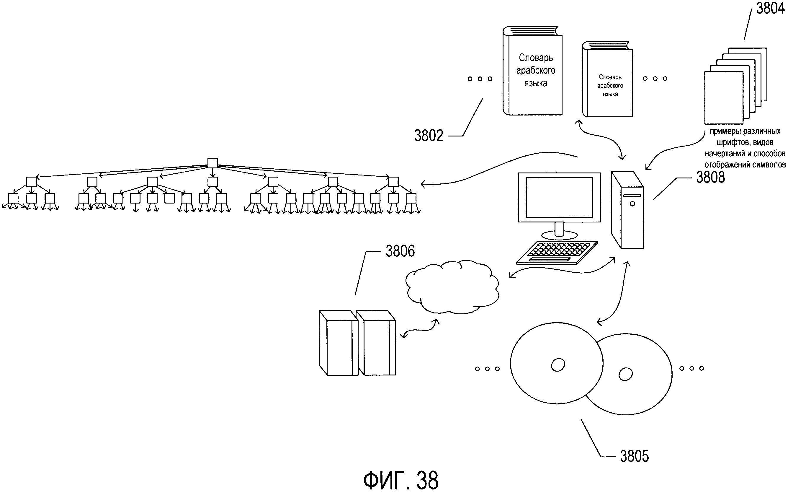 Изобретение относится к автоматической обработке изображений отсканированных документов. Технический результат заключается в повышении точности преобразования печатных документов, содержащих текст на арабском языке и текст на других языках. Устройство, которое преобразует источники текста на естественных языках в базу данных морфем и слов естественного языка с возможностью поиска, содержит: один или более процессоров; одно или несколько запоминающих устройств; а также иерархически упорядоченную структуру данных, сохраненную в одном или нескольких запоминающих устройствах, каждое вхождение в которой соответствует морфеме, слову или фразе, представленной в виде последовательности непараметризованных символов, которые воспроизводят характерные для данного языка элементы, а также программу, которая обеспечивает извлечение морфем и слов из источников текста на одном из естественных языков для каждой извлеченной морфемы или слова, преобразование и сохранение непараметризованных символов в одном или нескольких запоминающих устройствах, и сохранение последовательности непараметризованных символов в иерархически упорядоченной структуре данных. 2 н. и 18 з.п. ф-лы, 72 ил.