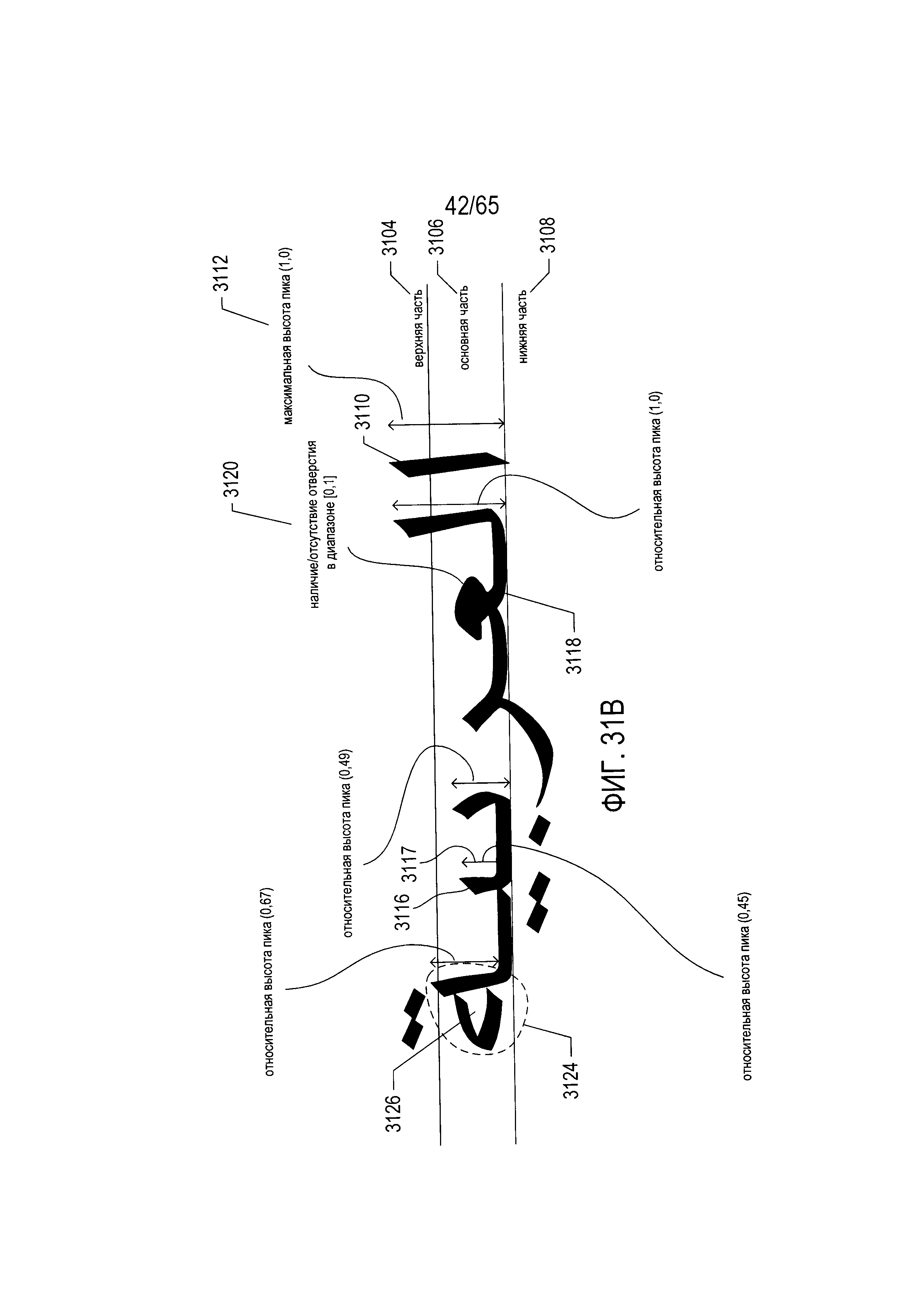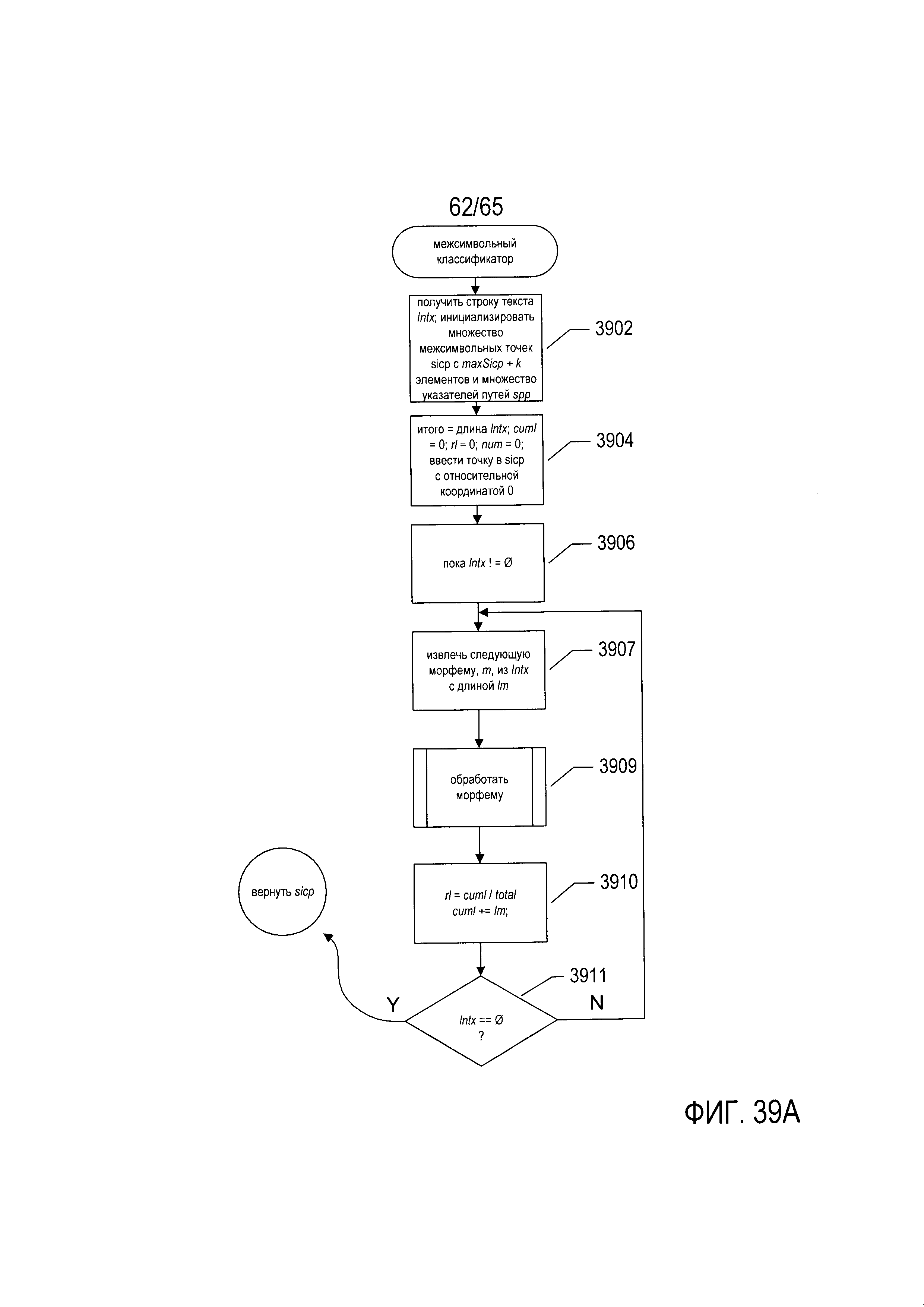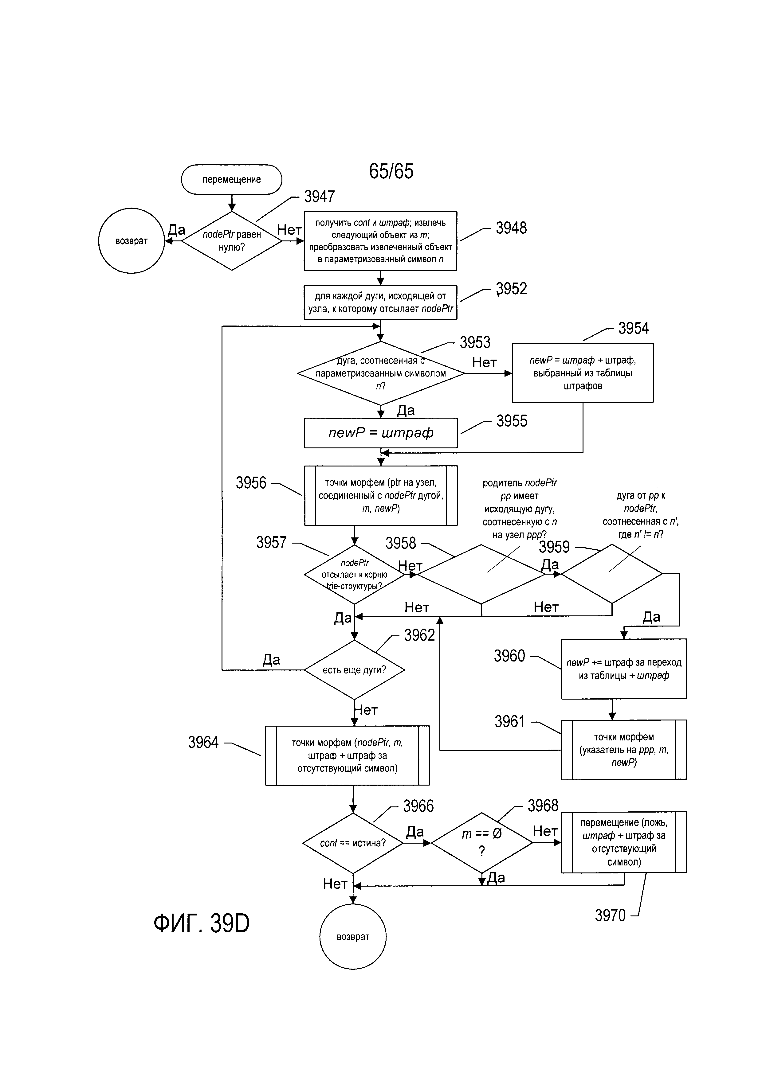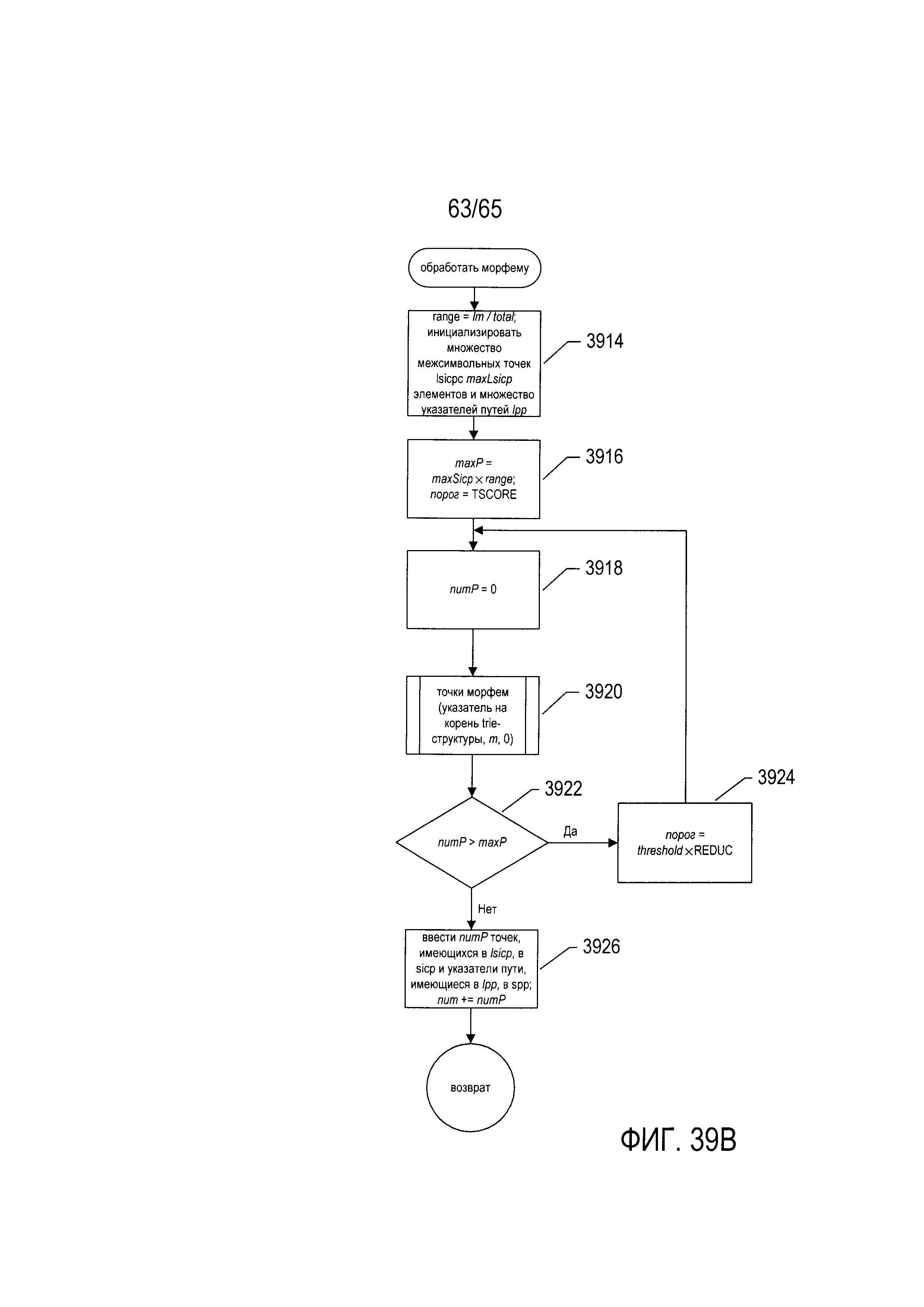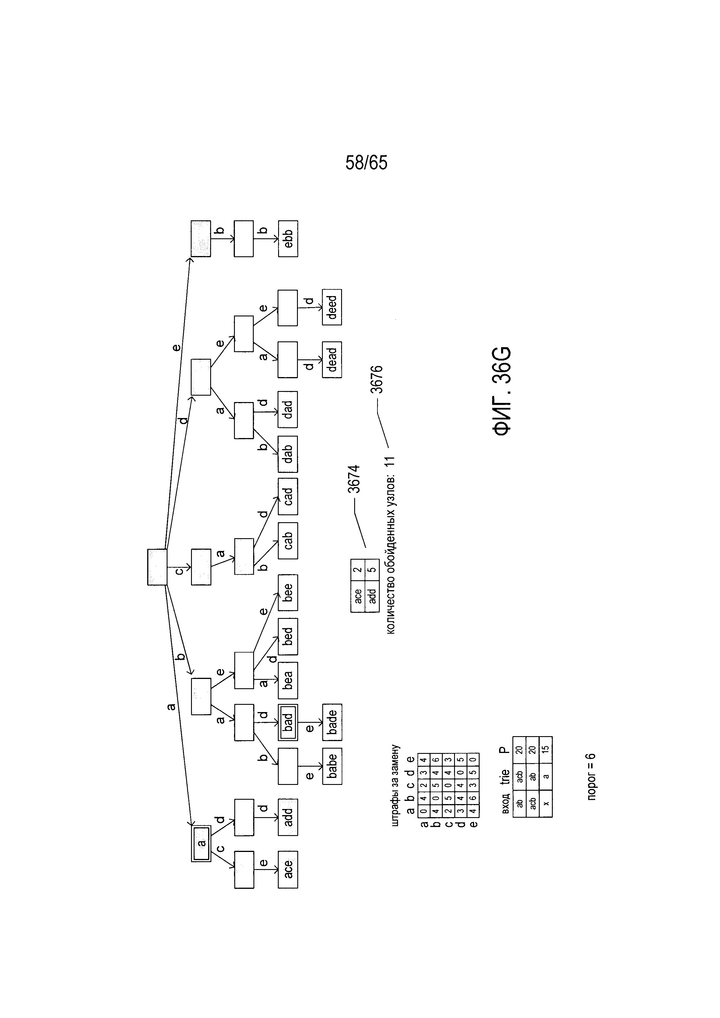 (2922). Постоянная Κ представляет собой процесс отсечения всех возможных путей обхода, осуществляемый в традиционных устройствах OCR, с целью выделения только путей обхода с достаточной вероятностью высокого значения показателей качества. Таким образом, количество вариантов разложения строк текста на символы увеличивается экспоненциально вместе с количеством потенциальных точек разделения символов, идентифицированных в строке текста. Очевидно, что минимизация количества потенциальных точек разделения может существенно снизить вычислительную нагрузку способа OCR и позволит эффективно выполнять задачу OCR, которая в противном случае была бы трудноосуществимой с вычислительной точки зрения. Тем не менее, одно лишь уменьшение количества потенциальных точек разделения символов не решает проблему вычислительной сложности. Напротив, следует не только сократить количество потенциальных точек разделения, но и обеспечить, чтобы в оставшееся после сокращения множество потенциальных точек разделения символов входили потенциальные точки разделения с наиболее высокой вероятностью представления фактических точек разделения символов. В противном случае вычислительная сложность будет снижаться за счет снижения вероятности корректной конвертации изображения текста в соответствующую кодировку текста. Кроме того, устройство и способ настоящего изобретения позволяют избегать образования необоснованных и непродуктивных путей обхода, как описано ниже.