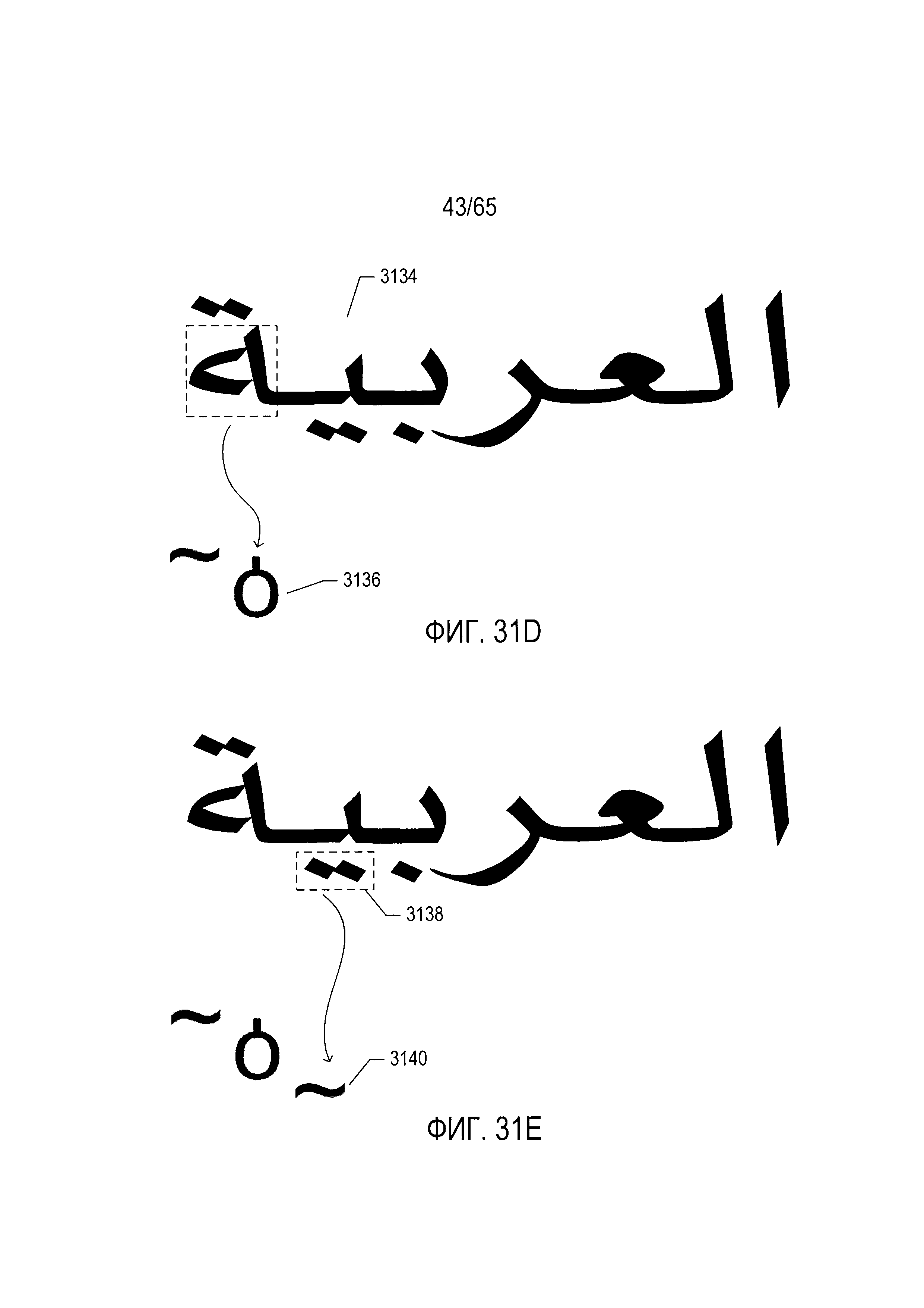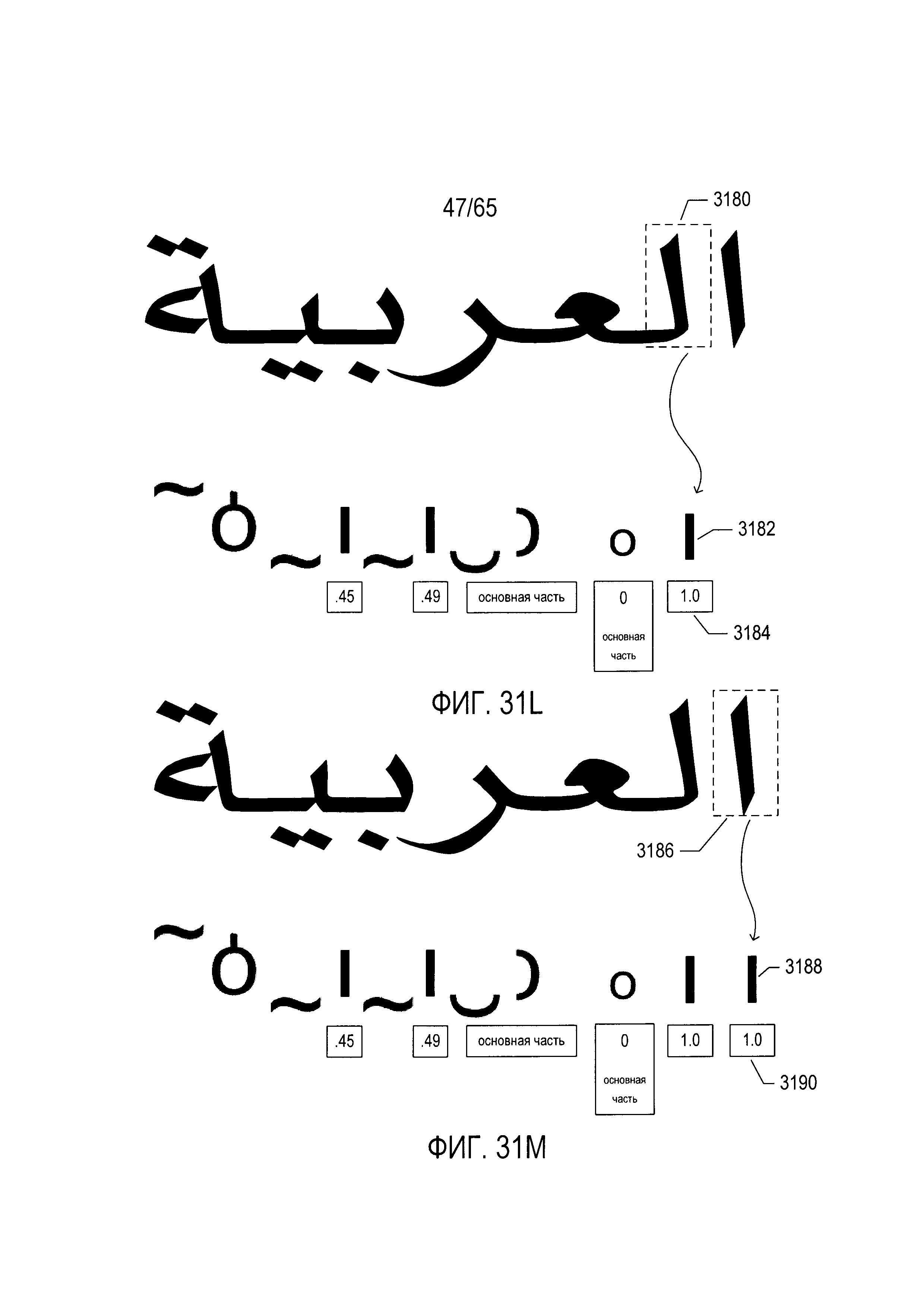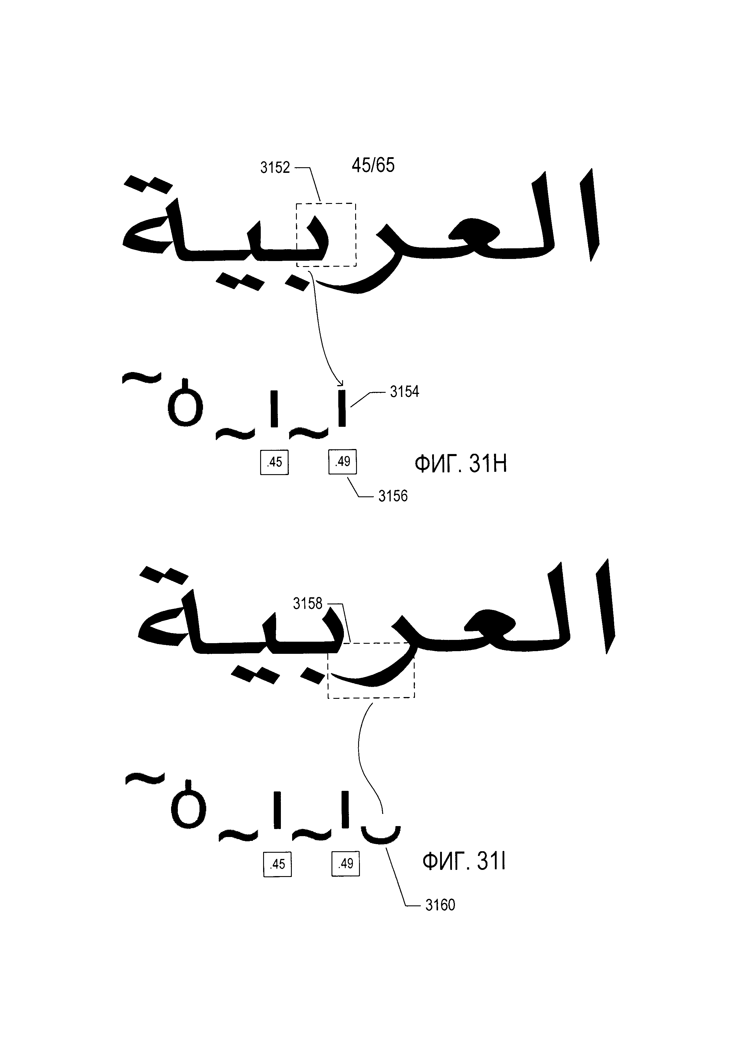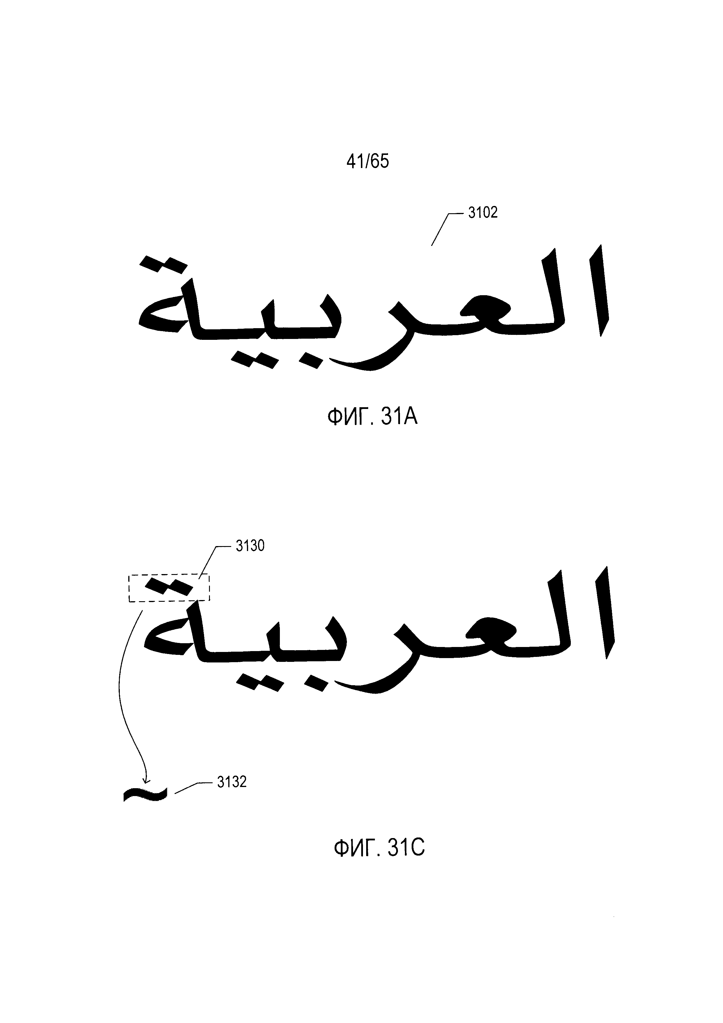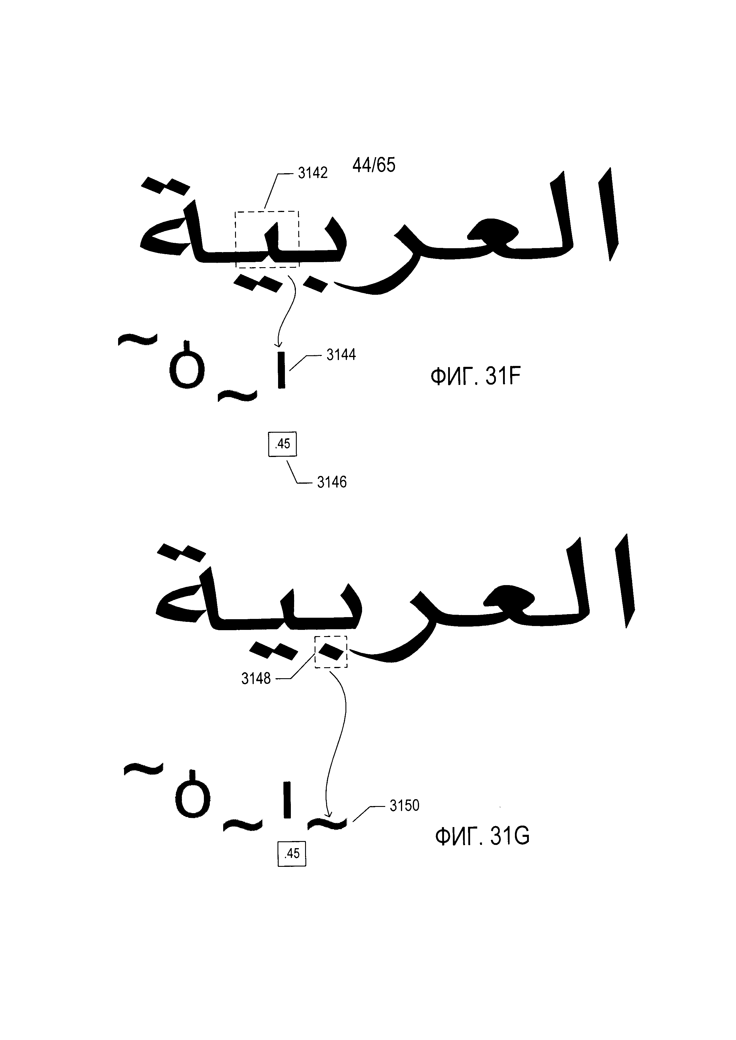 ОБЛАСТЬ ТЕХНИКИ Настоящая заявка относится к автоматической обработке изображений отсканированных документов и других изображений, содержащих текст, а именно к способам и устройствам преобразования изображений документов, содержащих текст на арабском языке, а также текст на других языках, в которых при образовании слов алфавитные символы соединяются вместе в слитную последовательность, в электронные документы. УРОВЕНЬ ТЕХНИКИ Уже на протяжении долгого времени для записи и хранения информации используются печатные, машинописные и рукописные документы. Несмотря на современную тенденцию к отказу от бумажного делопроизводства печатные документы продолжают широко использоваться в коммерческих организациях, учреждениях и домах. С развитием современных компьютерных систем создание, хранение, поиск и передача документов в электронном виде превратилась, наряду с непрекращающимся применением печатных документов, в чрезвычайно эффективный и экономически выгодный альтернативный способ записи и хранения информации. Ввиду многочисленных преимуществ современных средств хранения и передачи информации на основе электронных документов с точки зрения как эффективности, так и экономической выгоды, происходит регулярное преобразование печатных документов в электронные с использованием различных способов и устройств, в том числе преобразование печатных документов в цифровые изображения отсканированных документов с использованием электронных оптико-механических сканирующих устройств, цифровых камер и других устройств и систем с последующей автоматической обработкой изображений отсканированных документов для получения электронных документов, закодированных в соответствии с одним или более всевозможных стандартов кодирования электронных документов. В качестве одного примера, в настоящее время есть возможность использовать настольный сканер и современные программы оптического распознавания символов (OCR), которые, выполняясь на персональном компьютере, позволяют преобразовывать печатный документ в соответствующий электронный документ, который можно просматривать и редактировать с помощью программы обработки текстов. Хотя на текущем этапе своего развития современные программы OCR позволяют автоматически преобразовывать в электронные документы сложные печатные документы, содержащие рисунки, рамки, границы строк и другие нетекстовые элементы, а также текстовые символы множества распространенных алфавитных языков, остаются нерешенными проблемы преобразования печатных документов, содержащих текст на арабском языке и текст на других языках, в которых при образовании слов и их фрагментов символы соединяются в слитную последовательность. РАСКРЫТИЕ ИЗОБРЕТЕНИЯ Настоящая заявка относится к способам и устройствам преобразования изображений документов, содержащих текст на арабском языке и текст на других языках, в которых символы, соединяясь вместе, образуют слитные слова и фрагменты слов, в соответствующие электронные документы. В одном варианте реализации в рамках способа и устройства обработки изображений документов, к которым относится настоящая заявка, применяются многочисленные методы и средства, позволяющие эффективно осуществлять преобразование изображений документов в электронные докум