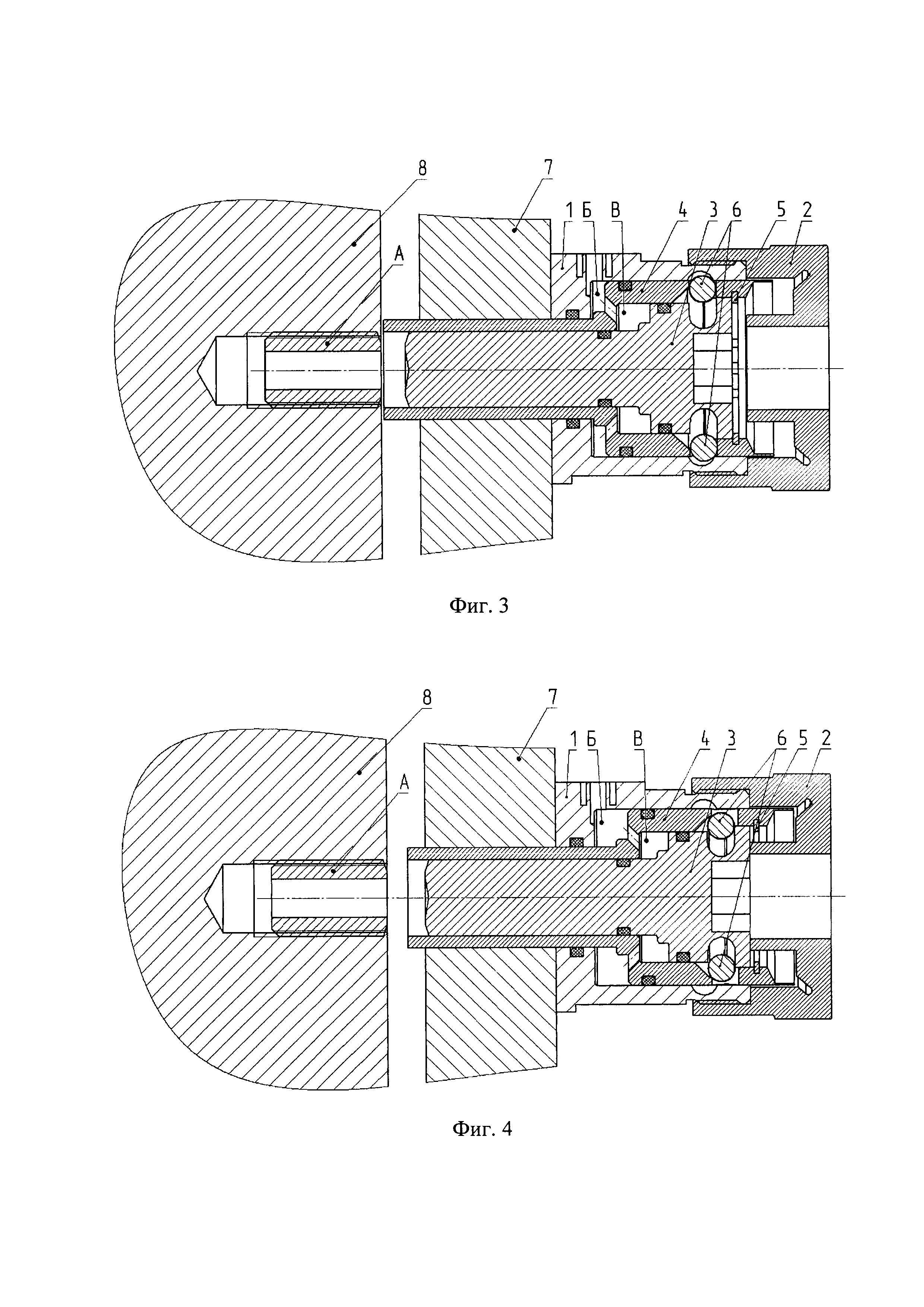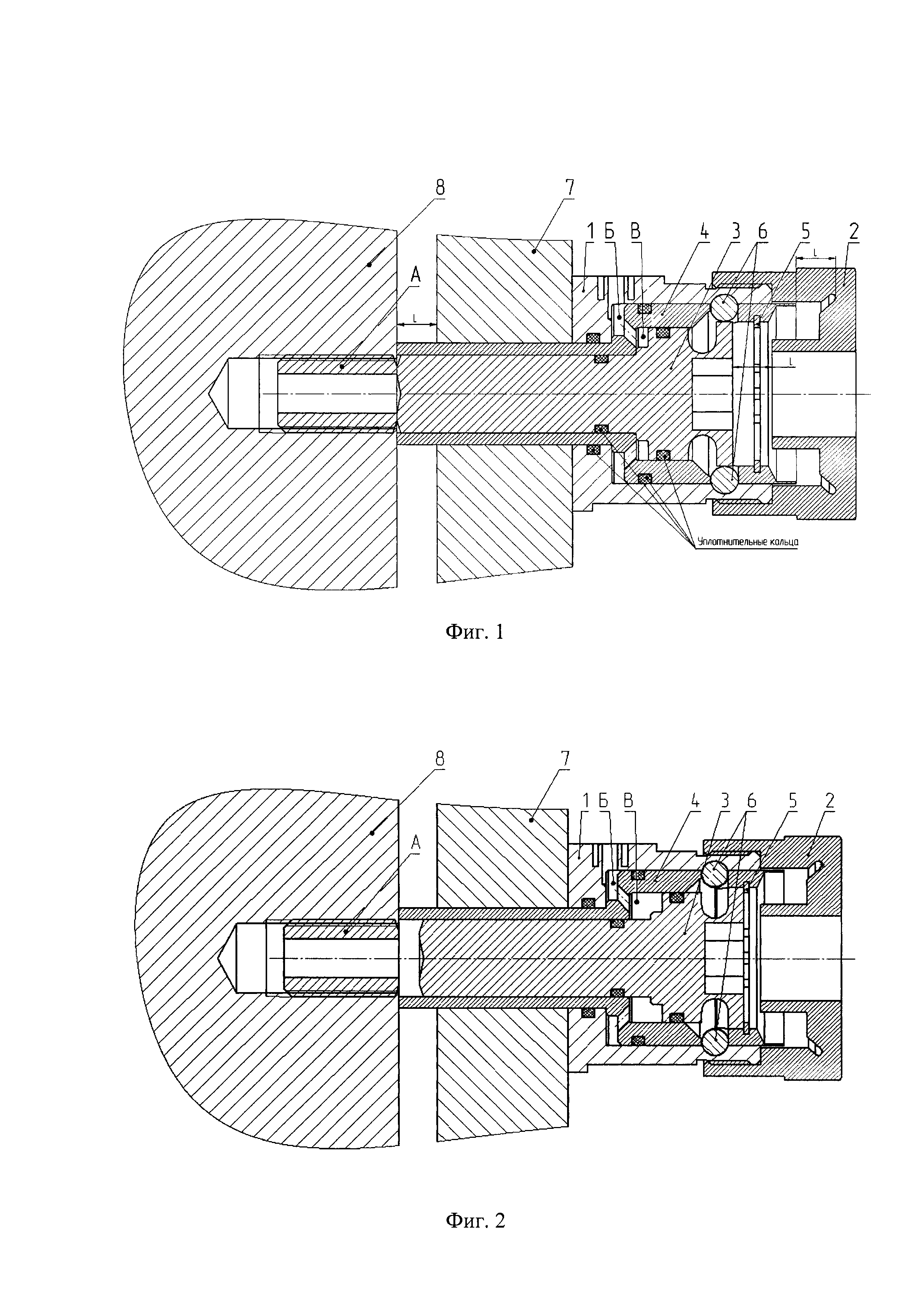 Изобретение относится к ракетной технике и может найти применение в конструкциях систем разделения элементов летательных аппаратов (ЛА). Известны разъемные соединения, содержащие корпус и пирозаряд: 1. Пат. 3277766 US, МПК F16B 31/005. Explosively releasable bolt / Francis В. Burkdoll. - Заявл. 04.08.1964; опубл. 11.10.1966. 2. Пат. 3352189 US, МПК F42B 3/006. Explosive bolt / Karl R. Brown. - Заявл. 29.04.1966; опубл. 14.11.1967. Их недостатком являются большие ударные нагрузки при срабатывании: импульс пирозаряда направлен в сторону отделяемого элемента - это может привести к его повреждению. Известны фиксатор разделяемых объектов летательных аппаратов [3. Пат. 2641532 RU, МПК6 F42B 15/36, B64G 1/64, F16B 5/02. Фиксатор разделяемых объектов летательных аппаратов / Ивашин А.Ф., Михайлов Ю.И., Леонтьев Г.А., Голочанов В.А. - Заявл. 06.04.2016; опубл. 18.01.2018, Бюл. №29.]; узел стыковки разделяемых объектов летательных аппаратов [4. Пат. 2628282 RU, МПК6 B64G 1/00. Узел стыковки разделяемых объектов летательных аппаратов / Горбачёв А.Д., Михайлов Ю.И., Ивашин А.Ф. - Заявл. 25.02.2016; опубл. 15.08.2017, Бюл. №23.]. Их недостатки аналогичны устройствам [1., 2.]. После срабатывания от устройств остаются отверстия в корпусе, которые нарушают аэродинамику ЛА. Наиболее близким по технической сущности к предлагаемому изобретению является разъемное соединение [5. Пат.2040710 RU, МПК6 F16B 5/02, F16H 48/12. Разъемное соединение / Беляков В.В. - Заявл. 23.10.1992; опубл. 25.07.1995.]. Его недостатком является непосредственный контакт отделяемой части и корпуса-носителя -невозможность удержания отделяемой части на расстоянии от корпуса-носителя. После срабатывания от устройства остается отверстие, что нарушает аэродинамику ЛА. Целью предлагаемого изобретения является создание надежного и простого разъемного соединения, способного удерживать отделяемый элемент на расстоянии от корпуса-носителя и обеспечивающего их свободное разделение и втягивание после расфиксации выступающих частей соединения для улучшения аэродинамики ЛА и для предотвращения препятствий в работе других механизмов ЛА. Заявляемое разъемное соединение с потайной головкой для разделения элементов ЛА состоит из корпуса, донышка с канавкой, стопорного кольца, подшипников, уплотнительных колец и пироболта. Пироболт представляет собой крепежный болт с возможностью быстрого и надежного автоматического рассоединения элементов посредством разрывного стержня, за счет высокого давления, создаваемого срабатыванием пиропатрона - пиротехнического устройства с электрическим запалом. Пироболт в заявляемом разъемном соединении включает поршень и упор. Поршень выполнен с ослабленным звеном, образованным кольцевой проточкой по наружной поверхности поршня. Отрывная резьбовая часть поршня начинается от кольцевой проточки. Упор фиксирует отделяемый элемент по отрывной резьбовой части поршня на расстоянии от корпуса-носителя. Поршень выполнен с возможностью перемещения внутри упора. Упор и поршень имеют возможность втягиваться в корпус-носитель ЛА и фиксироваться в нем после отделения отделяемого элемента. Потайной головкой в заявляемом разъемном соединении являются упор и поршень без отрывной резьбовой части. Изобретение поясняется чертежами. На фиг. 1 изображено начальное положение, когда отделяемый элемент зафиксирован при помощи разъемного соединения с потайной головкой. Разъемное соединение с потайной головкой состоит из корпу
