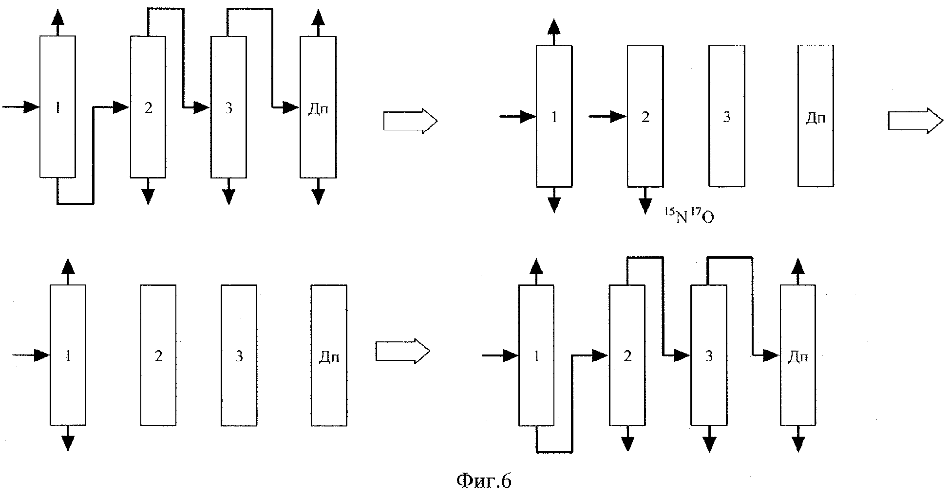 колонн не изменяют до очередного достижения требуемого накопления молекулярного компонента15N17O в объеме второй колонны, далее все операции повторяют в той же