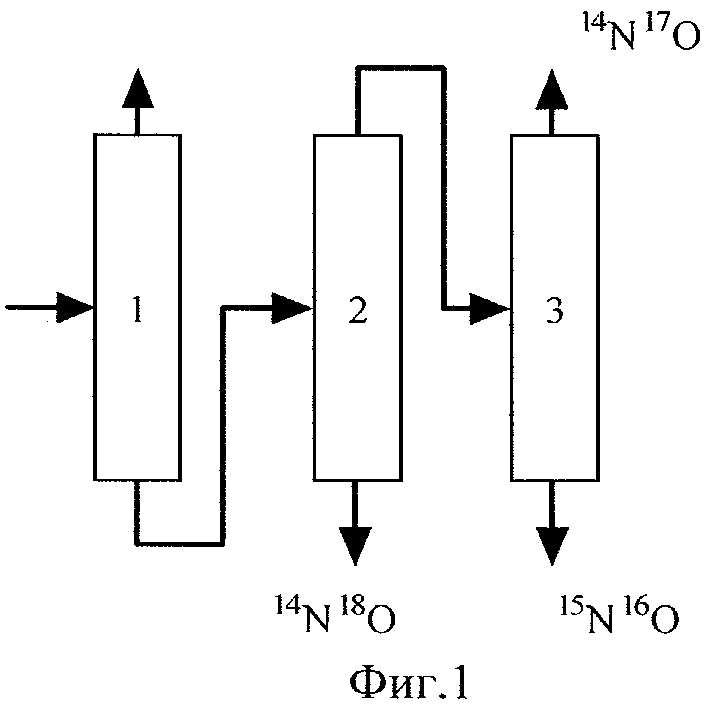 1. Способ одновременного обогащения оксида азота (II) изотопами18О,17О и15N, включающий заполнение низкотемпературных разделительных дистилляционных колонн оксидом азота (II), создание в колоннах противоточных жидкостного и газового циркуляционных