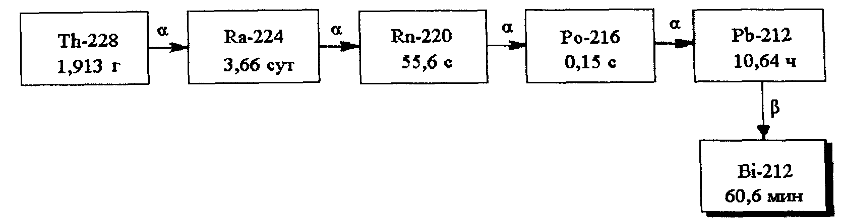 Область техники Изобретение относится к реакторной технологии получения радионуклидов для ядерной медицины. При терапии онкологических заболеваний все более широкое применение находят α-излучающие радионуклиды. Это связано с большой начальной энергией (5-8 МэВ) и коротким пробегом (десятки микрон) α-частиц в биологических тканях, а также высоким уровнем энерговыделения в области локализации распадающихся нуклидов. Носители α-излучающих радионуклидов (монокланальные антитела, пептиды) с высокой специфичностью позволяют доставлять их точно в опухолевый узел или метастатический очаг. Благодаря малым пробегам α-частиц возможно селективное воздействие излучения на патологические объекты с минимальной лучевой нагрузкой на окружающие здоровые ткани. Настоящее изобретение может быть использовано для создания генераторов α-излучателей торий-228/свинец-212 (228Th/212Pb) и свинец-212/висмут-212 (212Pb/212Bi), конечный элемент цепочки распадов которых - радионуклид212Bi, непосредственно используется в составе медицинского препарата. Таким образом, ключевое значение приобретает производство начального элемента цепочки - радионуклида228Th. Предшествующий уровень техники Одним из наиболее перспективных направлений в ядерной медицине является точечная радиоиммунотерапия с использованием α·-излучателей. Применение короткоживущих α-излучающих радионуклидов для терапии онкологических заболеваний представляет интерес с радиобиологической точки зрения поскольку является наиболее эффективным способом летального поражения опухолевых клеток благодаря короткому пробегу α-частиц в ткани и высокой ионизирующей способности. В настоящее время ведется интенсивный поиск α-излучателей, обладающих приемлемыми ядерно-физическими свойствами. Радионуклид212Bi, образующийся при распаде228Th, считается одним из наиболее перспективных для использования в терапии онкологических заболеваний. Период полураспада212Bi≈60,6 мин, средняя энергия α-частиц 7,8 МэВ. При распаде212Bi образуются радионуклиды208Tl и212Ро, которые ведут к стабильному нуклиду свинца208Pb. Линейная передача энергии (ЛПЭ) составляет ~80 кэВ/мкм, а пробег α-частиц в биологической ткани менее 100 мкм, что соответствует всего лишь нескольким диаметрам клетки. Висмут-212 является типичным генераторным радионуклидом и находит применение в радиоиммунотерапии, главным образом, в виде меченных им моноклональных антител и других молекулярных носителей. Начальным элементом цепочки распада, приводящей к212Bi, является радионуклид228Th с периодом полураспада Т1/2 1,913 года. [В.А.Халкин и др., «Радионуклиды для радиотерапии» // Радиохимия, 1997, т.39, №6, стр.481-490]. Для получения212Bi возможно использование двух генераторных систем228Th/224Ra и224Ra/212Bi. В первом из них224Ra отделяется от228Th за счет анионообменного разделения этих радионуклидов из раствора азотной кислоты. Во втором генераторе из224Ra выделяют212Bi с использованием катионообменных смол и минеральных кислот [В.М. Савинов, В.Б. Павлович, А.А. Котовский и др. «Контроль технологических процессов при разработке медицинских генераторов Ac-225-Bi-213 и Ra-224-Bi-212 альфа- и гамма-спектрометрическими методами» //Ядерная энергетика, №3,2003, стр.116-126]. Поскольку212Bi является дочерним продуктом распада радионуклида228Th, то при производстве медицинского радионуклида212Bi определяющее значение приобрета