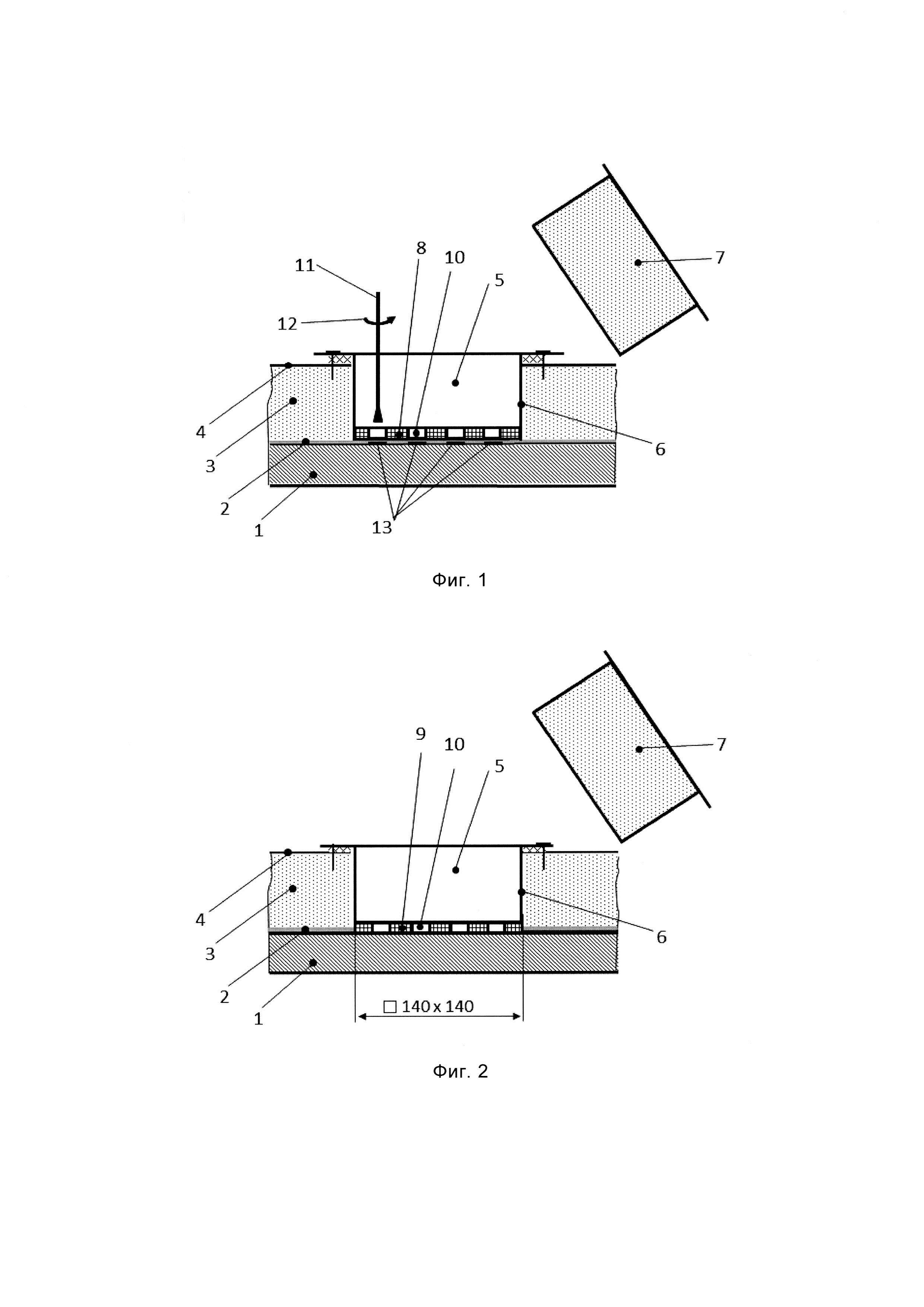 Изобретение относится к нефтегазоперерабатывающей, химической и другим отраслям промышленности, использующим теплоизолированные емкостное оборудование, например, сепараторы, реакторные колонны и трубопроводы, проходящие регулярную техническую диагностику. Известен способ определения величины остаточного коррозионного ресурса оборудования и трубопроводов, при реализации которого выбирают несколько контрольных точек на поверхности объекта, проводят первичное и вторичное измерения в контрольных точках, которые разделяют некоторым промежутком времени (сутки, недели, месяцы), вычисляют скорость коррозии путем деления разницы величин результатов измерения толщины стенки при первичном и вторичном измерениях на период времени между измерениями, а остаточный коррозионный ресурс определяют путем деления последней измеренной остаточной толщины стенки на скорость коррозии (см. ИНСТРУКЦИЯ по определению скорости коррозии металла стенок корпусов сосудов и трубопроводов на предприятиях Миннефтехимпрома СССР, ВНИКТИнефтехимоборудования, Волгоград - 1983). Недостатком известного способа является большая погрешность определения остаточного коррозионного ресурса, соизмеримая с фактическим коррозионным ресурсом, и невозможность проведения измерений на теплоизолированных оборудовании и трубопроводах, что может привести к принятию необоснованных решений, связанных с большими материальными издержками. Известен способ определения величины остаточного коррозионного ресурса оборудования и трубопроводов при осуществлении которого выбирают несколько ограниченных по площади контрольных участков поверхности, подготавливают на контрольных участках группу контрольных точек, расстояние между контрольными точками принимают сравнимыми с размерами контактной поверхности переносного датчика (преобразователя) ультразвукового контроля (УЗК), проводят первичные и вторичные измерения в подготовленных контрольных точках. Путем статистической обработки результатов измерений, определяют параметры надежности остаточного коррозионного ресурса: доверительный интервал и доверительную вероятность. При поведении диагностики теплоизолированных объектов для получения доступа к поверхности необходимо демонтировать теплоизоляцию частично или полностью с последующим ее восстановлением, что требует значительных временных и материальных затрат (см. РД 09-244-98 Инструкция по проведению диагностирования технического состояния сосудов, трубопроводов и компрессоров промышленных аммиачных холодильных установок). Недостатком известного способа являются высокие затраты времени и материалов при проведения коррозионных измерений на теплоизолированных оборудовании и трубопроводах. Известен способ (см. РД 03-410-01 Инструкция по проведению комплексного технического освидетельствования изотермических резервуаров сжиженных газов), принятый в качестве прототипа, при реализации которого обустраивают окна-люки в теплоизоляции, обеспечивающие доступ к поверхности, при этом на поверхности, ограниченной окном-люком, проводят измерения толщины стенки переносными датчиками УЗК в контрольных точках поверхности объекта. Недостатком данного способа является низкая надежность определения скорости коррозии и остаточного коррозионног