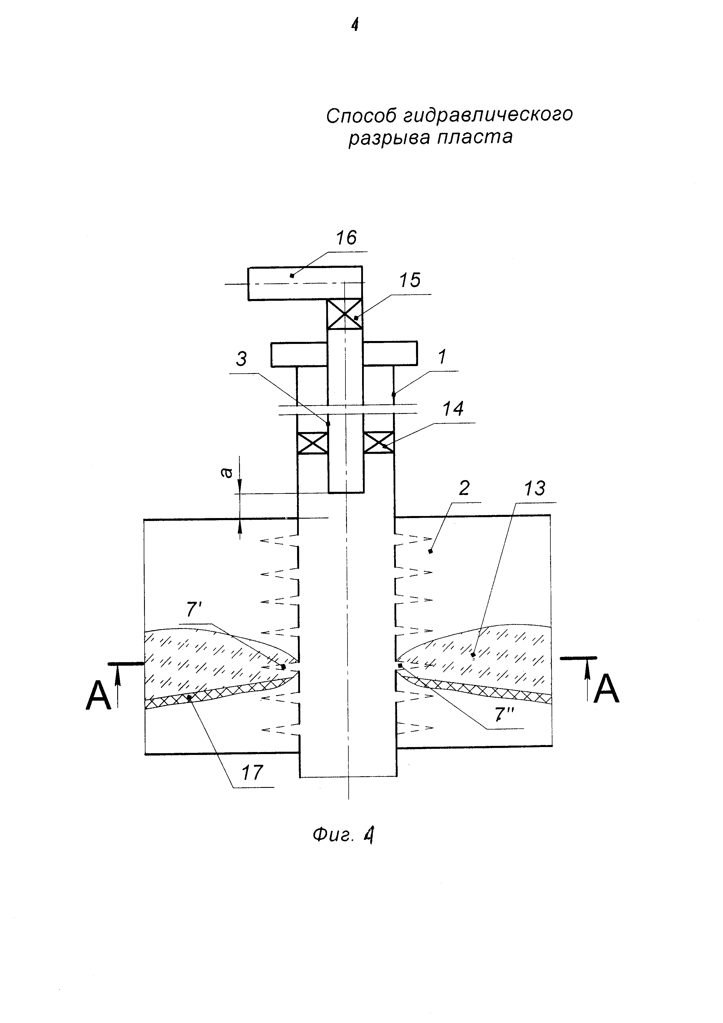 Способ гидравлического разрыва пласта - ГРП, включающий спуск колонны труб в скважину, закачку гелированной жидкости по колонне труб в интервал продуктивного пласта с образованием трещины, крепление трещины закачкой гелированной жидкости с проппантом, покрытым резиновой оболочкой, отличающийся тем, что дополнительно спускают перфоратор на колонне труб в добывающую скважину до подошвы пласта, выполняют пары перфорационных отверстий по периметру скважины снизу вверх со смещением на угол при выполнении каждой пары перфорационных отверстий, после выполнения перфорации колонну труб с перфоратором извлекают из скважины, затем в скважину спускают колонну труб с пакером, производят посадку пакера в скважине, закачкой гелированной жидкости производят ГРП с образованием трещины, далее в трещину закачивают оторочку сшитого геля на углеводородной основе в объеме 0,2 от объема закачанной гелированной жидкости, крепление трещины производят в два этапа, при этом объем оставшейся гелированной жидкости делят на две равные части, а крепление трещины разрыва производят проппантом фракций 20/40 и 12/18, покрытым резино-полимерной композицией, равными долями по массе на каждом из этапов, при этом на первом этапе трещину крепят закачкой первой части гелированной жидкости с проппантом фракций 20/40, покрытым резино-полимерной композицией, а на втором этапе трещину крепят закачкой второй части гелированной жидкости с проппантом фракций 12/18, покрытым резино-полимерной композицией.