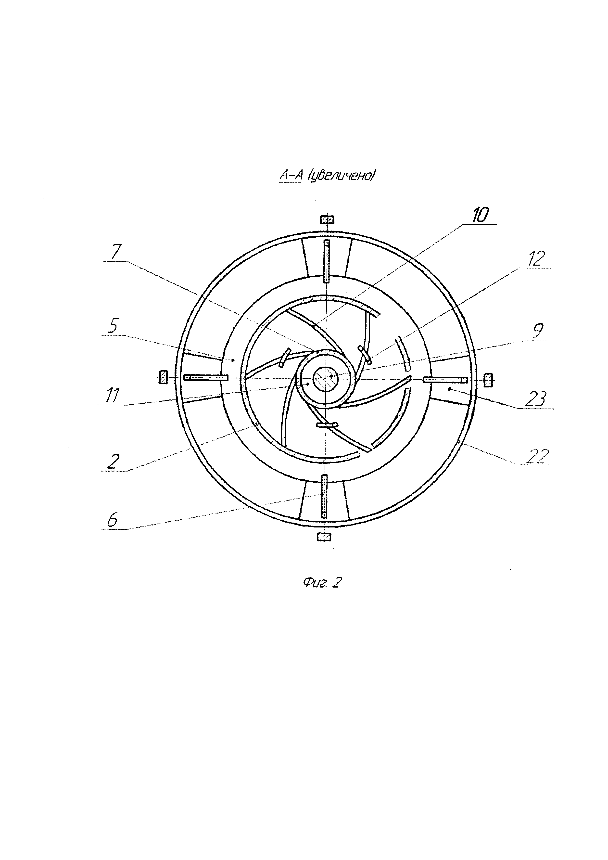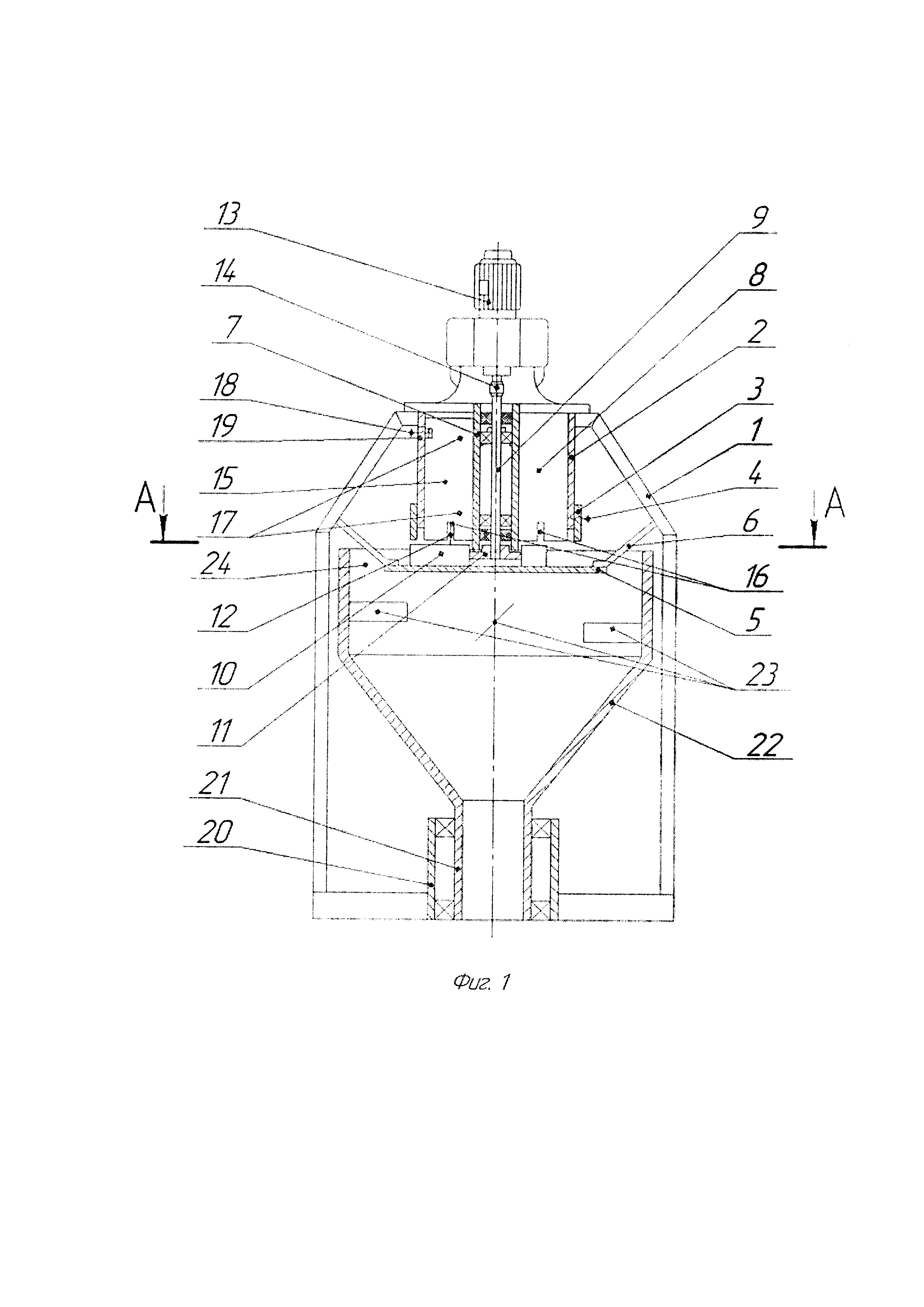 Изобретение относится к области сельскохозяйственного машиностроения, в частности к средствам механизации животноводства, и может быть использовано при производстве кормовых сыпучих смесей. Известен дозатор сыпучих кормов (патент RU 2199722), включающий бункер, установленный вертикально и разделенный на сектора перегородками с регулируемой их установкой, диск и подвижные скребки, взаимодействующие с диском, предназначен для одновременного дозирования нескольких компонентов кормовой смеси. Наиболее близким по сути к заявляемому устройству является дозатор-смеситель (патент RU 2490601), содержащий бункер, установленный вертикально и разделенный на сектора перегородками, одна из которых закреплена жестко, а другие установлены с возможностью углового перемещения относительно неподвижной перегородки и фиксации в нужном положении винтами, манжету, телескопически установленную на нижнем окончании бункера, диск диаметром, большим диаметра манжеты, установленный ниже нее и жестко закрепленный относительно бункера, приводной вал, скребки, размещенные под манжетой и не выходящие за ее пределы, взаимодействующие с диском и жестко связанные с приводным валом симметрично относительно его оси, радиальные прямые диска пересекают не менее одного скребка, при этом к верхней торцевой плоскости каждого скребка неподвижно закреплен побудитель, выполненный в виде пластины, изогнутой по форме поверхности кругового цилиндра с осью, совпадающей с осью диска, причем в перегородках выполнены вырезы, равные по высоте и толщине побудителю, основную воронку, диаметр которой превышает диаметр диска, размещенную под последним, имеющую на раструбе окна, а под горловиной - рассеиватель с независимым приводом, дополнительную воронку с горловиной, жестко связанную с основной и размещенную под последней, в горловине дополнительной воронки установлены спиральные направляющие. Недостатками известных дозаторов-смесителей являются повышенный расход энергии, требуемый на процесс смешивания компонентов, обусловленный взаимодействием потока сыпучего материала с каскадом поверхностей рабочих органов дозатора-смесителя и относительным перемещением локальных объемов сыпучего материала внутри всего потока, а также перемещением и отдельных частиц. А это сопровождается трением локальных объемов и отдельных частиц материала о поверхности рабочих органов и друг о друга и неизбежными затратами энергии. Процесс этот имеет случайный характер, поэтому относительных перемещений обычно больше, чем необходимо. Технической проблемой является уменьшение затрат энергии на перемешивание компонентов смеси. Для решения технической проблемы и достижения технического результата в конструкции дозатора-смесителя, содержащего бункер, установленный вертикально и разделенный на сектора перегородками, одна из которых закреплена жестко, а другие установлены с возможностью углового перемещения относительно неподвижной перегородки и фиксации в нужном положении винтами, манжету, телескопически установленную на нижнем окончании бункера, диск диаметром, большим диаметра манжеты, установленный ниже нее и жестко закрепленный относительно бункера, приводной вал, скребки, размещенные под манжетой и не выходящие за ее пределы, взаимодействующие с диском и жестко 