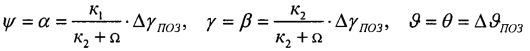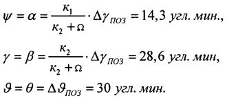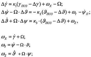 а для каналов крена и курса вводят в разностный сигнал εγ сигнал автокомпенсации детерминированных ошибок ПОЗ по крену µγ, при этом новый сигнал коррекции БОГК в каналах крена и курса uγ вычисляют по формуле