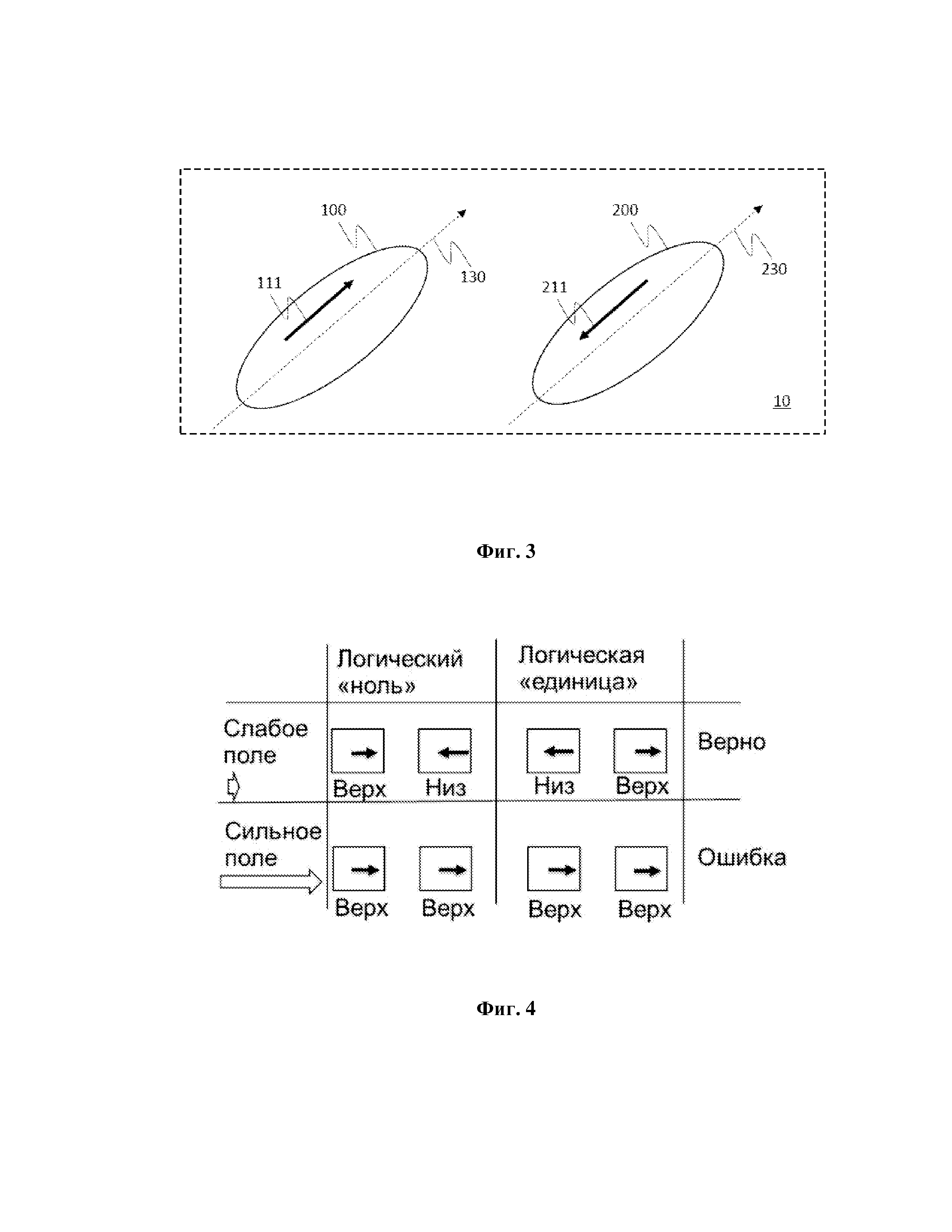 , обладает практически такой же устойчивостью к внешнему паразитному магнитному полю произвольного направления, что и одна ячейка к внешнему магнитному полю с фиксированным направлением магнитного поля вдоль оси перемагничивания или перпендикулярного ей. Таким образом, данная схема позволяет практически полностью нивелировать зависимость стабильности элемента памяти MRAM 20 от направления внешнего паразитного магнитного поля.
