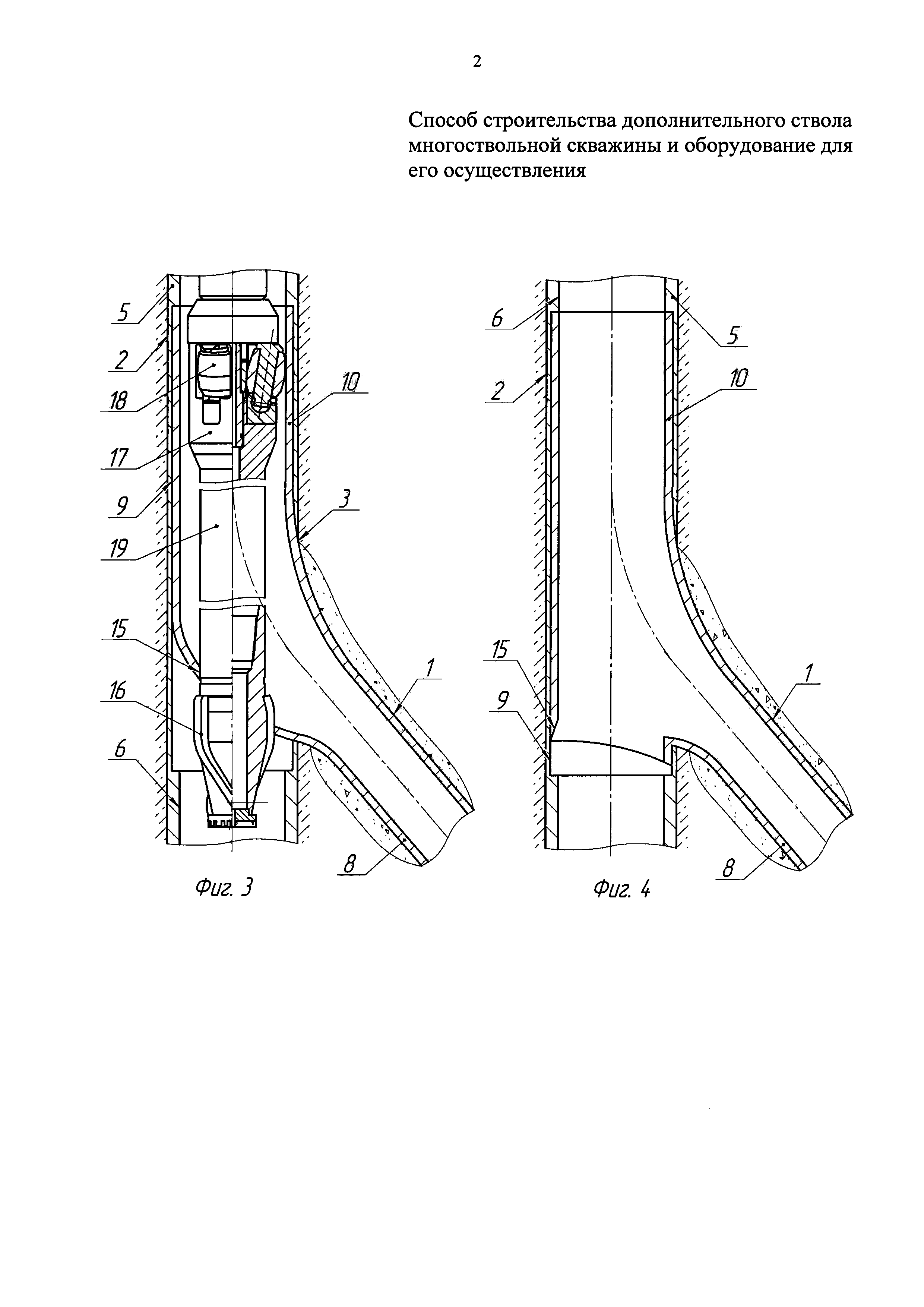 Изобретение относится к нефтегазовой промышленности и может быть использовано для забуривания и крепления дополнительных стволов из ранее пробуренных обсаженных скважин. Известно устройство для проведения и крепления многозабойных скважин (авторское свидетельство SU №663825, МПК 2 Е21В 43/10, Е21В 7/08, опубл. в Бюл. №19 от 25.05.1979 г.), которым осуществляют способ строительства многозабойных скважин, включающий строительство основного ствола с вырезанным окном в обсадной колонне, бурение дополнительного ствола через окно, спуск обсадной колонны дополнительного ствола с соединительным патрубком, изготовленным в виде патрубка с гофрированной втулкой, которую обрабатывают дорнированием до получения герметичного соединения. Гофрированная втулка обрабатывается устройством, включающим дорн, прижимающий втулку к внутренней стенке обсадной колонны основного ствола скважины. Недостатками данного способа являются: - невозможность использования способа в ранее построенных скважинах с диаметром менее 750 мм, так как осуществление способа и применение устройства возможны только во вновь строящихся скважинах большого диаметра - более 750 мм, где диаметр дополнительного ствола очень мал, иначе габаритные размеры устройства не позволят спустить его в интервал установки; - высокая вероятность аварийных ситуаций, так как спуск гофрированной втулки в скважину с приваренным к ней патрубком под определенным углом связан с большими трудностями, так как происходит ее заклинивание, а попытки освободить приводят к деформации и поломкам втулки; - большие сложности с креплением обсадной колонны основного ствола цементом, так как для зарезки и бурения дополнительного ствола применяют обсадные трубы с готовыми окнами в составе обсадной колонны, применяемой для крепления основного ствола скважины, что создает большие трудности с ориентированием окон в заданном положении. Недостатки данного устройства: - требуются дополнительные спускоподъемные операции для извлечения спускного инструмента и спуска дорна; - за один проход дорна возможно увеличить проходной диаметр втулки на небольшую величину, поэтому требуется несколько спусков и подъемов бурильного инструмента с дорнами различного диаметра; - при прижатии втулки к стенке обсадной колонны основного ствола для получения герметичного соединения необходимо равное противодавление по всей окружности ствола; - высокое требование к подготовке внутренней поверхности обсадной колонны основного ствола, так как малейшее загрязнение или повреждение колонны приведет к увеличению осевой нагрузки на дорн, его заклиниванию, невозможности освобождения и созданию аварийной ситуации в скважине; - отсутствие центрирующих устройств дорна ведет к его неравномерному движению и неравномерному прижатию гофрированной втулки по ее длине вследствие эллипсности и разностенности трубы, из которой изготовлена гофрированная втулка, а значит, и невозможности получения герметичного соединения обсадных колонн многозабойной скважины; - невозможность создания герметичного соединения в зоне окна, так как дорн не будет испытывать противодавления в этой зоне и будет стремиться сместиться в сторону окна и даже зайти в окно, тем самым втулка в этой зоне не будет прижиматься к стенке обсадной колонны основного ствол