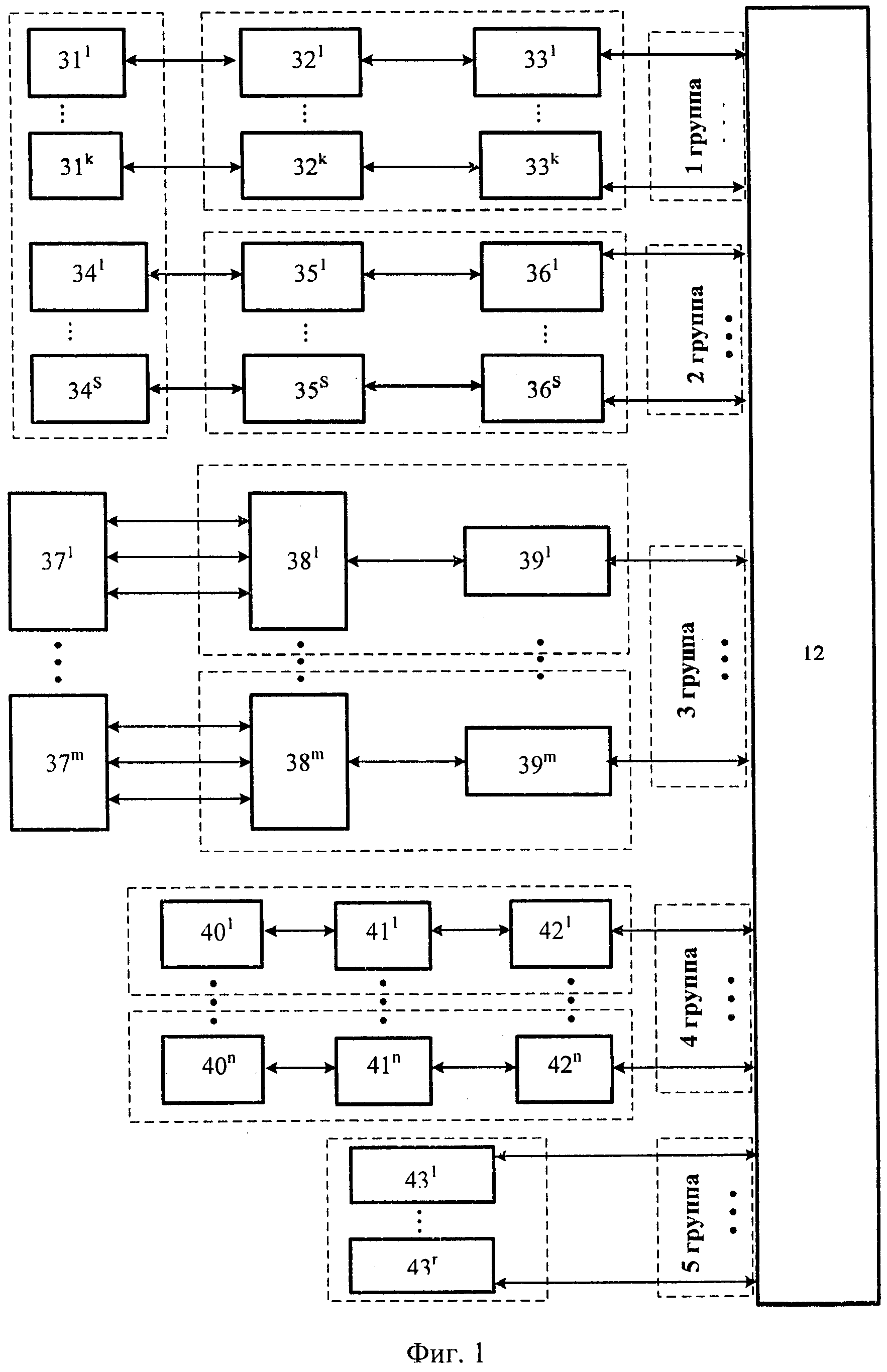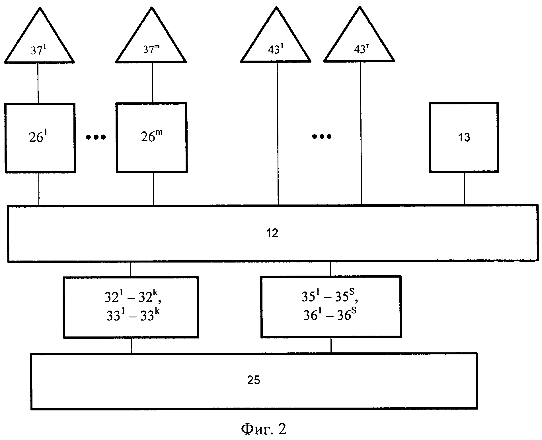 Изобретение относится к многопротокольным телекоммуникационным средствам передачи данных, а именно к телекоммуникационным серверам, и может быть использовано для построения защищенной мультисервисной многопротокольной сети. Известен сотовый телефон Samsung SGH-i900, имеющий внутри себя передатчики Bluetooth, 802.11 и GSM. Недостатком данного телефона является то, что для организации сети связи в нем используется только один приемопередатчик (GSM), а остальные применяются для беспроводного подключения к разным устройствам - компьютеру, гарнитуре и т.п. Известна радиолюбительская SDR-радиостанция SDR-1000 [2]. Недостатком данной радиостанции является то, что она не позволяет организовывать сети с большим количеством уже существующих радиостанций, не имеющих стык Ethernet стандарта IEEE 802.3, а требует отдельного изготовления. Наиболее близким к предлагаемому является аппаратура внутренней связи коммутации и управления (АВСКУ) [по патенту RU №58834 от 27.11.2006]. Схема устройства-прототипа представлена на фиг.1, где обозначено: 311…31k - микротелефонные гарнитуры (МТГ) абонентов; 321…32k - блоки сопряжения с соответствующими МТГ (БСМТГ); 331…33k - блоки прямого/обратного преобразования аналогового сигнала МТГ (БГТМТГ) в цифровой поток пакетов Ethernet стандарта IEEE 802.3; 341…34s - телефонные аппараты (ТА); 351…35s - блоки сопряжения с соответствующими ТА (БСТА); 361…36s - блоки прямого/обратного преобразования аналогового сигнала ТА (БПТА) в цифровой поток пакетов Ethernet стандарта IEEE 802.3; 371…37m - радиостанции (PC); 381…38m - блоки сопряжения с соответствующими PC (БСРС); 391…39m - блоки прямого/обратного преобразования аналогового сигнала и цифровых сигналов стыков С1-ФЛ и С2 радиостанций (БПРС) в цифровой поток пакетов Ethernet стандарта IEEE 802.3; 401…40n - аппаратура передачи/засекречивания данных (АПЗД); 411…41n - блоки сопряжения с соответствующей АПЗД (БСАПЗД); 421…42n - блоки прямого/обратного преобразования цифровых сигналов стыка С1-ФЛ АПЗД (БПАПЗД) в цифровой поток пакетов Ethernet стандарта IEEE 802.3; 431…43r - устройства, имеющие стык Ethernet стандарта IEEE 802.3; 12 - блок коммутации пакетов Ethernet стандарта IEEE 802.3 (БКП) (свитч). Устройство-прототип содержит к микротелефонных гарнитур абонентов (МТГ) 311…31k, k блоков сопряжения к ним (БСМТГ) 321…32k, к блоков преобразования (БПМТГ). 331…33k; s телефонных аппаратов (ТА) 341…34s, s блоков сопряжения к ним (БСТА) 351…35s, s блоков преобразования (БПТА) 361…36s; m радиостанции (PC) 371…37m, m блоков сопряжения к ним (БСРС) 381…38m, m блоков преобразования (БПРС) 391…39m; n устройств АПЗД 401…40n, n блоков сопряжения к ним (БСАПЗД) 411…41n, n блоков преобразования (БПАПЗД) 421…42n; n устройств, имеющих стык Ethernet стандарта IEEE 802.3 431…43r, блок коммутации пакетов Ethernet стандарта IEEE 802.3 (БКП) 12, причем вход-выход каждой МТГ 31l…31k через последовательно соединенные соответствующие БСМТГ 321…32k и БПМТГ 331…33k соединен с соответствующим из к входов-выходов первой группы входов-выходов БКП 12, вход-выход каждого ТА 341…34s через последовательно соединенные соответствующие БСТА 351…35s и БСТА 361…36s соединен с соответствующим из s входов-выходов второй группы входов-выходов БКЦС 12, первый, второй, третий выходы-входы каждой PC 371…37m соединены с соответствующими входами-выходами соответствующего БСРС 381…38m, четвертый выход-вход которого через соответствующий БПРС 391…39m соединен с соответствующим из m входов-выходов третьей группы входов-выходов БКП 12, 
