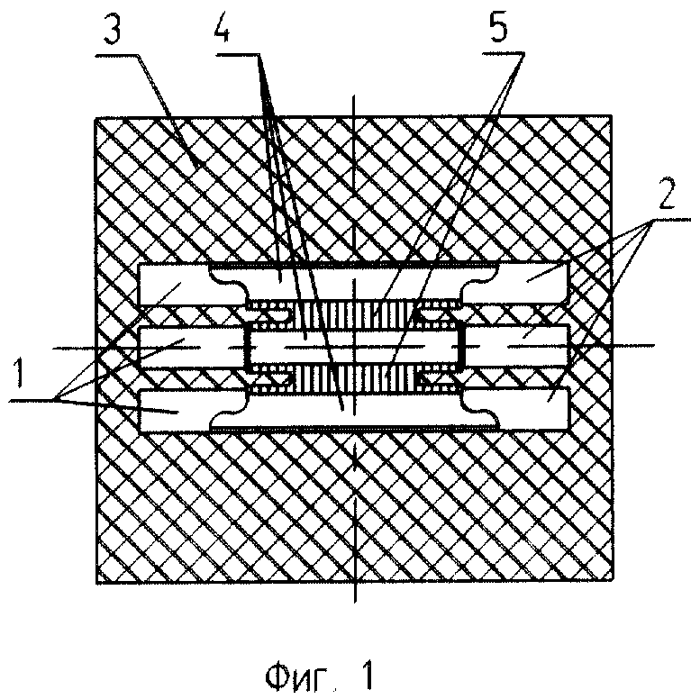 параллельных рельсов 1 и 2, установленных в электроизоляционном корпусе 3. Якорь рельсотронного ускорителя состоит из трех токопроводных перемычек 4, установленных на изоляторе якоря 5. Контактирующие