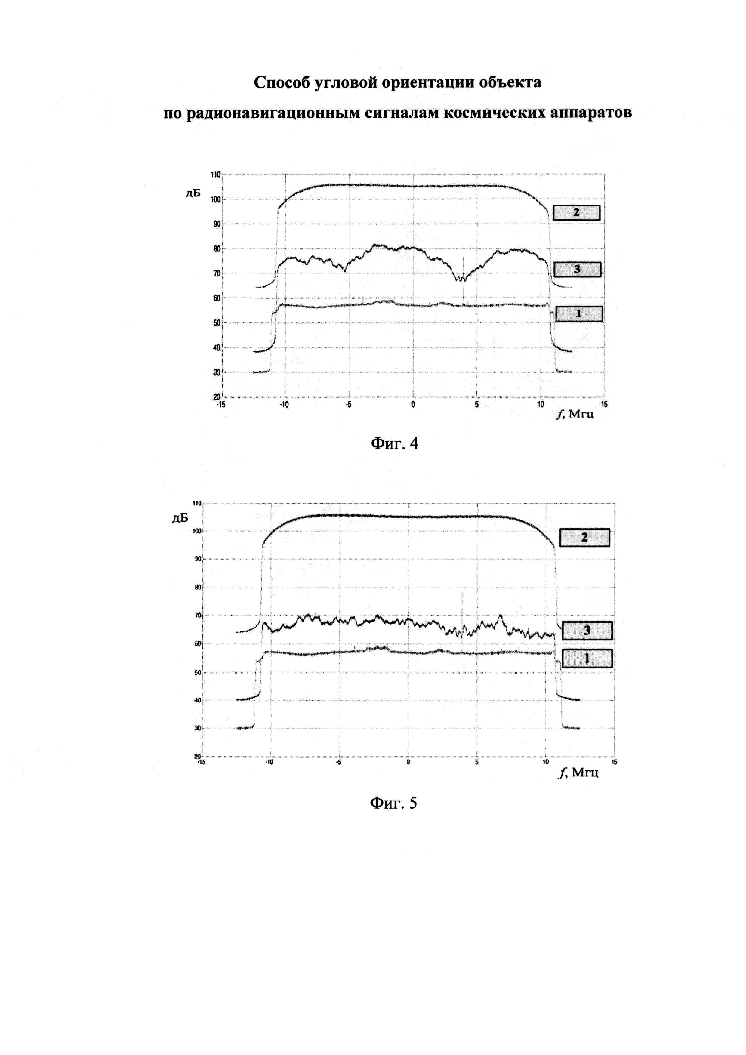 Способ угловой ориентации объекта по радионавигационным сигналам космических аппаратов, основанный на приеме аддитивной смеси помехи и сигналов от n навигационных космических аппаратов двумя или более приемными каналами, антенны которых расположены так, что линии, проведенные через фазовые центры антенн, параллельны одной или двум осям объекта, суммировании сигналов каждого приемного канала с сигналами помех остальных каналов, являющихся для него компенсационными, предварительно умноженными на весовые коэффициенты, вычисленные на основе рекуррентной оценки обратной корреляционной матрицы помех, выделении радионавигационных сигналов от n навигационных космических аппаратов, восстановлении их исходных параметров в каждом приемном канале, измерении фазовых сдвигов между сигналами от каждого из n навигационных космических аппаратов между парами приемных каналов и определении углового положения объекта, отличающийся тем, что перед суммированием сигналов осуществляют их дискретную временную задержку, а весовые коэффициенты вычисляют для каждой дискреты задержки и восстанавливают исходные параметры радионавигационных сигналов от n навигационных космических аппаратов с учетом соответствующей дискретной задержки.