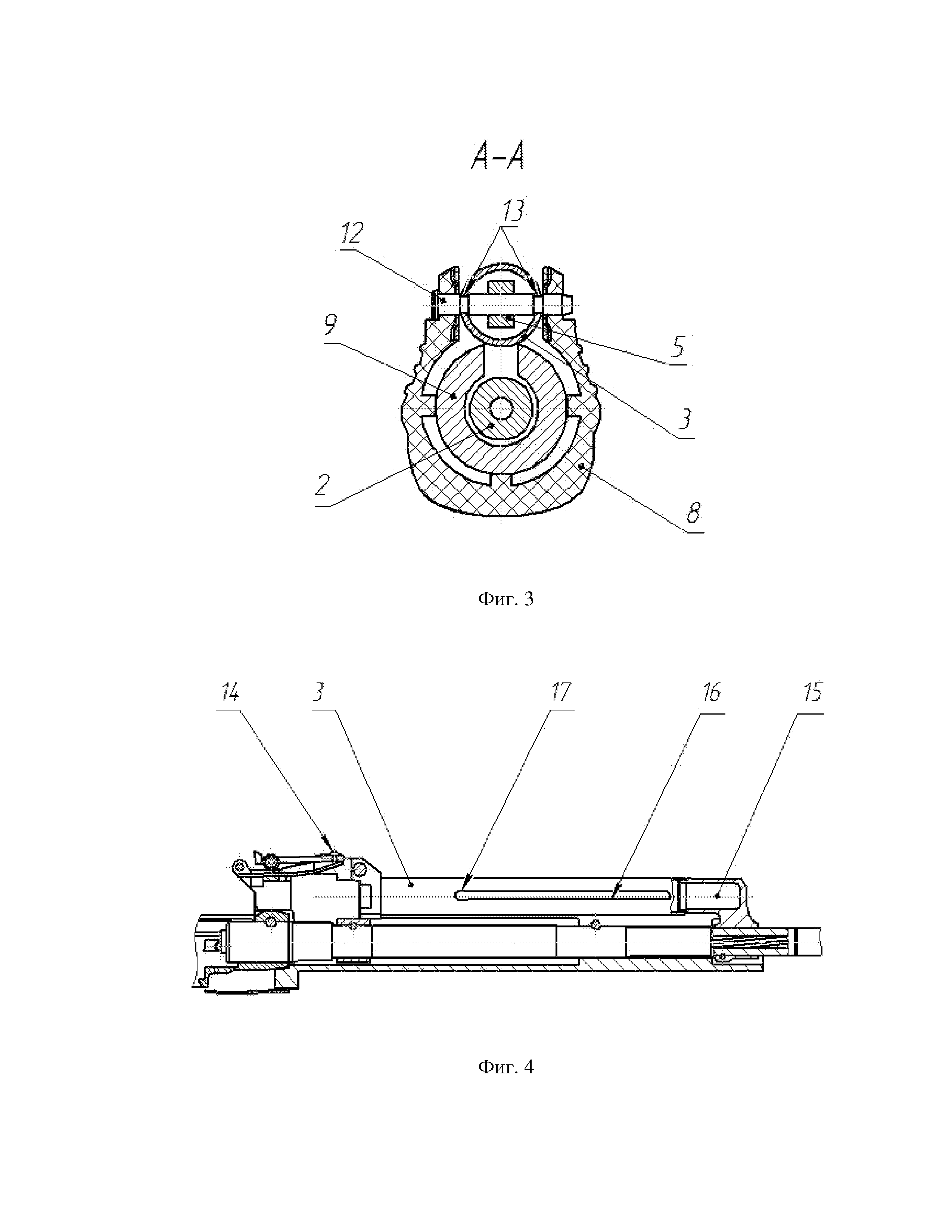 Изобретение относится к области вооружения и может быть использовано в стрелковом оружии с перезарядкой подвижным цевьем. Известно охотничье ружье «Бекас» (ж. «Калашников. Оружие, Боеприпасы, Снаряжение», № 4, 2000 г., с. 20-23), содержащее ствольную коробку со стволом, подствольный трубчатый магазин, механизм перезаряжания, включающий затворную раму, подвижное цевье, соединенное с затвором. Недостатком указанного образца является низкая надежность механизма перезаряжания из-за соединения цевья с затвором при помощи двух тяг. По технологическим причинам обеспечить равную длину тяг затруднительно, следовательно, при перезаряжании возможен перекос и повышенное трение затвора о направляющие ствольной коробки, что затрудняет перезаряжание оружия. Известно ружье охотничье многозарядное МР 133 (http://www.baikalinc.ru/res_ru/0_value_7735_192.pdf), содержащее ствольную коробку со стволом, механизм перезаряжания, включающий затворную раму, подвижное цевье. Под стволом расположен магазин, выполненный трубчатым, по которому перемещается цевье, соединенное с затвором. Затвор соединен с цевьем при помощи длинной тяги, расположенной между цевьем и трубчатым магазином. Недостатком указанного образца является низкая надежность механизма перезаряжания оружия из-за соединения затвора с цевьем при помощи длинной тяги. Так как тяга расположена открыто, то при перемещении по пересеченной местности, например по лесу, в тягу может попасть посторонний предмет (сучок) и затруднить перезаряжание либо заклинить механизм перезаряжания. Технической задачей заявляемого изобретения является повышение эксплуатационных характеристик, а именно повышение надежности механизма перезаряжания стрелкового оружия. Технический результат заключается в обеспечении беспрепятственного перемещения и исключения заклинивания подвижного цевья для надежного и быстрого перезаряжания стрелкового оружия с перезарядкой подвижным цевьем. Поставленная задача достигается тем, что стрелковое оружие содержит ствольную коробку со стволом, направляющую трубку, механизм перезаряжания, включающий затворную раму, подвижное цевье. Затворная рама снабжена наконечником с поперечным отверстием, в которое устанавливается ось цевья, соединяющая наконечник с цевьем, на боковых сторонах направляющей трубки выполнены пазы, имеющие расширенный конец, обращенный к ствольной коробке, а на оси цевья выполнены кольцевые канавки с возможностью продольного перемещения по пазам. Сущность изобретения поясняется чертежами, на которых изображено: на фиг. 1 – общий вид стрелкового оружия; на фиг. 2 – затворная рама с затвором, штоком и наконечником; на фиг. 3 –разрез А-А на фиг. 1; на фиг. 4 – продольный разрез оружия; на фиг. 5 – ось цевья с кольцевыми канавками. Стрелковое оружие содержит ствольную коробку 1 со стволом 2, направляющую трубку 3, магазин 4, механизм перезаряжания, включающий затворную раму 5 с затвором 6 и штоком 7, подвижное цевье 8 с основанием 9. Шток 7 затворной рамы 5 снабжен наконечником 10 с поперечным отверстием 11, в которое установлена ось 12 цевья. Ось 12 цевья соединяет наконечник 10 затворной рамы 5 с цевьем 8. На оси 12 цевья выполнены кольцевые канавки 13. Направляющая трубка 3 жестко закреплена между прицельной колодкой 14 и газовой камерой 15. На боковых сторонах направляющей трубки 3 выполнены 