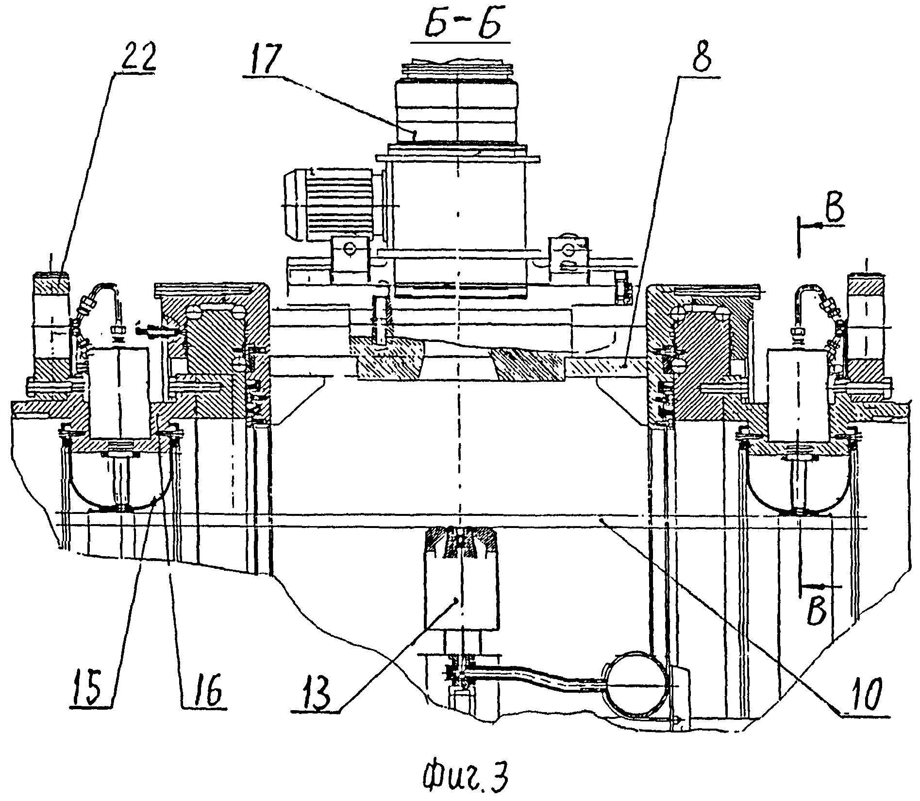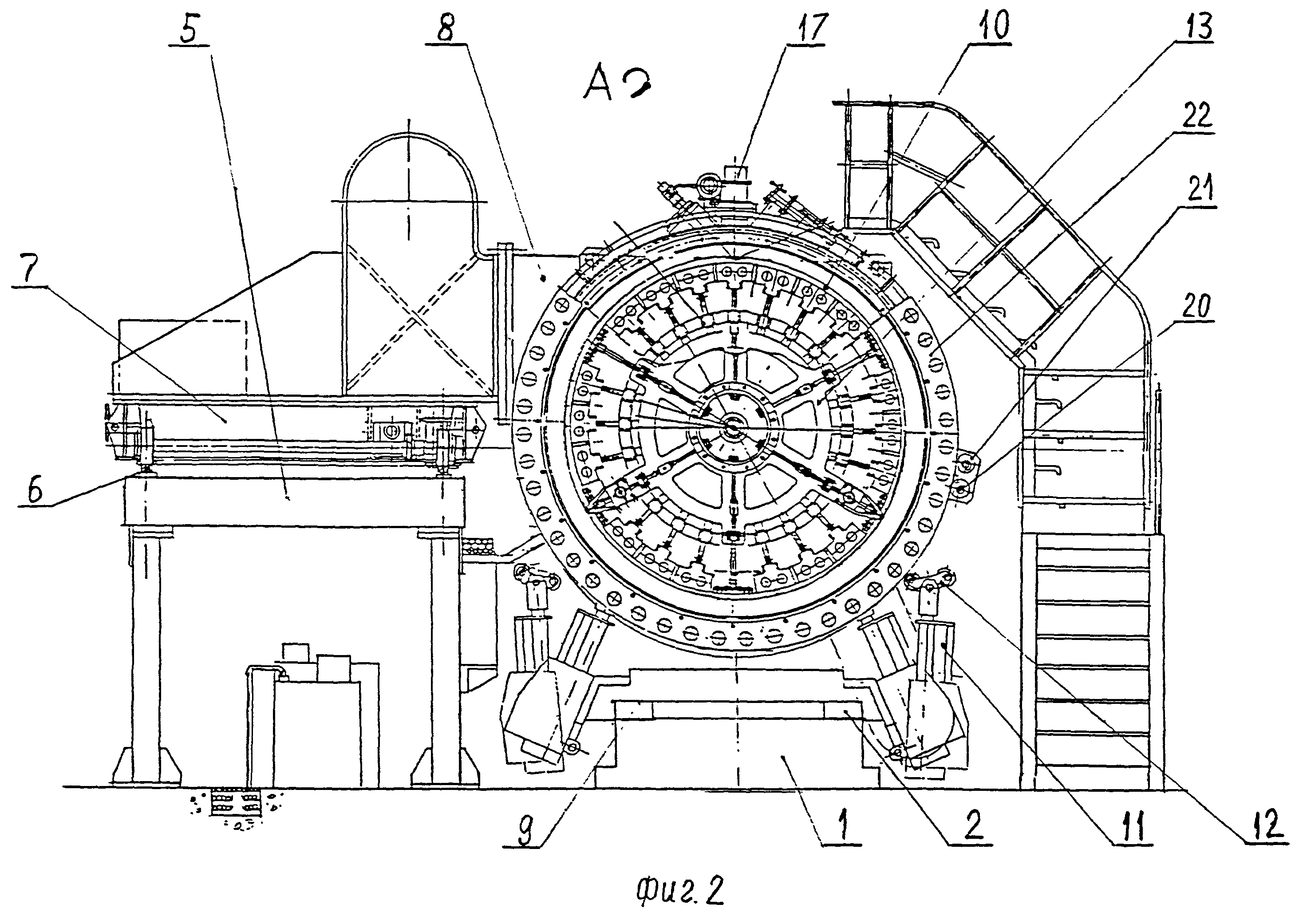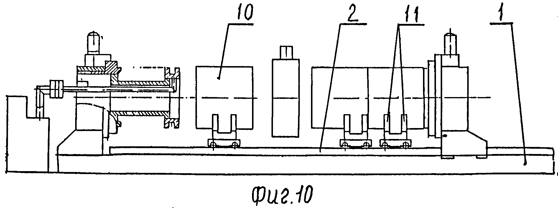 Изобретение относится к оборудованию для сборки и электронно-лучевой сварки кольцевых стыков крупногабаритных обечаек из алюминиевых сплавов с локальным вакуумированием зоны сварки и может быть использовано в космической, авиационной, транспортной, химической отраслях промышленности. Известна установка для электронно-лучевой сварки, содержащая подключенную к вакуумной станции вакуумную камеру туннельного типа с двумя откатывающимися в плоскости разъема крышками. Вдоль вакуумной камеры с противоположных ее сторон на рельсовых путях установлены две автономные тележки, на которых размещены крыши, рабочие столы, манипуляторы, электромеханические комплексы для перемещения электронно-лучевых пушек, подключенных к источникам питания. Передние оси тележек расположены на уровне пола вакуумной камеры, подпружинены относительно крышек. Средние оси тележек оснащены механизмами, изменяющими уровень их положения по высоте. Задние оси тележек связаны с приводным механизмом. В процессе работы установки свариваемые детали устанавливают на стол или на манипулятор одной их тележек, находящейся вне вакуумной камеры. Тележка в это время стоит на средней и задней осях на рельсовых путях. Передние оси находятся при этом на уровне пола камеры и не нагружены. После наладки электронно-лучевой пушки относительно стыка деталей тележку перемещают в вакуумную камеру. После входа первых осей тележки в камеру средние оси начинают переводиться на уровень пола камеры или убираться в корпус тележки. Крышка камеры при этом открыта. После загрузки тележки с деталями в камеру камера вакуумируется и в ней осуществляется сварка деталей. В процессе сварки деталей в вакуумной камере другие детали аналогично описанному выше устанавливаются на вторую тележку, и далее осуществляются все действия, аналогично описанному выше. После выкатки первой тележки со сваренными деталями с противоположной стороны в вакуумную камеру загружается вторая тележка, крышки камеры закрывают, вакуумируют камеру и осуществляют сварку следующих деталей. В это время с первой тележки снимается изделие и на нее устанавливаются очередные подлежащие сварке детали. Далее цикл повторяется. (См. А.С. СССР № 1363664, кл. B23K 37/04, 1995 г.) В результате анализа известного решения необходимо отметить, что оно обладает ограниченными функциональными возможностями в части размеров свариваемых деталей, которые ограничиваются размерами вакуумной камеры. Конструкция механизма перемещения деталей в зону сварки весьма сложна, точное совмещение деталей по торцам занимает много времени и не гарантирует их точной установки. Известна установка для сборки и кольцевой сварки труб, содержащая станину, длина которой определяется длиной изделий после сварки всех их кольцевых швов. На станине имеются направляющие, на которых зафиксирована задняя бабка, наружная обойма которой через стяжное устройство связана с наружной обоймой передней бабки, установленной с возможностью перемещения на направляющих. На наружной обойме задней бабки посредством кронштейна установлен сварочный автомат. На внутренних поверхностях обойм бабок установлены с возможностью вращения патроны с раздвижными зажимными элементами. С внешних сторон бабок на основаниях посредством кронштейнов установлены ролики с тор